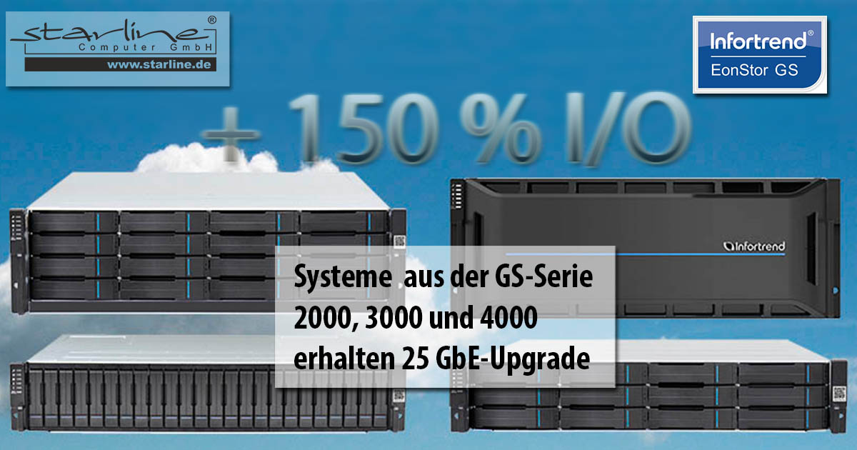 (pressebox) (Kirchheim/Teck, 04.12.2018) Starline-Partner Infortrend offeriert für die Unified-Storage-Systeme aus der GS-Serie 2000, 3000 und 4000 ein 25 GbE-Upgrade. Die neuen Hostboards erlauben damit einen wesentlich höheren Datendurchsatz, eine flexiblere Konfiguration und eine effektivere Bereitstellung der universell einsetzbaren Speichersysteme.