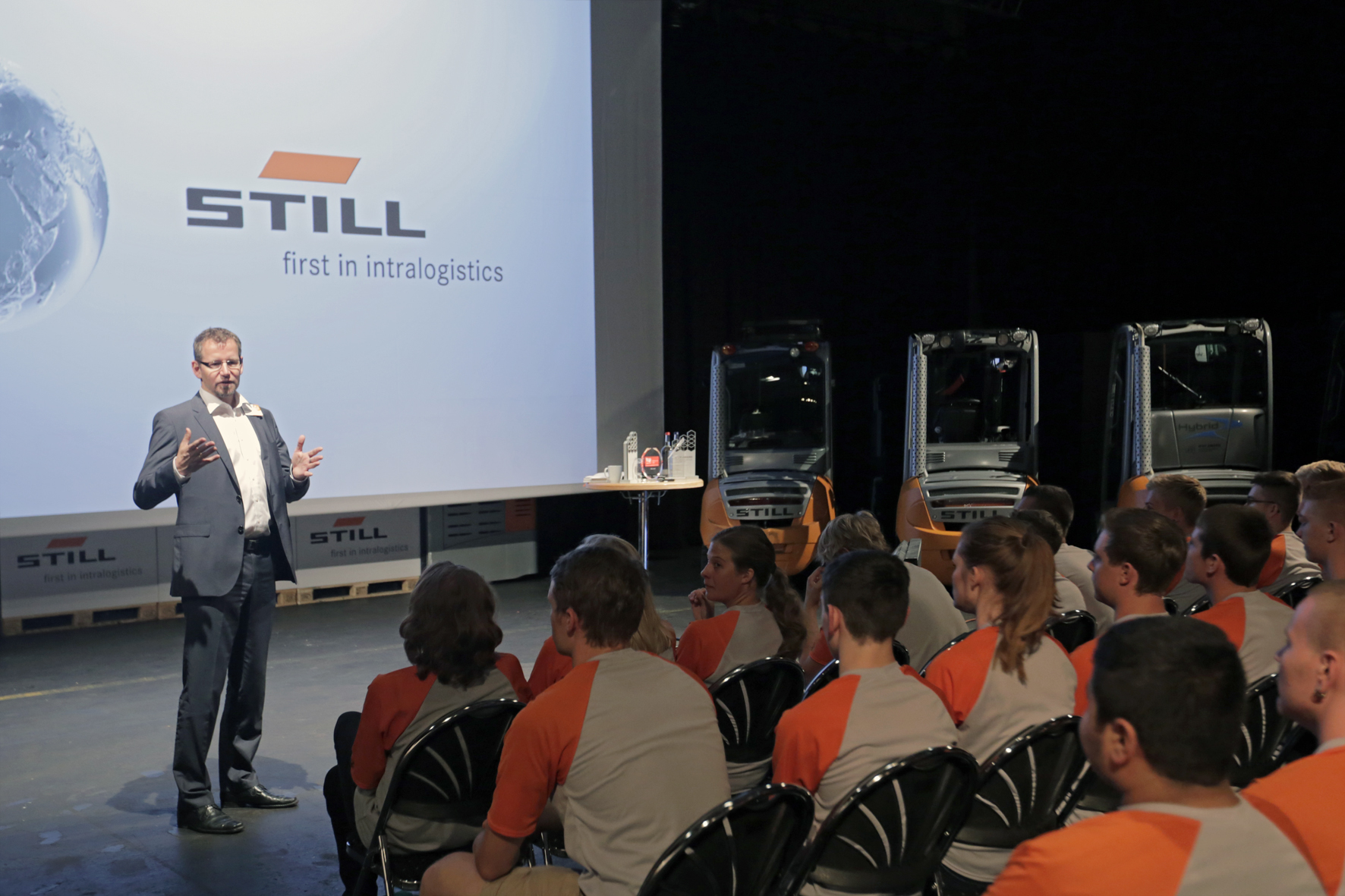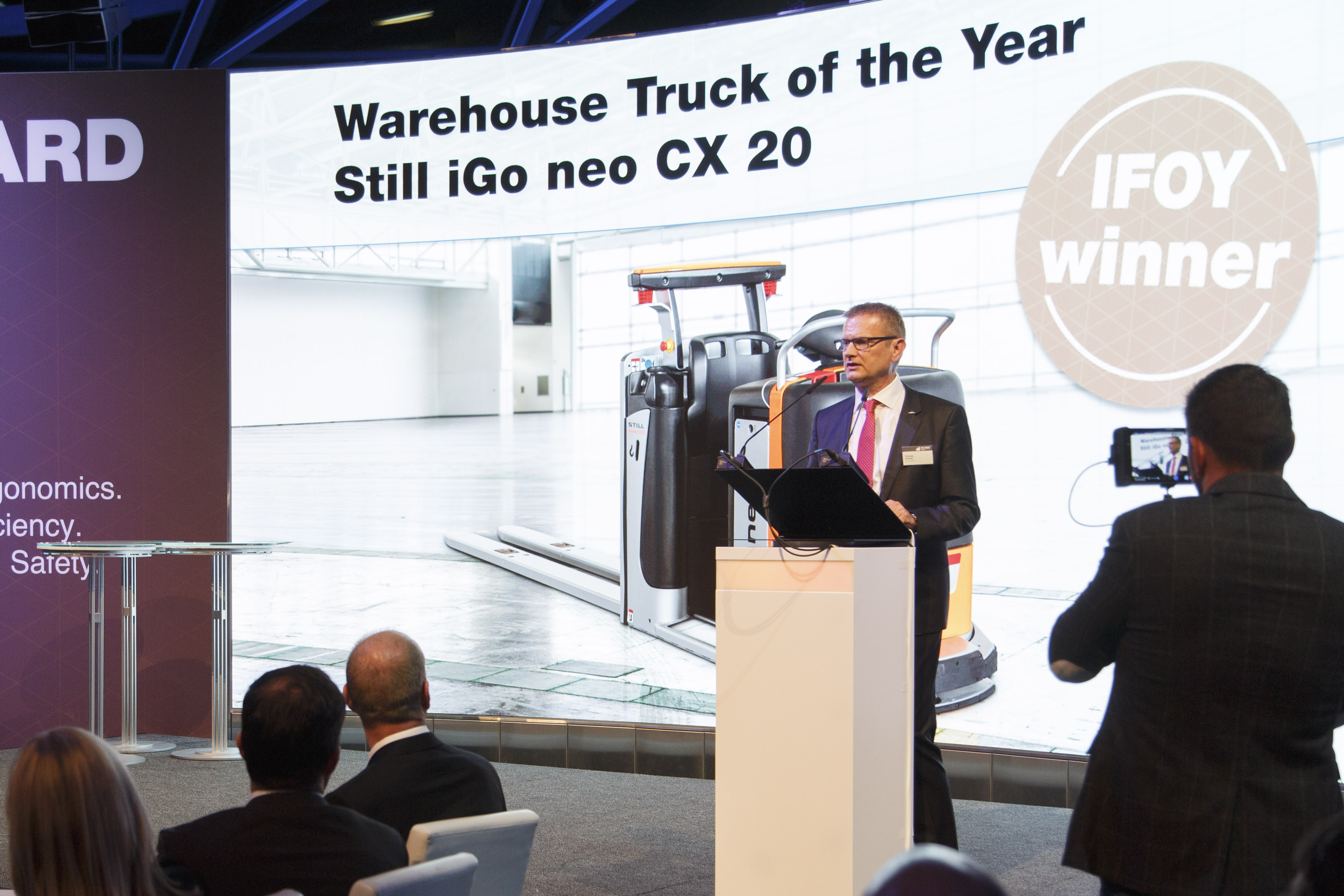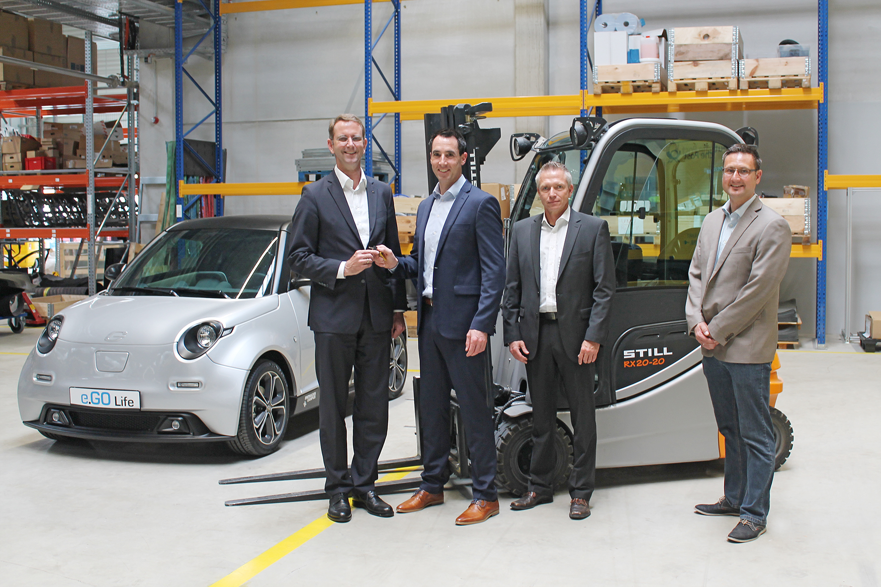 Im Rahmen der diesjährigen LogiMAT 2018 wurde der 200.000ste STILL RX-Stapler feierlich von Thomas A. Fischer, Vertriebsgeschäftsführer (CSO) STILL, und STILL Vertriebsleiter Holger Brandt, an Christian Stoll, Geschäftsführer (COO) der Seifert Logistics GmbH übergeben / V.l.n.r. Holger Brandt, Senior Vice President Region DACH der STILL GmbH, Christian Stoll, Geschäftsführer (COO) der Seifert Logistics GmbH, Thomas A. Fischer, Geschäftsführer Vertrieb, Marketing und Service (CSO) der STILL GmbH