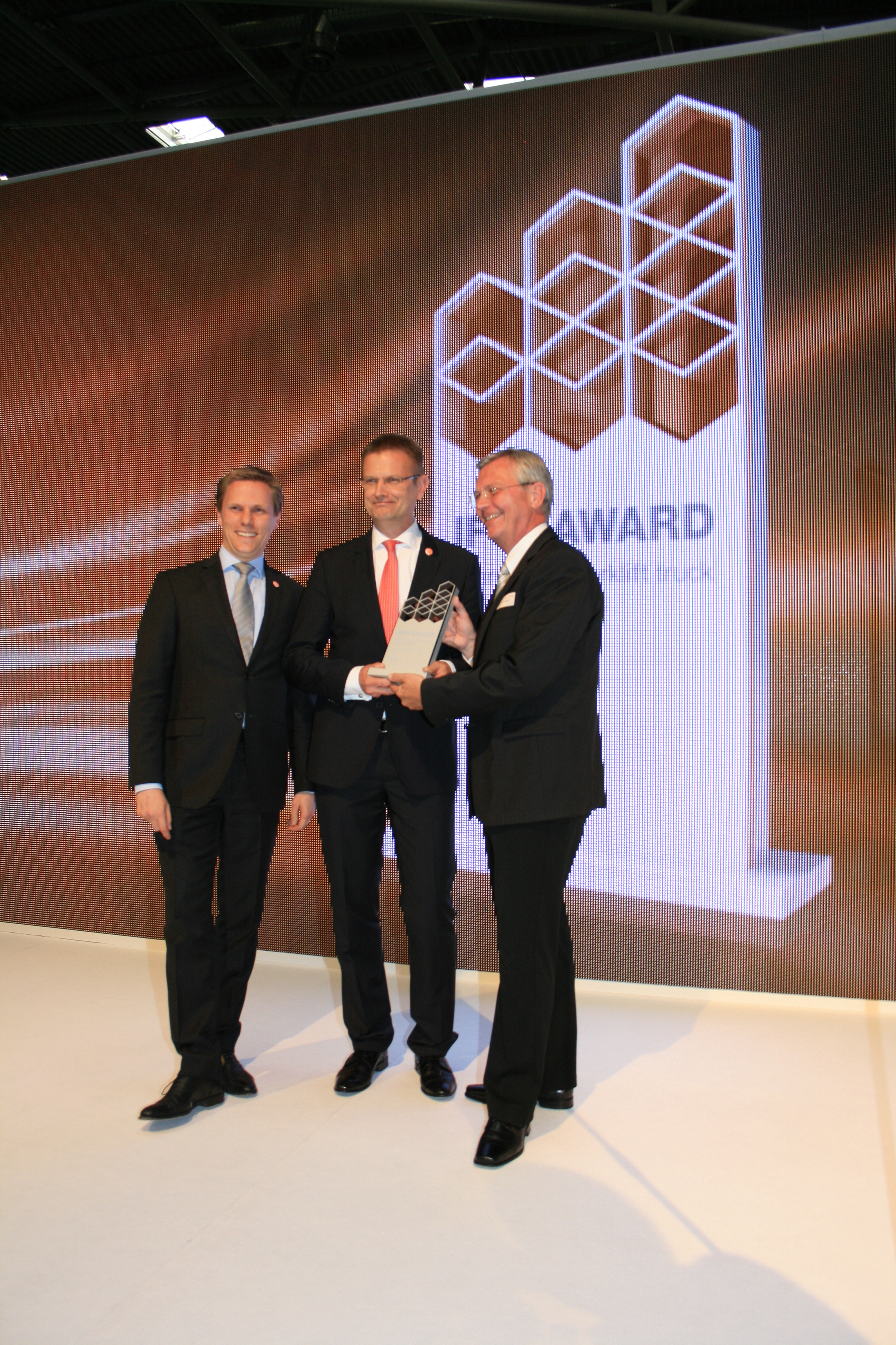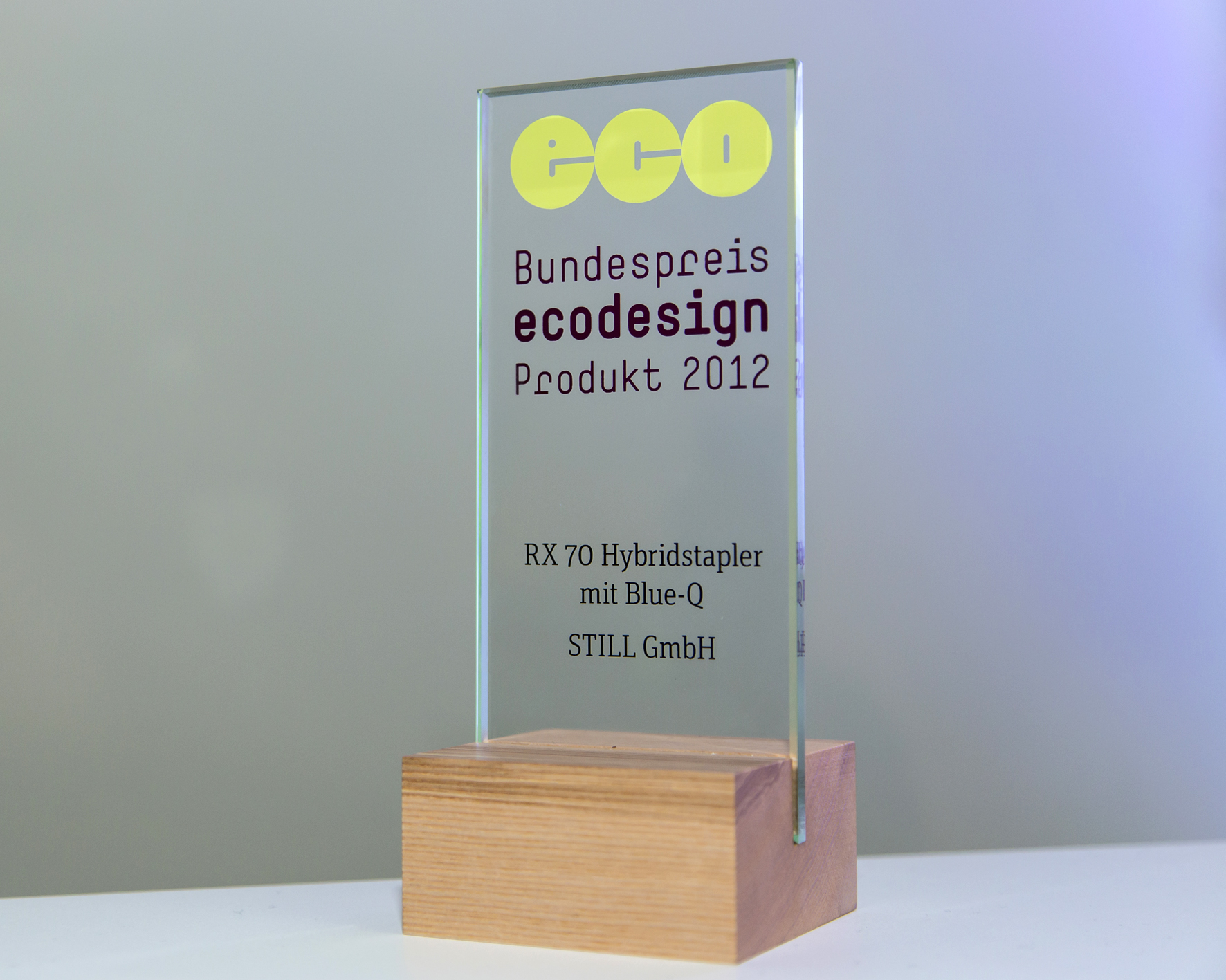 Bert-Jan Knoef, Vorsitzender der STILL Geschäftsführung, und Matthias Klug, Leiter der internationalen Unternehmenskommunikation von STILL, nahmen voller Stolz den Bundespreis Ecodesign für den RX 70 Hybrid entgegen; Im Bild: Jochen Flasbarth, Präsident des Umweltamtes, Matthias Klug, Leiter der internationalen Unternehmenskommunikation von STILL, Anja Goerz, Moderatorin von radioeins, Bert-Jan Knoef, Vorsitzender der STILL Geschäftsführung, Ursula Heinen-Esser, parlamentarische Staatssekretärin des BMU (v.l.n.r.), , Foto: STILL GmbH