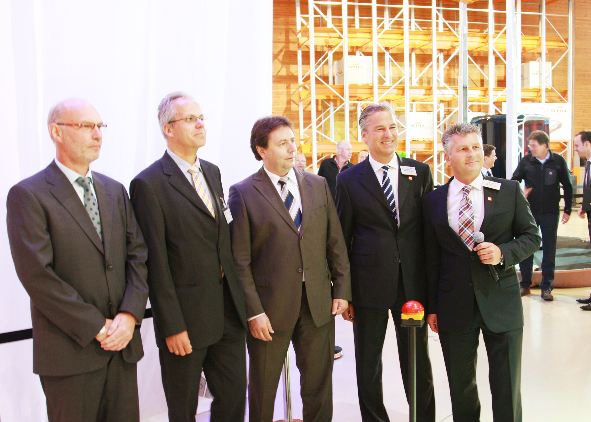 Podiumsdiskussion über die Intralogistik der Vergangenheit, der Gegenwart und der Zukunft, moderiert von Anita Würmser, Fachjournalstin (Mitte) V.l.n.r.: Christian Wöhrleitner, Bürgermeister von Wiener Neudorf, Helmuth Viertl, Geschäftsführer von STILL Österreich, Anita Würmser, Fachjournalistin, Thomas A. Fischer, Mitglied der STILL Geschäftsführung, Helmut Miernicki,Chef der niederösterreichischen Wirtschaftsagentur ecoplus