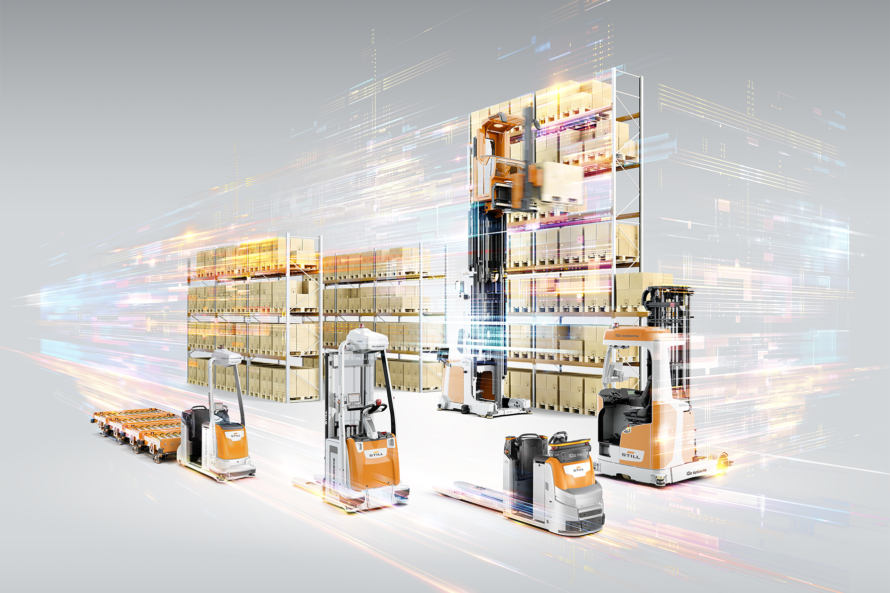 Konkret geht es um die Warenannahme, die Qualitätskontrolle, den innerbetrieblichen Transport und die Einlagerung eingehender Materialien, im weiteren Verlauf auch um deren Bereitstellung und den Weitertransport in die Produktion. Dafür hat STILL in enger Zusammenarbeit mit Beiersdorf ein ganzheitlich integriertes System konzipiert. Im Wareneingang und Versand kommen manuelle STILL Elektrostapler und Lagertechnikgeräte zum Einsatz. Die Fördertechnologie der Konzernschwester Dematic sorgt für die Anbindung des Wareneingangs mit dem Schmalganglager, in dem sechs vollautomatisierte STILL MX-X iGo systems Schmalgangstapler im Einsatz sind. Darüber hinaus wird über die Fördertechnik der Weitertransport vom Schmalganglager in die Produktion gewährleistet, in dem sechs STILL EXV iGo systems Hochhubwagen die Ware übernehmen. Diese bieten einen vollautomatisierten Transport zu den Produktionsanlagen von Beiersdorf.
