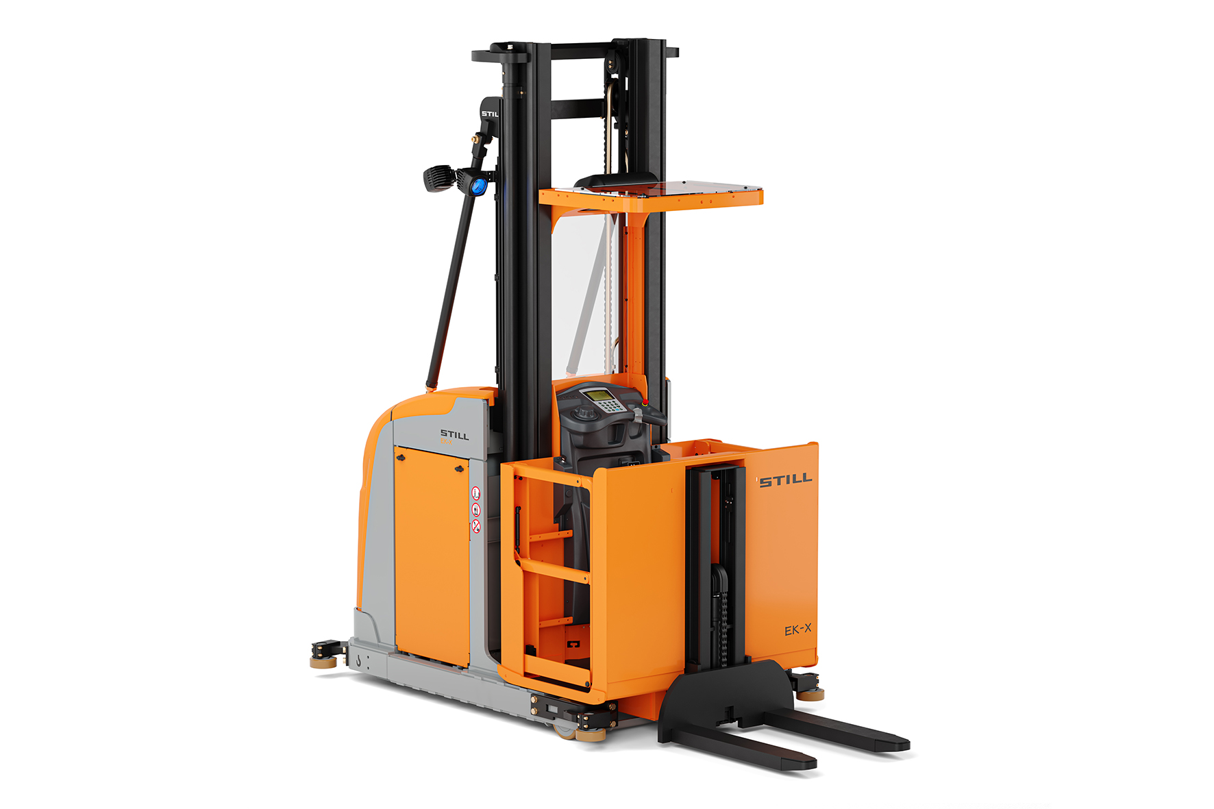 Für das Kommissionieren schwerer und sperriger Güter mit dem EK-X bis 1.000 kg wurde das Fahrzeug optional mit einer begehbaren Palette ausgerüstet. „Diese ermöglicht das leichte Kommissionieren schwerer und sperriger Güter und ist ein weiterer Beitrag seitens STILL zum Arbeitsschutz“, erläutert Christian Ehlers. Über einen Kontaktschalter sowie eine automatische Arretierung der Palette wird ein hohes Maß an Sicherheit gewährleistetet.