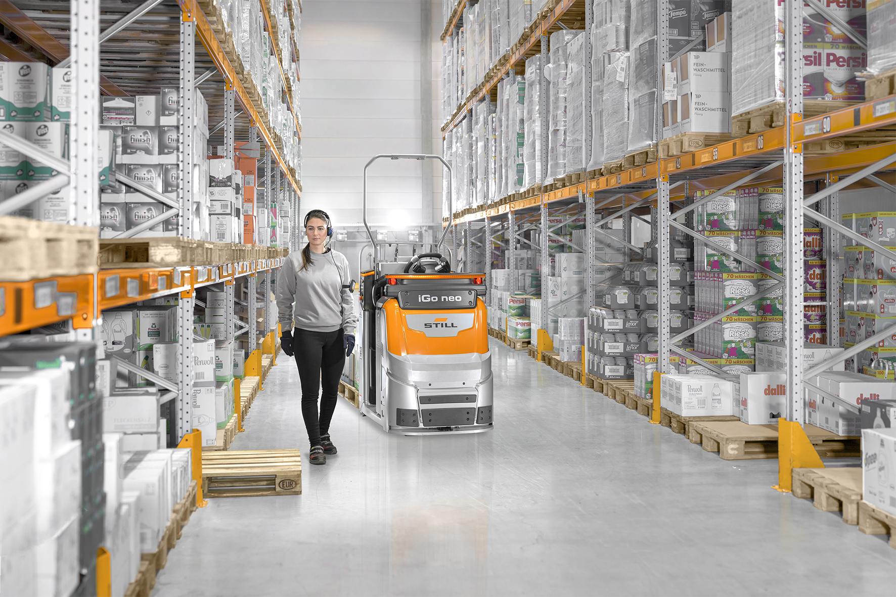 STILL hat zudem vor einigen Jahren einen großen Schritt in Richtung Automatisierung und Autonomie gemacht – auch in Hinblick auf die Kommissionierung. Das Hamburger Unternehmen bietet seinen Kunden seit 2016 neben dem vollautomatisierten MX-X ebenso die autonome Variante des Horizontalkommissionierers an, den OPX iGo neo. Mithilfe modernster Sensorik erkennt das Fahrzeug seinen Bediener sowie seine Umgebung und dank eines mehrstufigen Sicherheitskonzepts inklusive einer Personenschutzanlage schützt der OPX iGo neo Personen, Lagerausstattung und Ladegut. Anhand der generierten Daten und festgelegten Algorithmen trifft das Fahrzeug seine Entscheidungen: Hindernisse werden umfahren oder das Gerät bremst vollständig ab, sollte der verfügbare Platz zu gering sein für das Umfahren der Hindernisse.