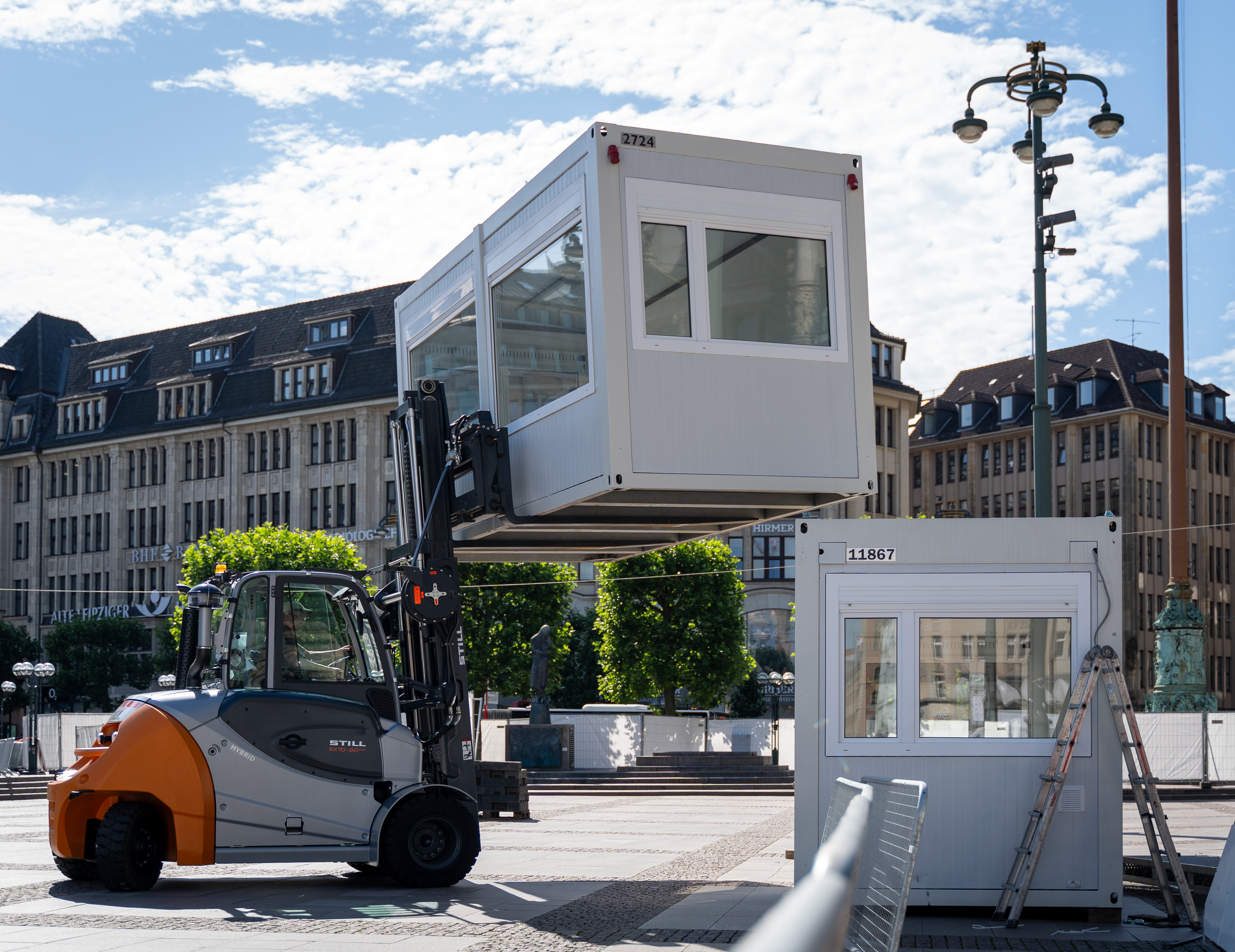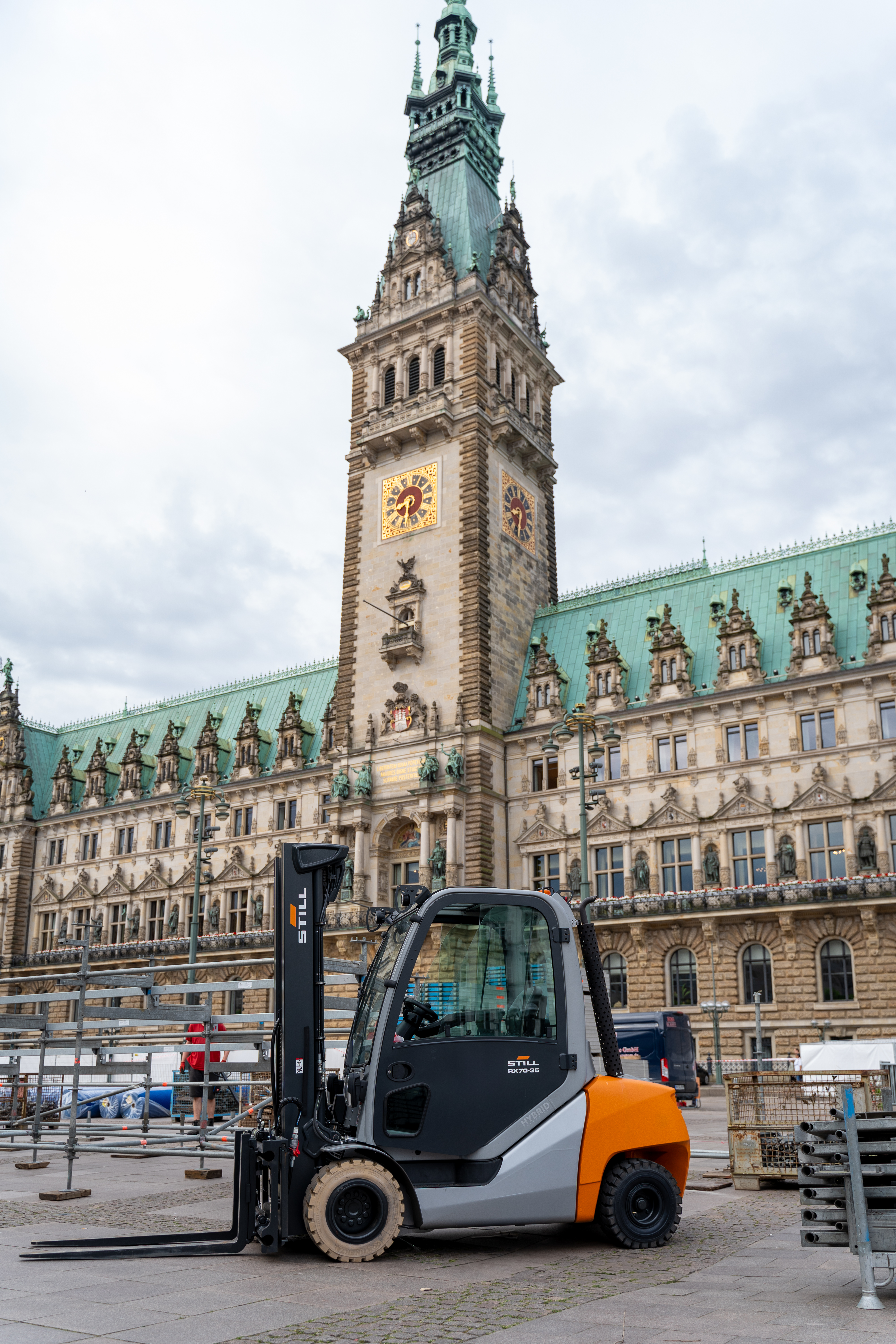 Gerade im Kontext großer Veranstaltungen übersteigen die Einsatzszenarien der Fahrzeuge oftmals Standardanwendungen wie den Warentransport oder das Ein- und Auslagern von Material. STILL bietet daher für komplexere Einsatzfälle auch bei Mietfahrzeugen die Konfiguration nutzungsspezifischer Sonderausstattungen an, etwa eine spezielle Bereifung, besondere Gabelzinken oder einsatzbezogene Anbauten. Dank der langjährigen Erfahrung von STILL im Mietgeschäft und wiederkehrender Anwendungsfälle können diese oftmals innerhalb kürzester Zeit umgesetzt werden. Beispielsweise hat STILL als Logistikpartner des Suzuki World Triathlon Hamburg im vergangenen Sommer elf Stapler nicht nur für den Auf- und Abbau zur Verfügung gestellt, sondern auch als robuste und aufmerksamkeitsstarke Absperrungen an viel frequentierten Streckenabschnitten. Dafür hat STILL die Fahrzeuge eigens mit einer speziellen Bereifung für wechselnde und anspruchsvolle Bodenbeläge ausgestattet und so ihren Einsatz sowohl auf weichem Untergrund in Parks oder auf Grünstreifen als auch auf empfindlichen Straßenoberflächen, wie der des Hamburger Rathausmarkts, ermöglicht.