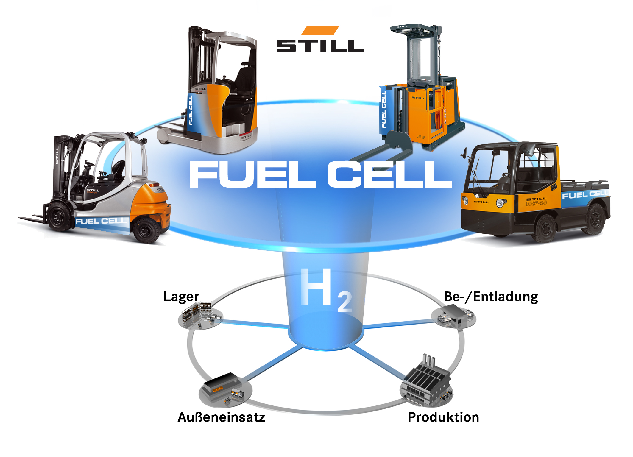 Der Hamburger Intralogistiker und Gabelstaplerbauer STILL unterstützt Hamburg als führende Wasserstoffstadt mit Wasserstofftechnologie im Bereich der Intralogistik. STILL hat in verschiedenen Projekten bereits einen großen Erfahrungsschatz gesammelt und verfügt inzwischen europaweit über die größte Flurförderzeugflotte mit Brennstoffzellenantrieb. Dazu gehören Gabel- und Schubmaststapler, Vertikalkommissionierer sowie Schlepper.