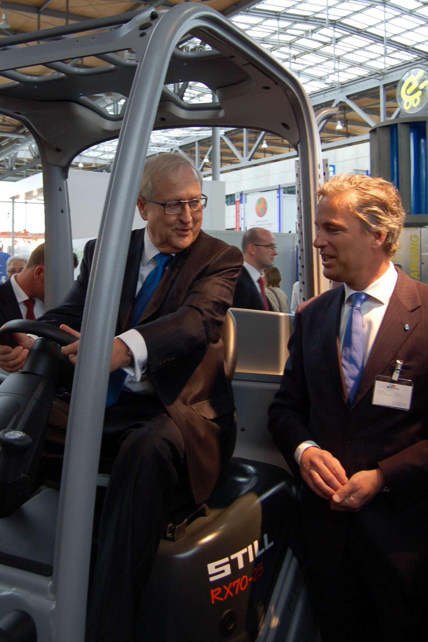 Auf dem STILL-Messestand fanden die Brennstoffzellen- und Hybridantriebe für Gabelstapler, vorgestellt durch den STILL-Geschäftsführer Bert-Jan Knoef, sein besonderes Interesse. Brüderle sagte: "Elektromobilität ist nicht nur für PKW zukunftsfähig, sondern wird eine breite Anwendung auch bei industriellen Produkten finden."