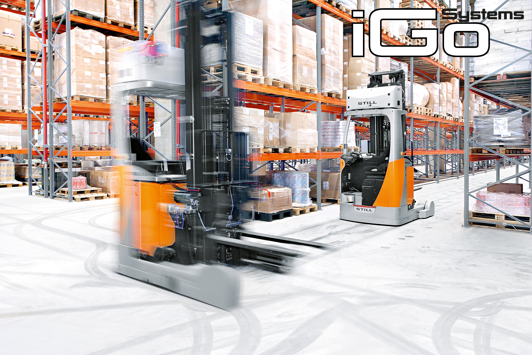 iGoSystems umfasst alle Angebote für komplexe, maßgefertigte Automatisierungslösungen, bestehend aus der Installation und Kombination von automatisierten Serienfahrzeugen und der entsprechenden Technik, Navigation, Fahrstreckenprogrammierung, Leitrechner, Projektplanung, Inbetriebnahme und Service. Der gesamte innerbetriebliche Materialfluss kann mit STILL Serienfahrzeugen automatisiert werden.