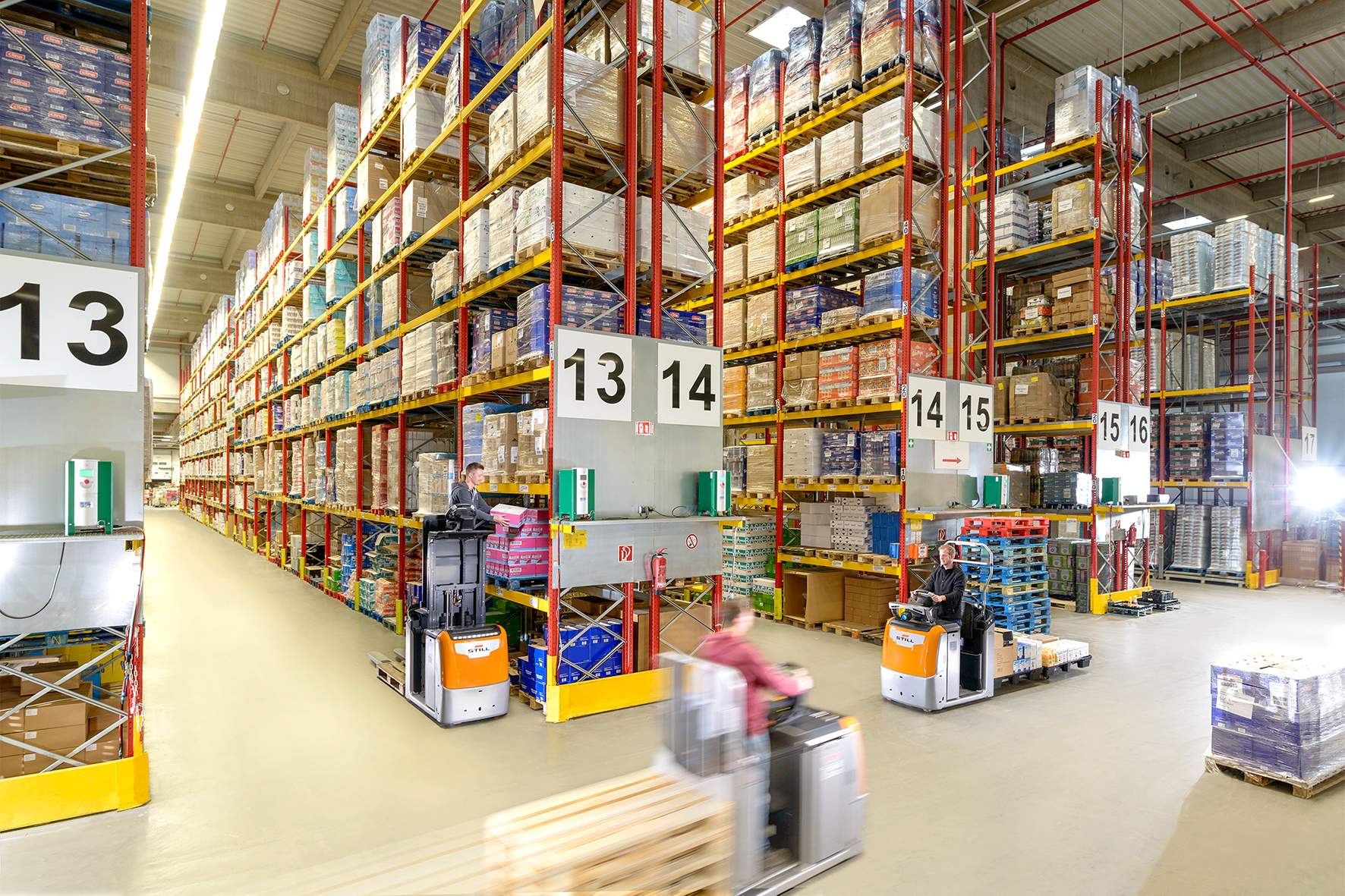 Der OPX-L 20 mit einer Tragfähigkeit von 2.000 kg kann zwei Paletten in Längsrichtung aufnehmen. Dabei hebt er immer die vordere, am Gabelrücken anliegende Palette auf eine ergonomische Höhe. Dies hat den Vorteil, dass der Kommissionierer nur kurze Distanzen beim Kommissionieren zurücklegen muss.