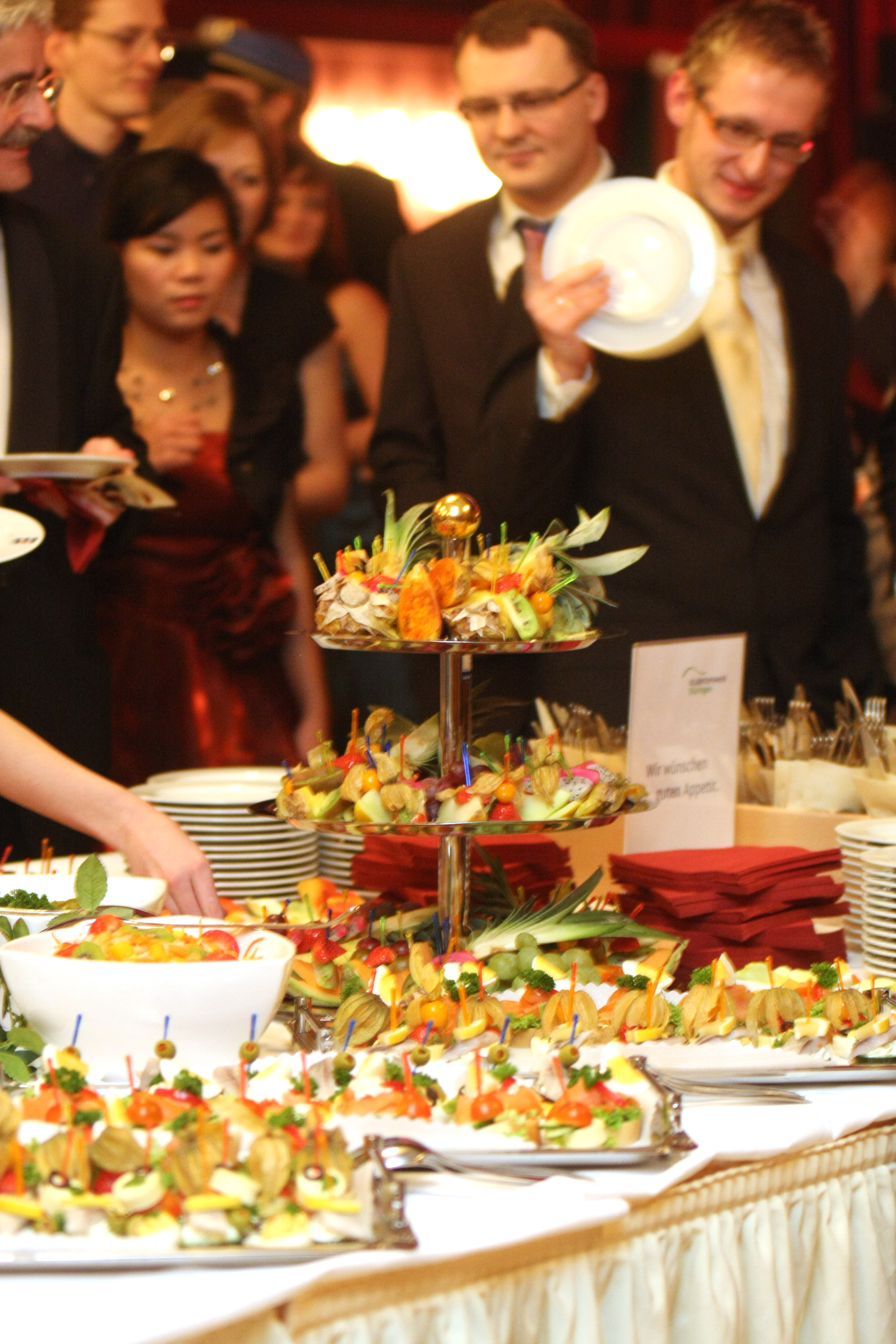 Das Gala-Buffet, angerichtet in bewährter Qualität vom Studentenwerk Thüringen, wird bestimmt wieder den Geschmack der Gäste treffen. Schon beim Uniball 2010 für ihren Service hochgelobt, sorgen die verschiedenen Clubs des Ilmenauer Studentenclubs e.V. auch in diesem Jahr für die Getränkeversorgung an den festlich dekorierten Tischen und in der Cocktail- und Whisky-Bar. Die Bar-Lounge ist auch Auftrittsort des Musikduos Tanzagenten.