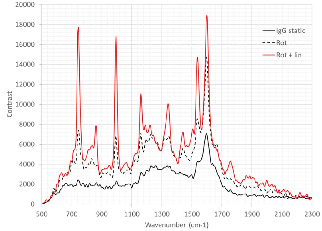 この装置は、さまざまな濃度の免疫グロブリン(IgG)、トリプトファン、一連のドメイン抗体(dAb)サンプルといった生化学サンプルのラマンスペクトルを取得できることが実証されています。dAbサンプルは、試験的なバイオリアクターの製造プロセスの異なるステージで、さまざまな希釈度にて抽出したものです。執筆者らの知り得る限り、このような観察がなされたのは初めてのことです。