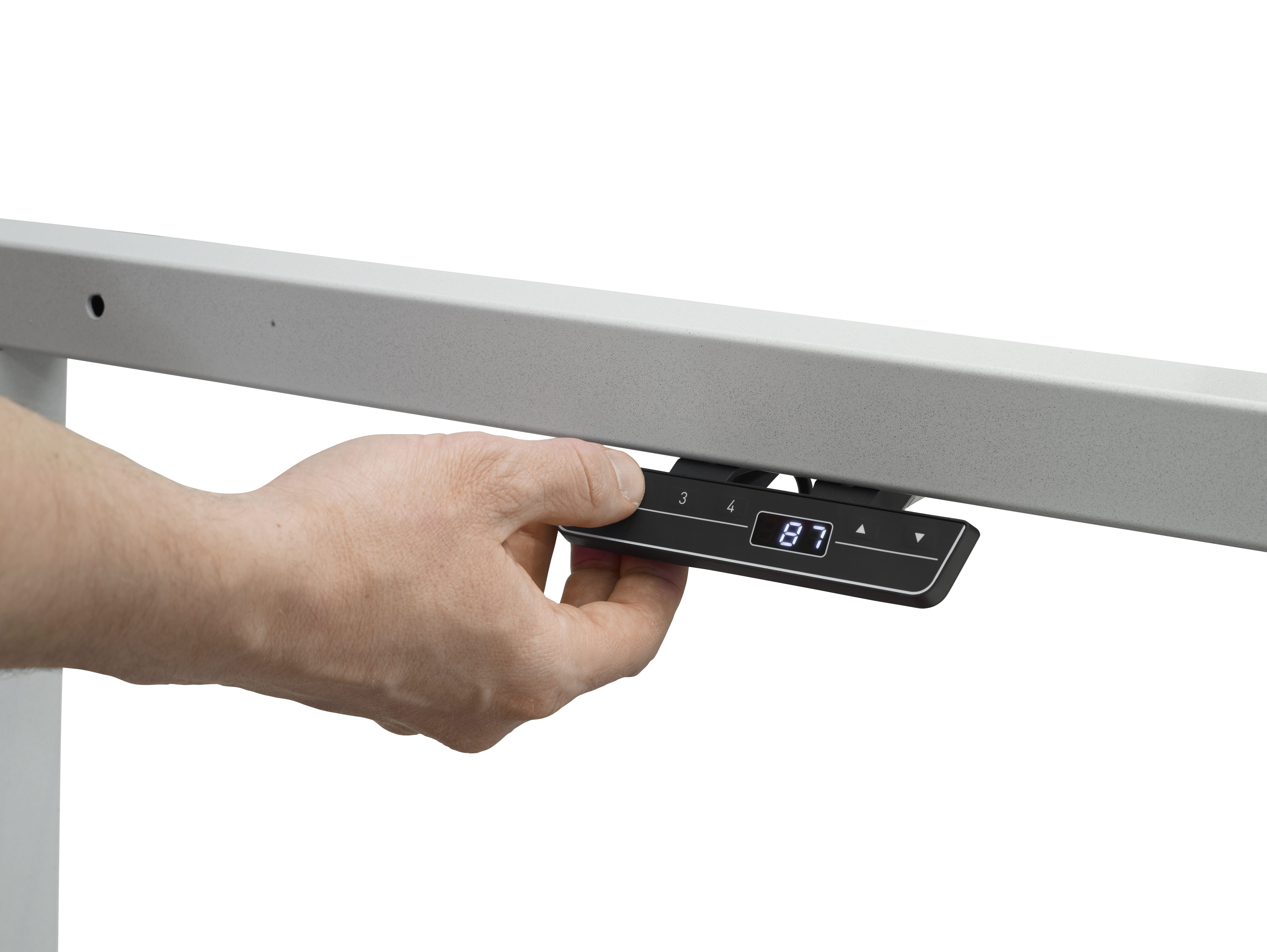 Der elektrisch höhenverstellbare QuatreX 4‑Fuß‑Arbeitstisch wurde für höchste Ansprüche an Stabilität, Flexibilität und Präzision entwickelt. Auf der Messe ist er als Packarbeitsplatz in Kombination mit einer Rollenbahn und Abschubrampe zu sehen.