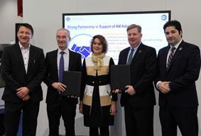 v.l.n.r.: Prof. Dr. Thomas Höche, Fraunhofer IMWS, Uwe Wagner, 3D-Micromac AG, Prof. Dr. Simon Hecker, Hochschule München, Prof. Dr. Stefan Sentpali, MdynamiX AG, Pascal Russ, Andreas Russ, Simi Reality Motion Systems GmbH, Prof. Dr. Axel Stepken, TÜV SÜD AG