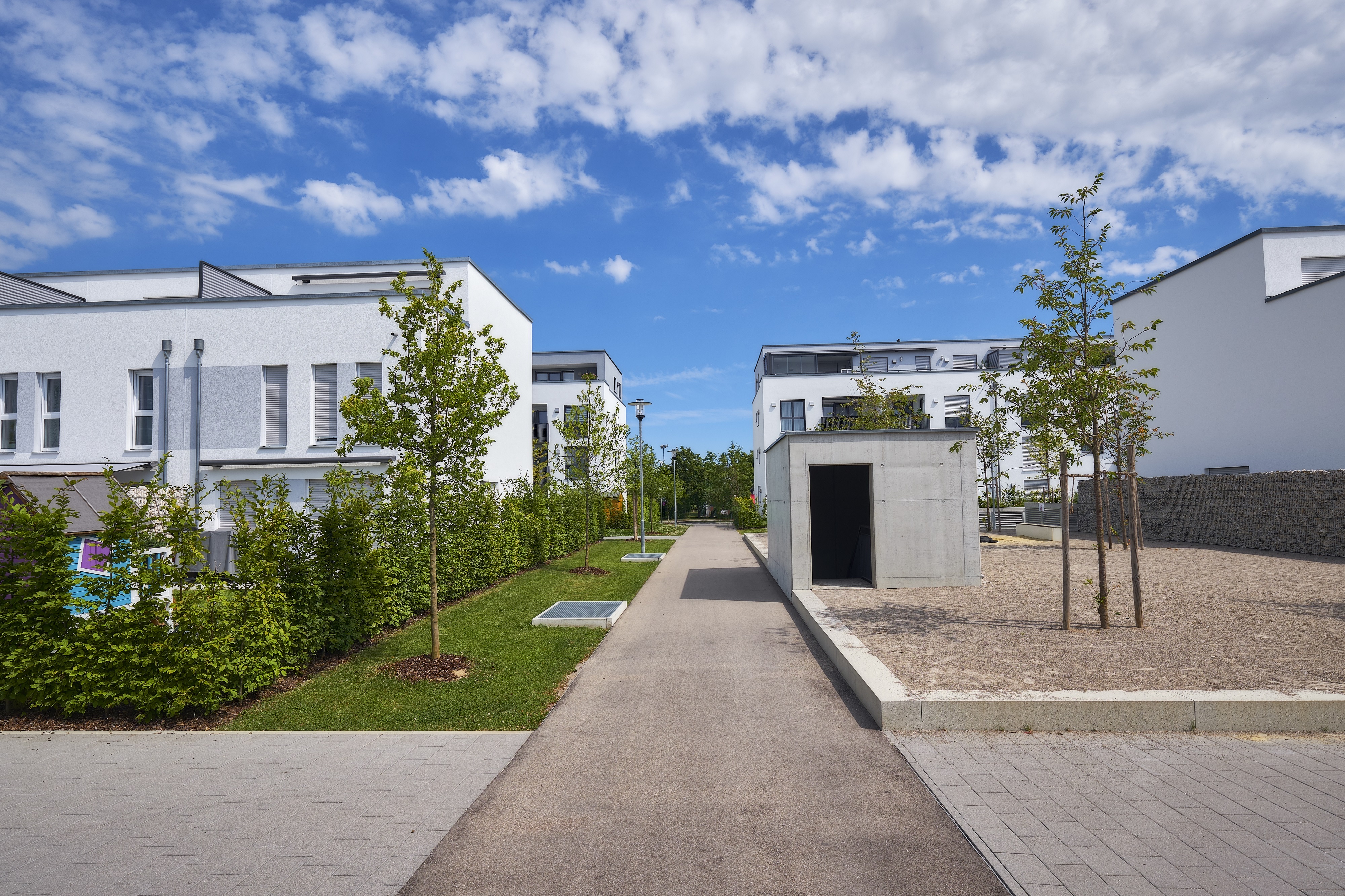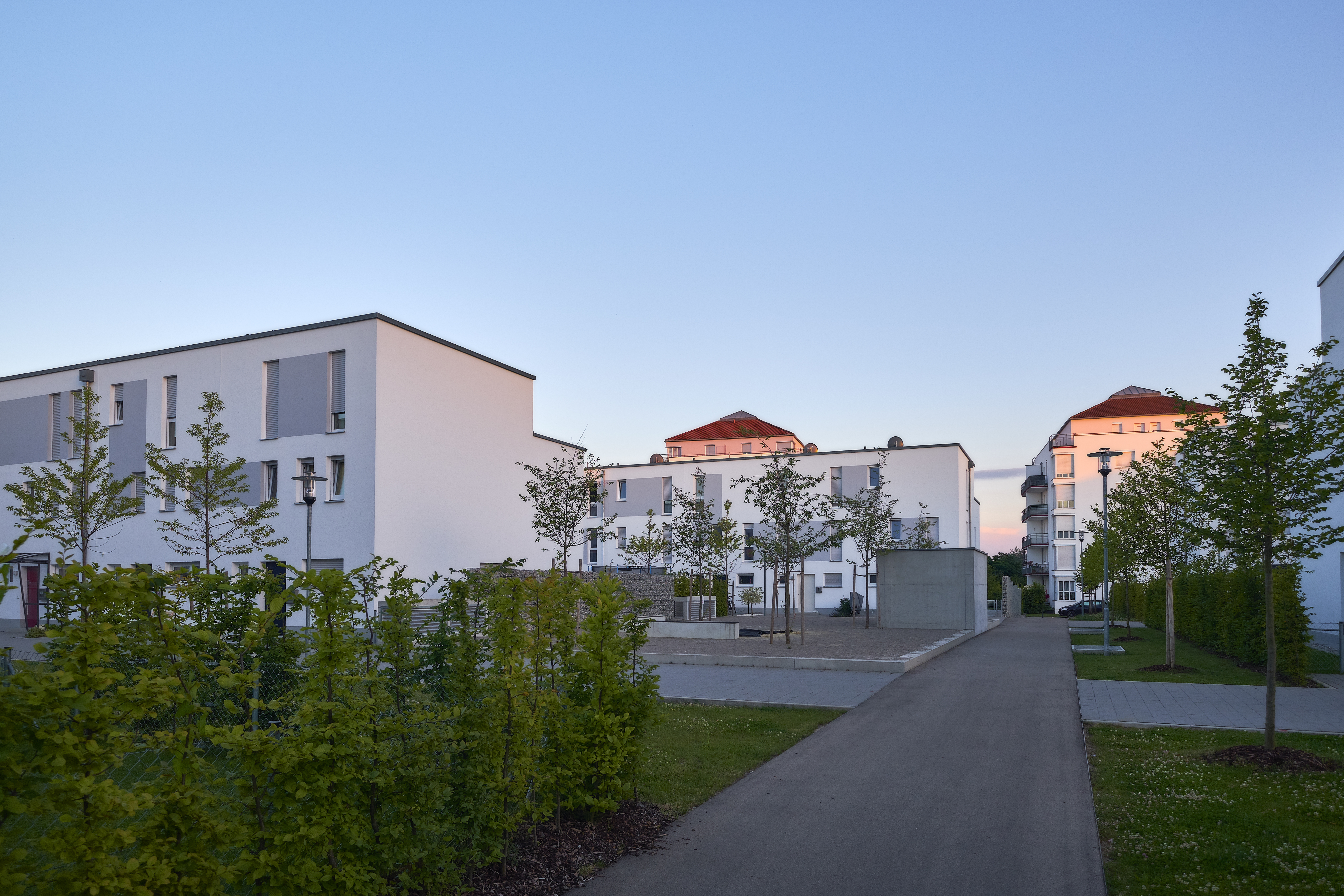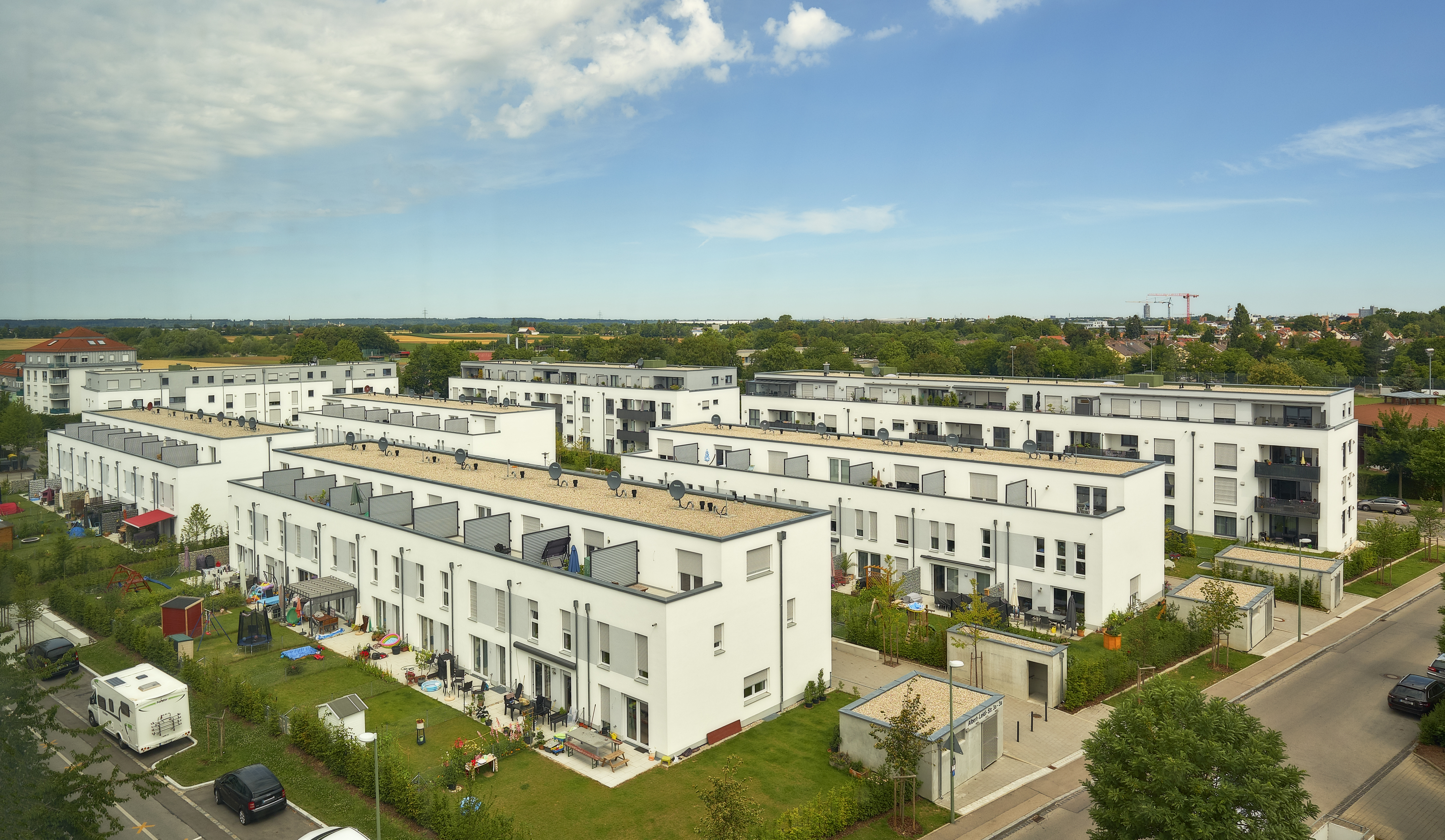 Konzipiert wurde das neue Quartier als autofreie Anlage mit Gärten und großzügigen Freiflächen. Dank der guten Anbindung an den öffentlichen Nahverkehr und der direkten Nachbarschaft zum Augsburger Stadtwald bieten die Wohnungen und Häuser eine gelungene Kombination aus Stadt- und Naturnähe. So verwundert es auch nicht, dass alle Einheiten bereits vor der Fertigstellung komplett verkauft waren.