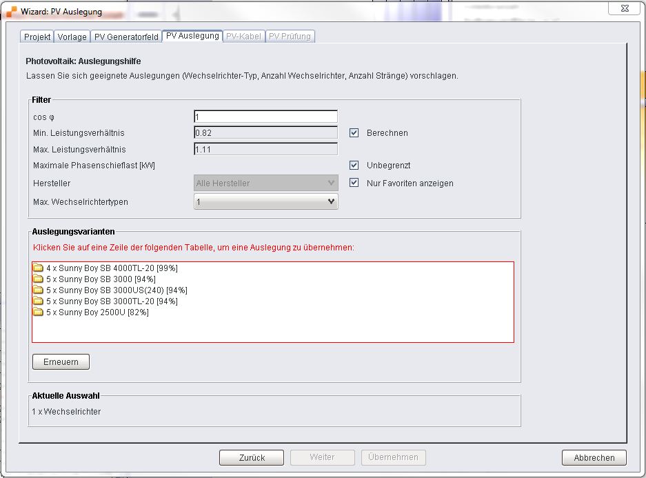 Auswahl des passenden Systems mit Eingabe der relevanten Kenndaten