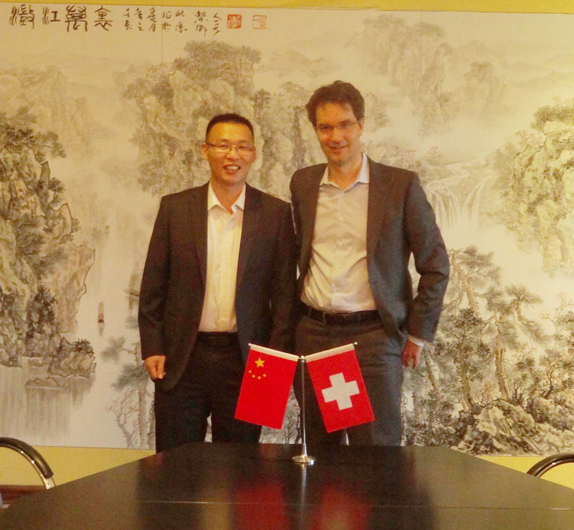 NERCRE representative Zhu Jiankun with Vela Solaris CEO Andreas Witzig at the project kick-off meeting in Beijing in March 2015.