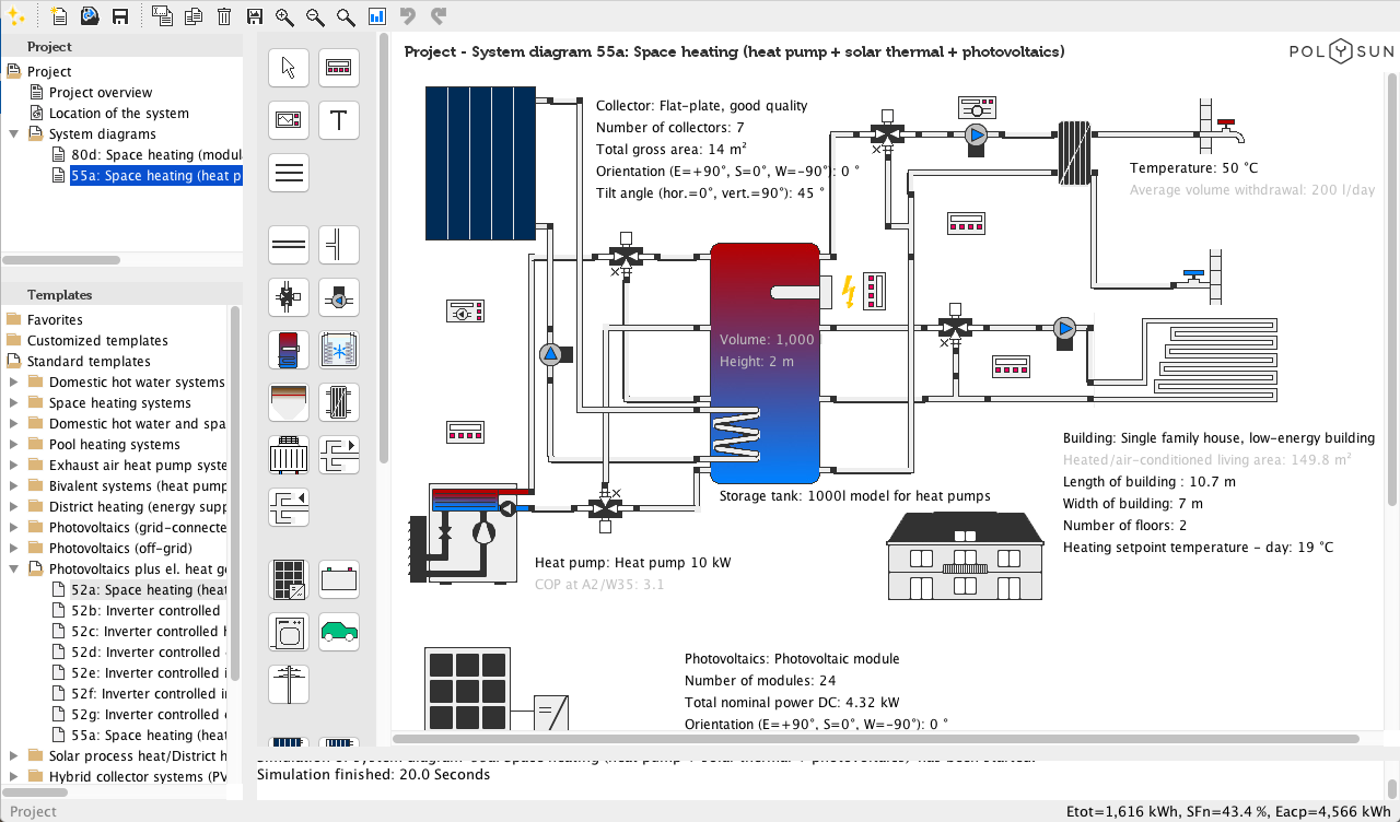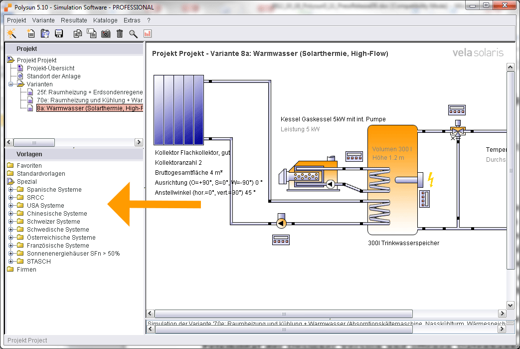 Polysun Assistent Vorlagenauswahl mit Anlage
