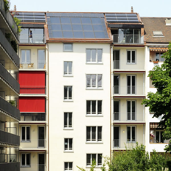 Kombination von Solarthermie, Wärmepumpen und Photovoltaik in einem System (© Nina Mann / Viridén + Partner AG, Zürich)