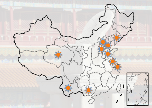 The 10 provinces that were represented in the first course: in geographical order from northeast to southwest and central-west: Liaoning, Beijing, Tianjin, Hebei, Shandong, Jiangsu, Shanghai, Guangxi, Yunnan, Qinghai.
