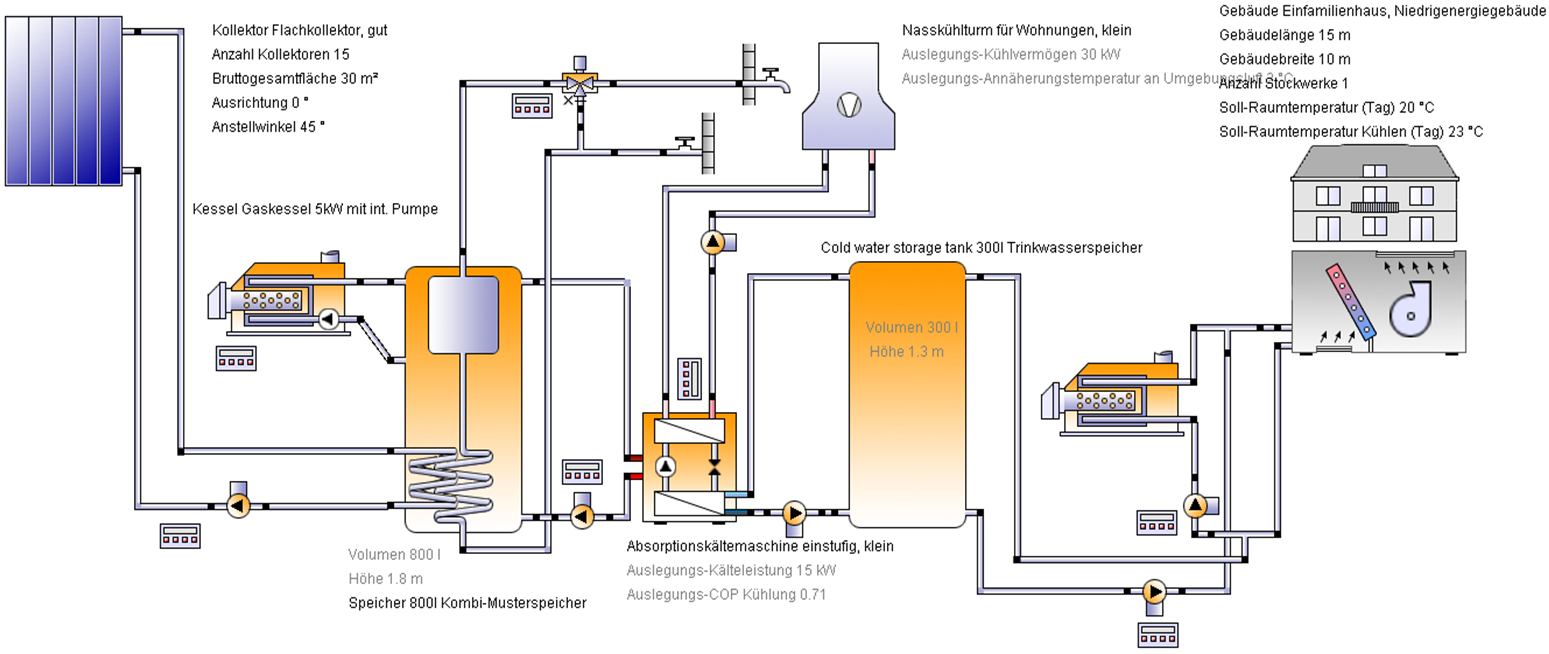 Abbild eines typischen Kühlsystems in der Simulationssoftware Polysun