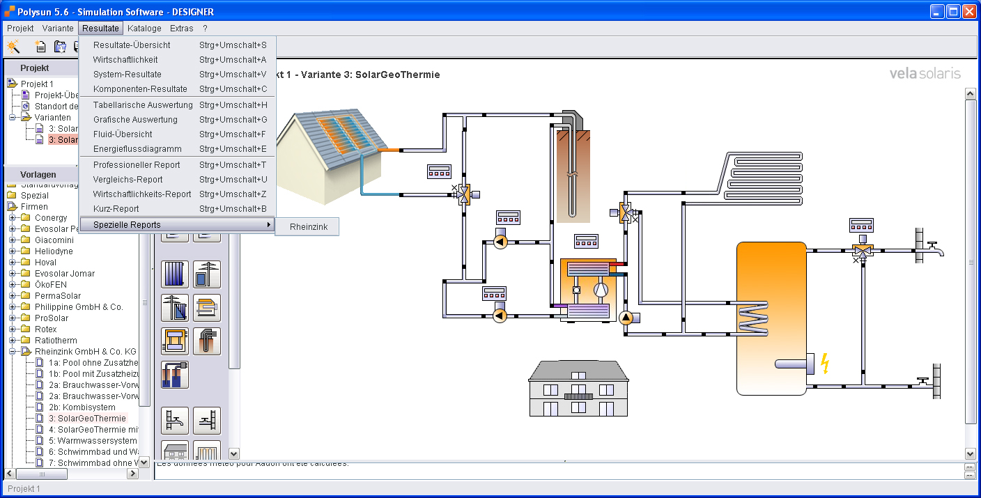 Screenshot der aktuellen Polysun Version 5.6 mit dem Rheinzink-Report
