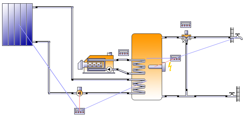 Polysun Hydraulikschema mit Solarthermie und Photovoltaik