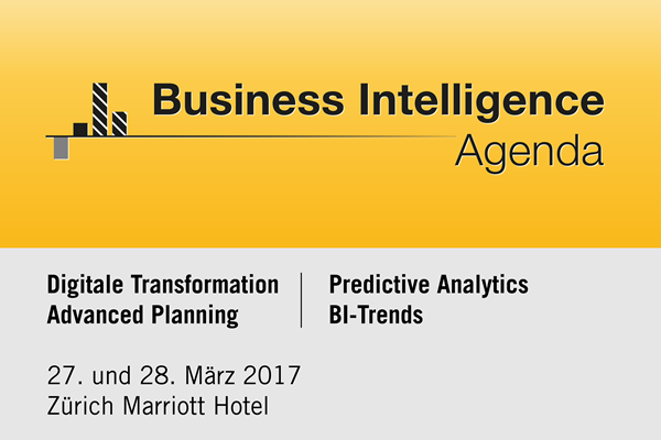 (pressebox) (Kreuzlingen, 02.03.2017) Die Diskussion um digitale Transformation nimmt weiterhin Fahrt auf: neben der Digitalisierung gelten Start-ups, Big Data und Analytics als aktuelle Herausforderungen für viele Unternehmen. Die Jahrestagung Business Intelligence Agenda versammelt am 28. März bereits zum fünften Mal Controller, Finanzverantwortliche und BI-Experten in Zürich, um die aktuellen Entwicklungen der schweizerischen BI-Branche zu beleuchten. Analysten präsentieren ihre Ergebnisse und die neuen Trends. Anwender von BI-Lösungen berichten von den Praxiserfahrungen aus ihren Unternehmen.
