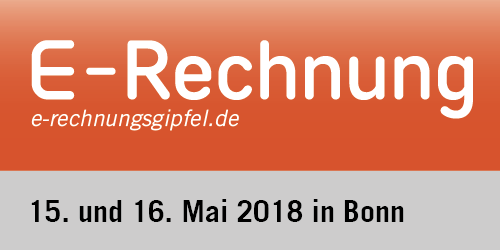 Der 4. E-Rechnungs-Gipfel wird nach der erfolgreichen Zusammenarbeit der letzten Jahre erneut unter Leitung des Bundesministerium des Innern und des Verbandes elektronische Rechnung in Bonn am 15. und 16. Mai 2018 präsentiert. Er stellt die zentrale Diskussionsplattform für alle Akteure aus Wirtschaft, Öffentlicher Verwaltung und von Dienstleistern für Themen rund um eine reibungslose Einführung der Automatisierung von Bestell- und Rechnungsprozessen dar. In diesem Jahr stehen u. a. folgende Themenschwerpunkte auf der Agenda: