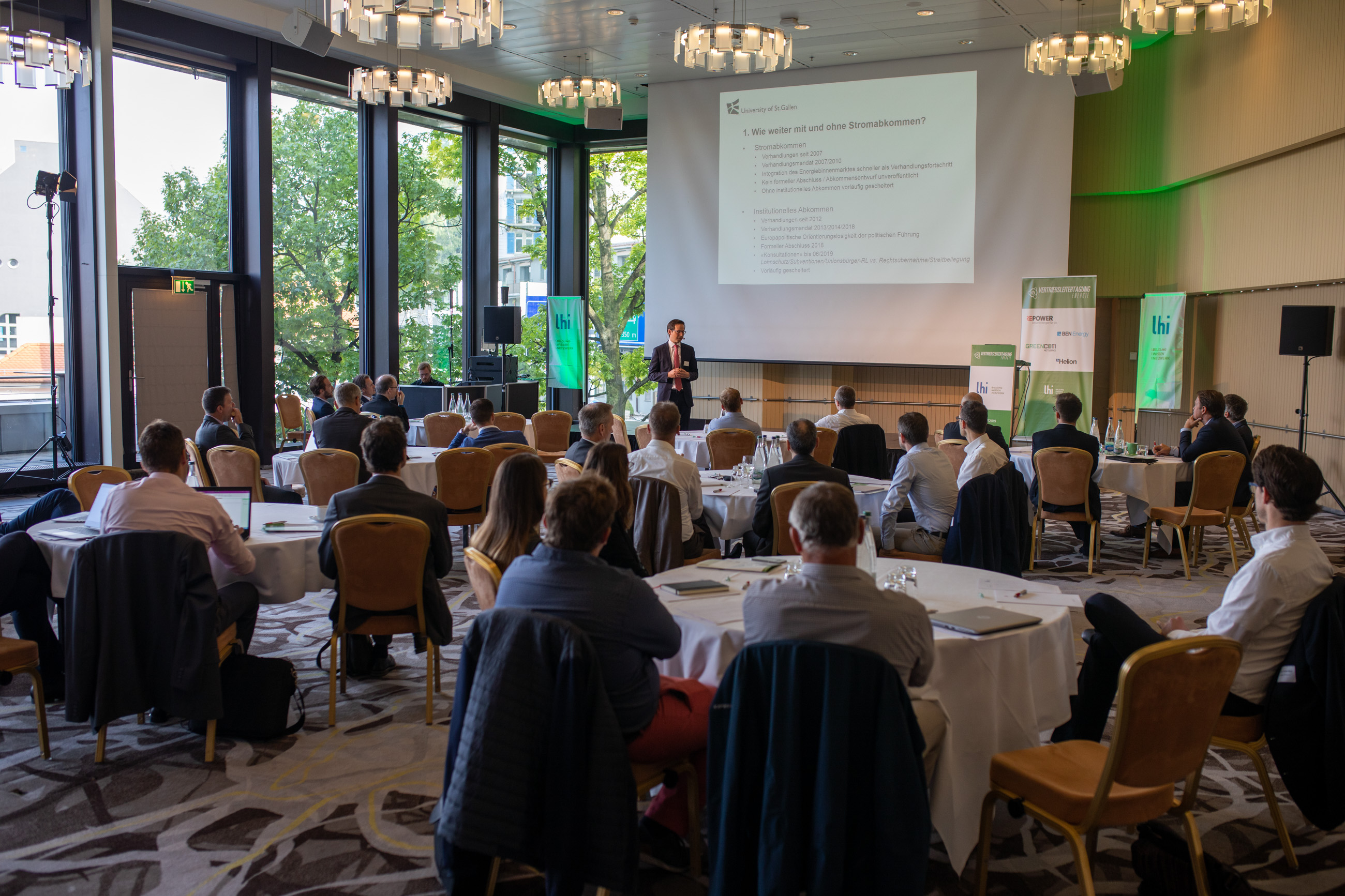 Der erste Tag der Vertriebsleitertagung widmete sich dem Spannungsfeld von freiem Markt, Regulierung, Vertrieb und Netz. Eingeleitet wurde mit einer spannenden Keynote von Prof. Dr. Peter Hettich (HSG). Er berichtete über die Entwicklung der Rahmenbedingungen im Energiesektor. So wurde deutlich, dass sich nicht nur beim Stromabkommen beide Seiten bewegen müssen. Er sagte, die Schweiz kenne kein Subventions- und Beihilferecht. Eine Umsetzung missachte sie seit 1972. Auch müsse die Sicherung der Grundversorgung im freien Markt immer gewährleistet sein, so Hettich. Dies sei der wichtigste Diskussionspunkt bei einer Marktöffnung. Anschliessend erklärte Dr. Matthias Galus (BFE), was die «Strategie Digitale Schweiz» für die Energiewirtschaft bedeutet und gab tiefere Einblicke in das Dialogpapier «Digitalisierung im Energiesektor». Er appellierte für eine schnellere und breitere Umsetzung von Digitalisierungsinitiativen. Heute sei die Schweiz zwar führend in Forschung & Entwicklung bei Digitalisierung, aber es bestehe Aufholbedarf bei der Umsetzung und dem «Export». Georg Meier (Energie Zukunft Schweiz) setzte hier an und gab einen aufschlussreichen Einblick in die Welt der Energiemanagement Systeme und was mit deren Einsatz heute schon möglich ist. Themenverwandt berichtete danach Hans-Joachim Demmel (BKW) aus der Praxis beim Vertrieb von Energiedienstleistungen. Dabei wurde deutlich, dass sich Privatkunden mittlerweile sehr stark für Kima, Umwelt und Energiesparen interessieren, dies jedoch ein kleinteiliges und dünnmargiges Geschäft sei. Am nahesten läge der Einstieg in die Kundenbeziehung mittels PV und werde sich mit der Verknüpfung von Wärmeversorgung, Elektromobilität sowie Hochbau fortsetzen. Jan Lengerke (Greencom Networks) zeigte anschliessend auf, wie die Energiewirtschaft mit «Decentral Energy Resources Management» bereits heute und vor allem in der Zukunft Wert schöpfen kann.