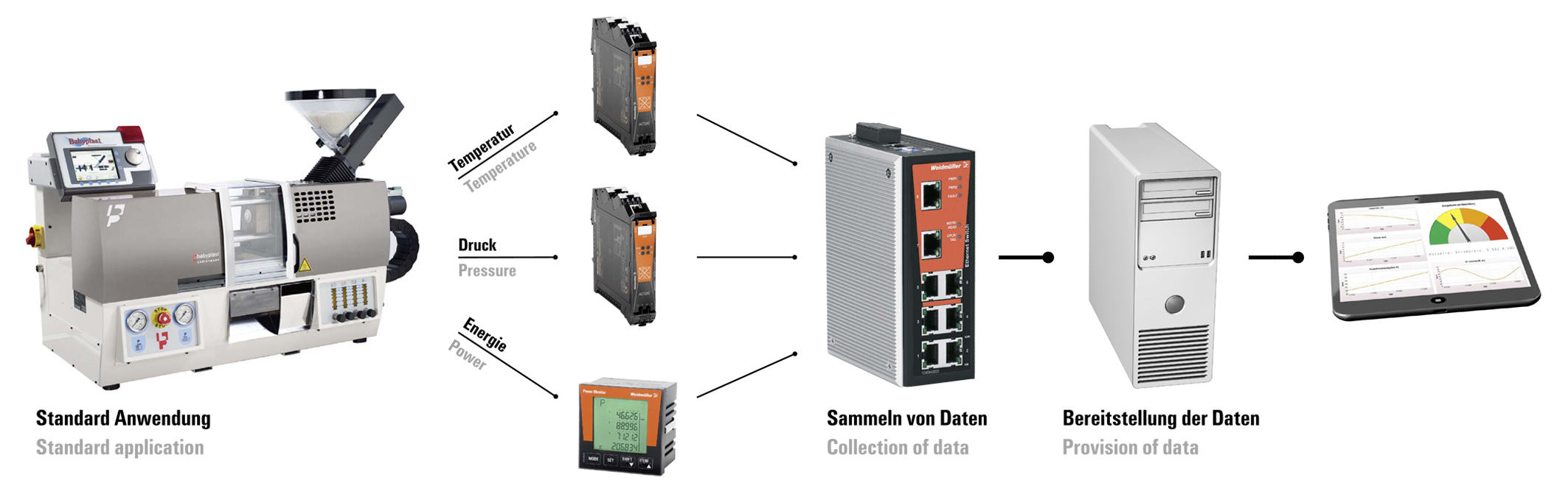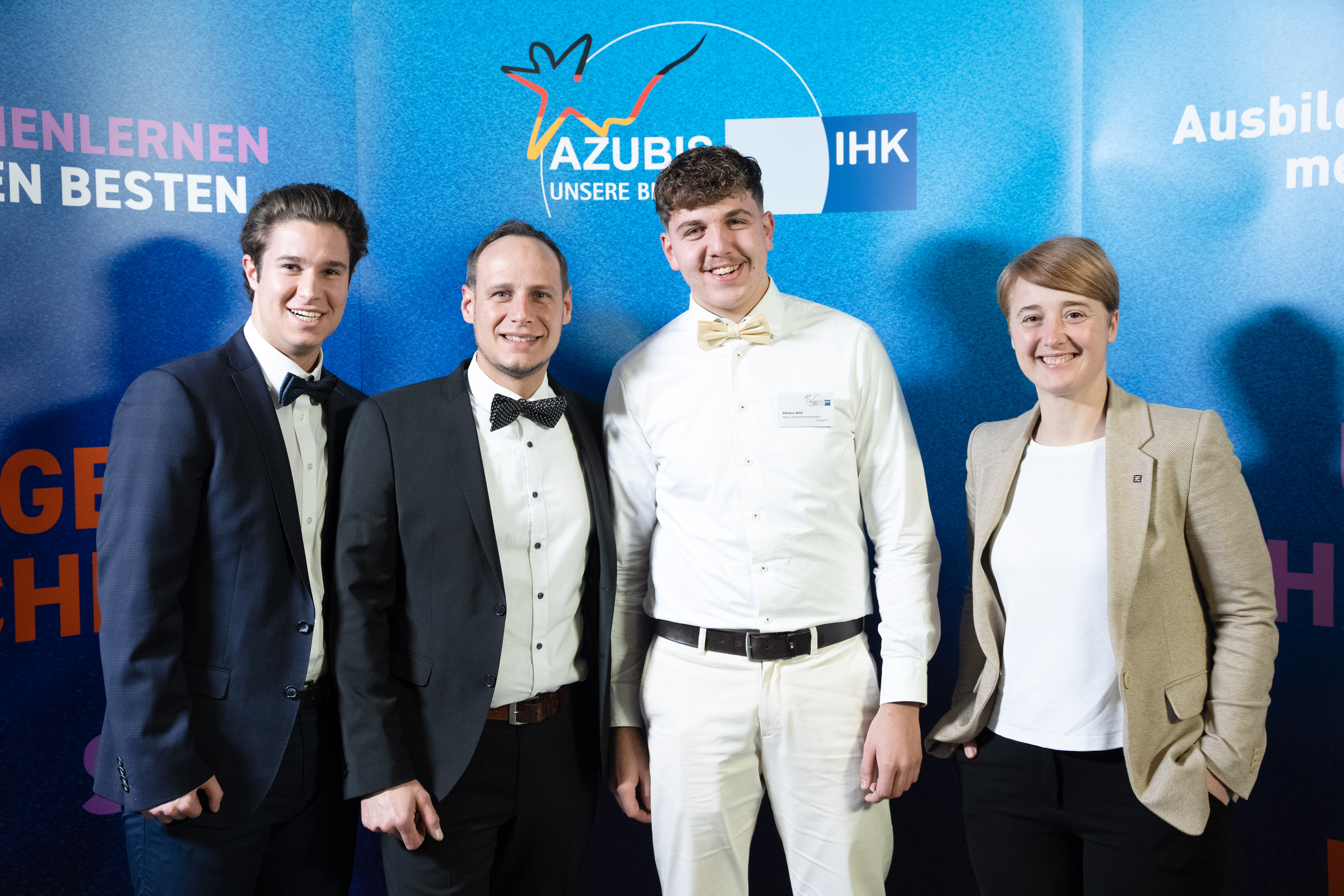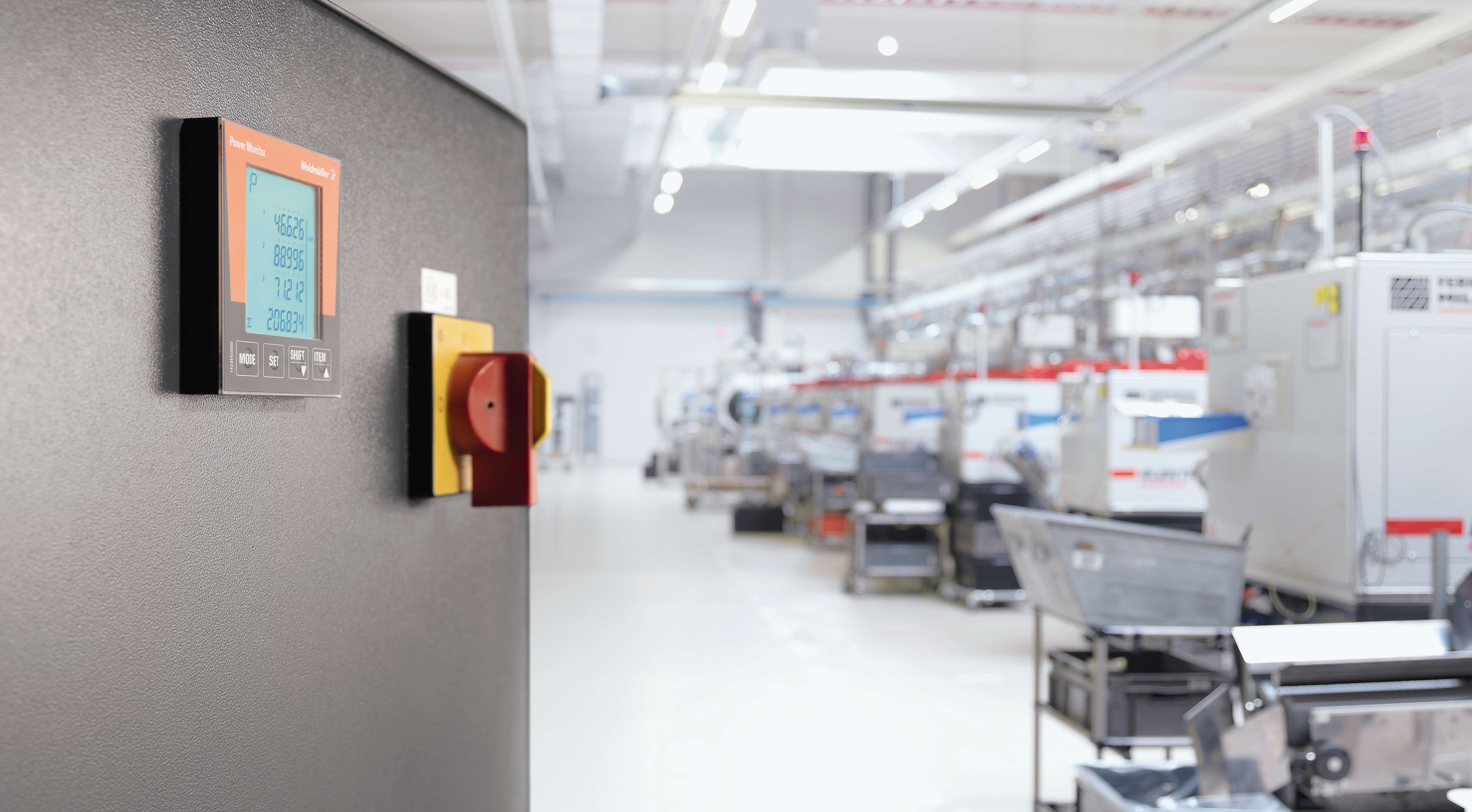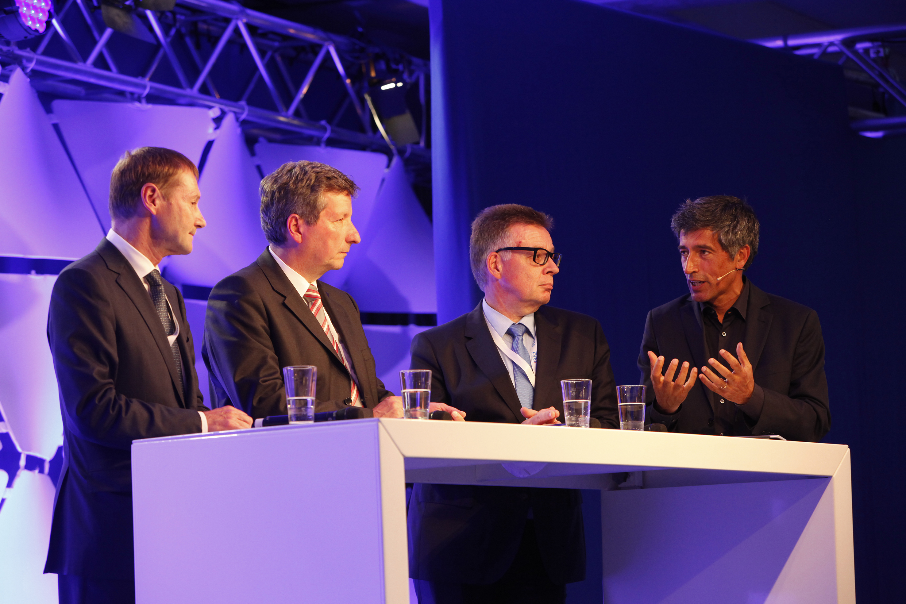 (v.l.n.r) Alexander Boschmann, Technologieentwickler bei Weidmüller, Dr. Sebastian Durst, Vorstandsvorsitzender der Weidmüller Gruppe, Mona Neubaur, Ministerin für Wirtschaft, Industrie, Klimaschutz und Energie des Landes Nordrhein-Westfalen, und Mark Edler, Leiter des Bereichs Global Environment, Health and Safety bei Weidmüller, bei der Veranstaltung zur Übergabe des Förderbescheids an die GoProZero-Projektbeteiligten