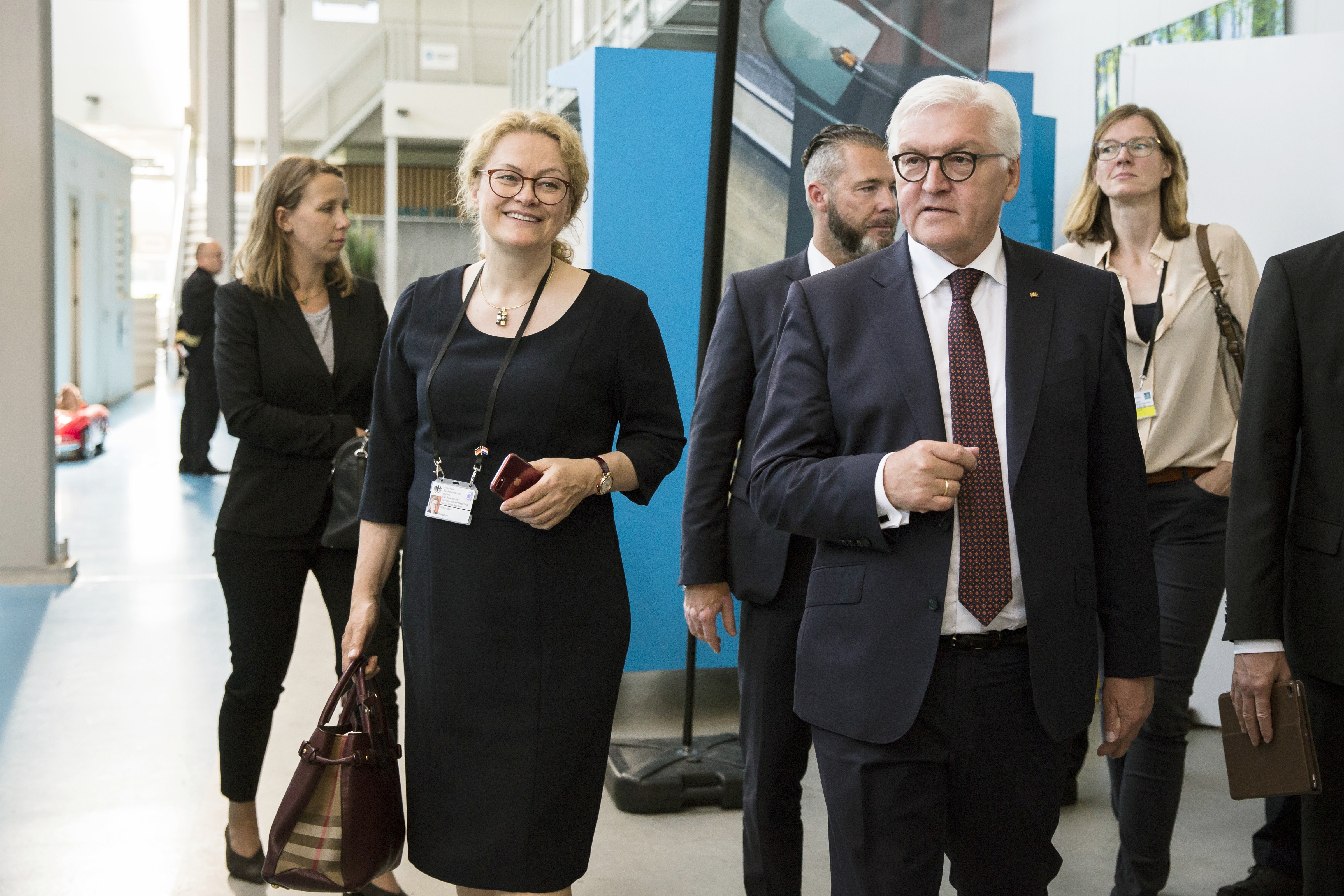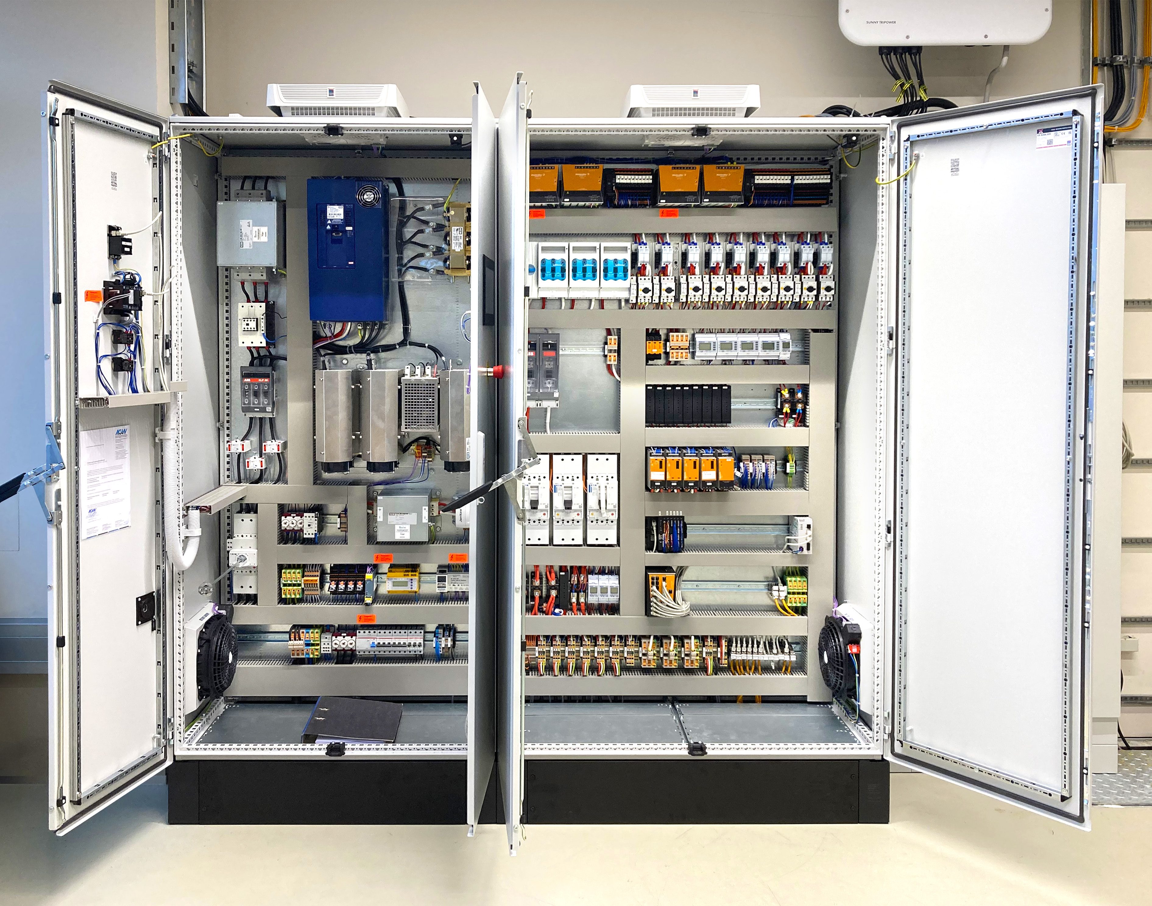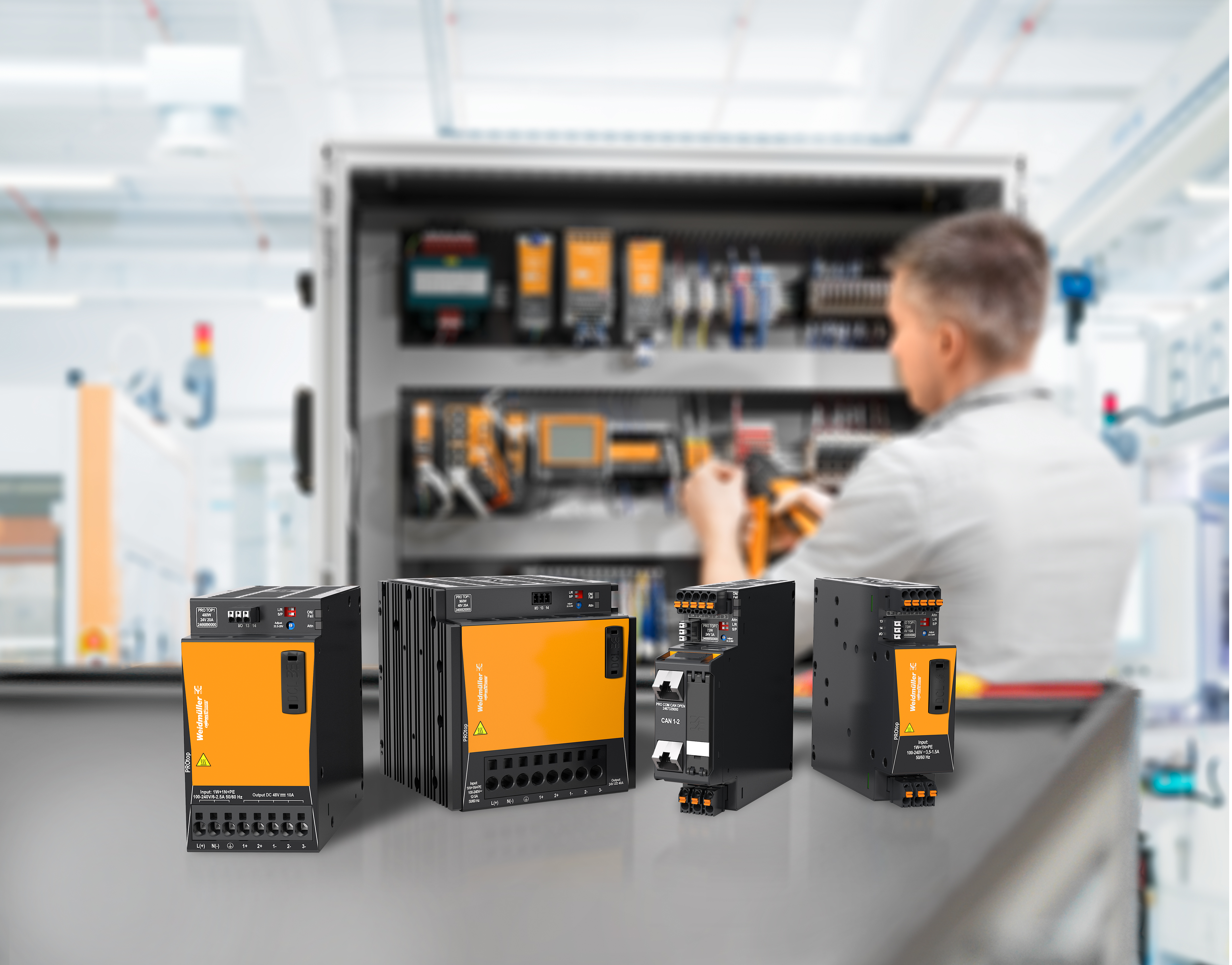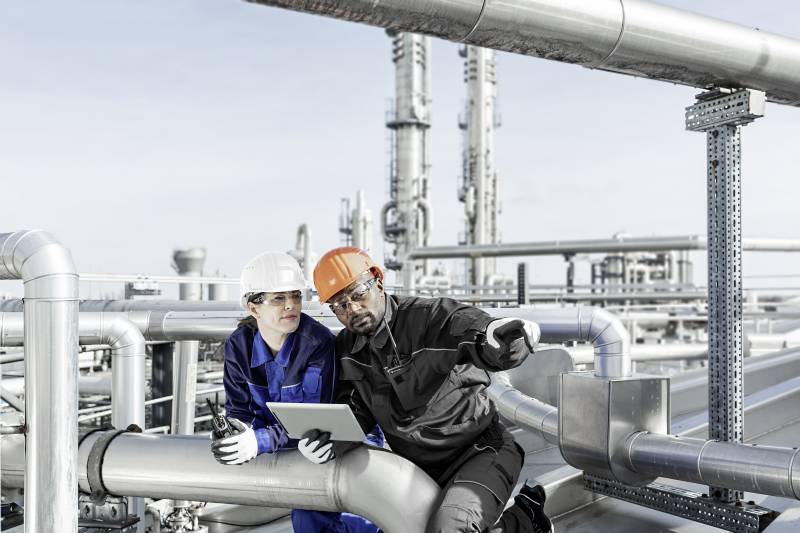 (v.l.n.r) Alexander Boschmann, Technologieentwickler bei Weidmüller, Dr. Sebastian Durst, Vorstandsvorsitzender der Weidmüller Gruppe, Mona Neubaur, Ministerin für Wirtschaft, Industrie, Klimaschutz und Energie des Landes Nordrhein-Westfalen, und Mark Edler, Leiter des Bereichs Global Environment, Health and Safety bei Weidmüller, bei der Veranstaltung zur Übergabe des Förderbescheids an die GoProZero-Projektbeteiligten