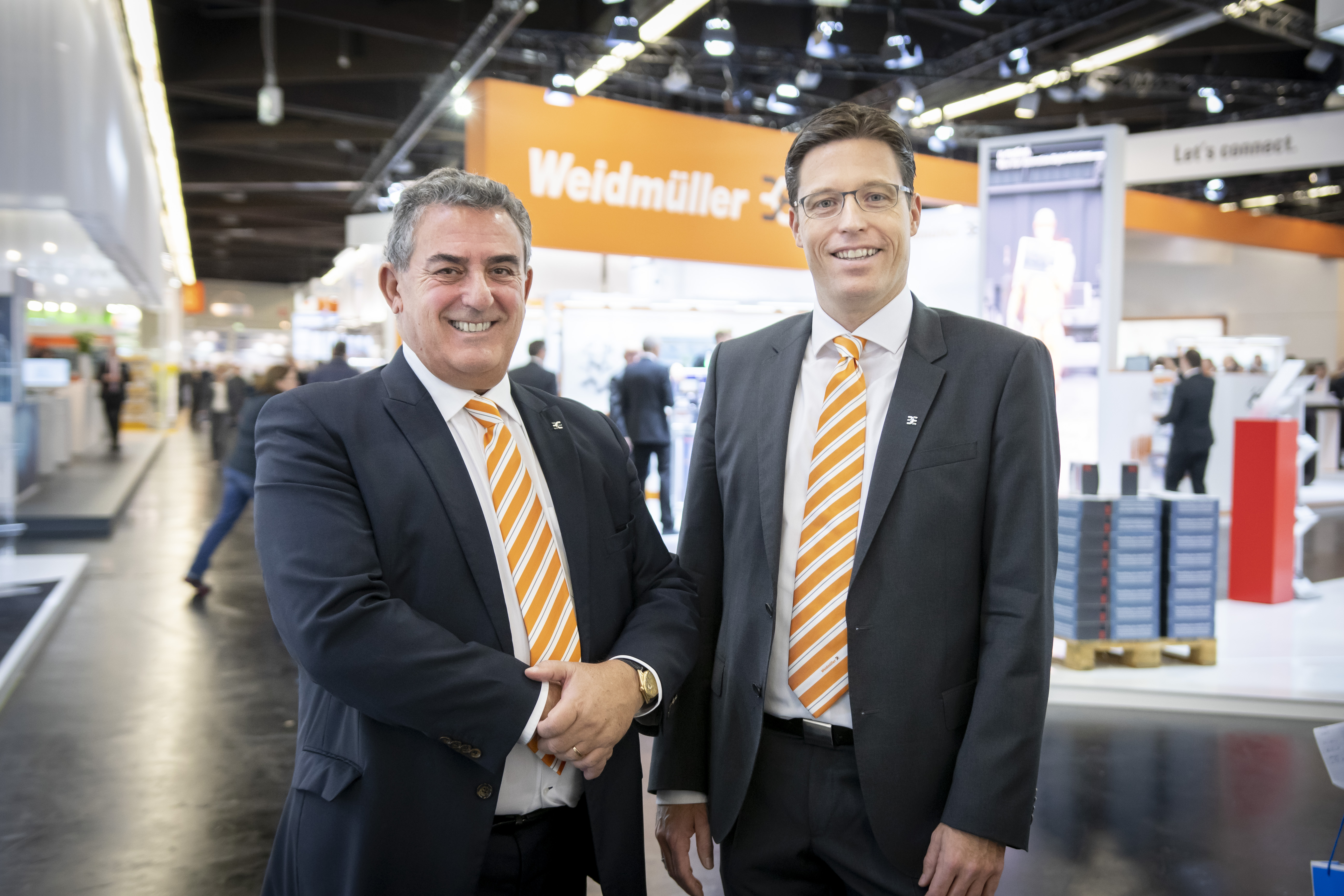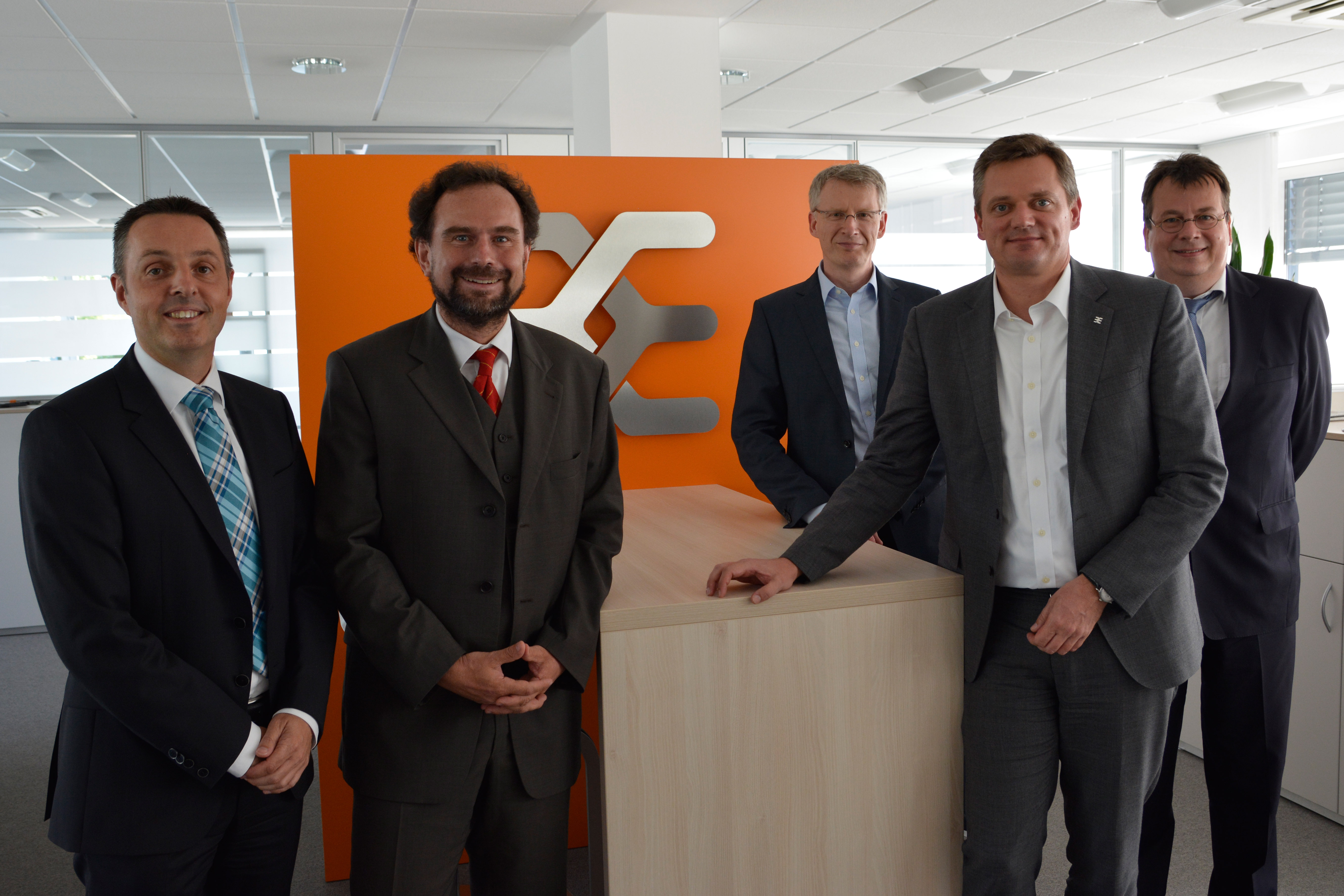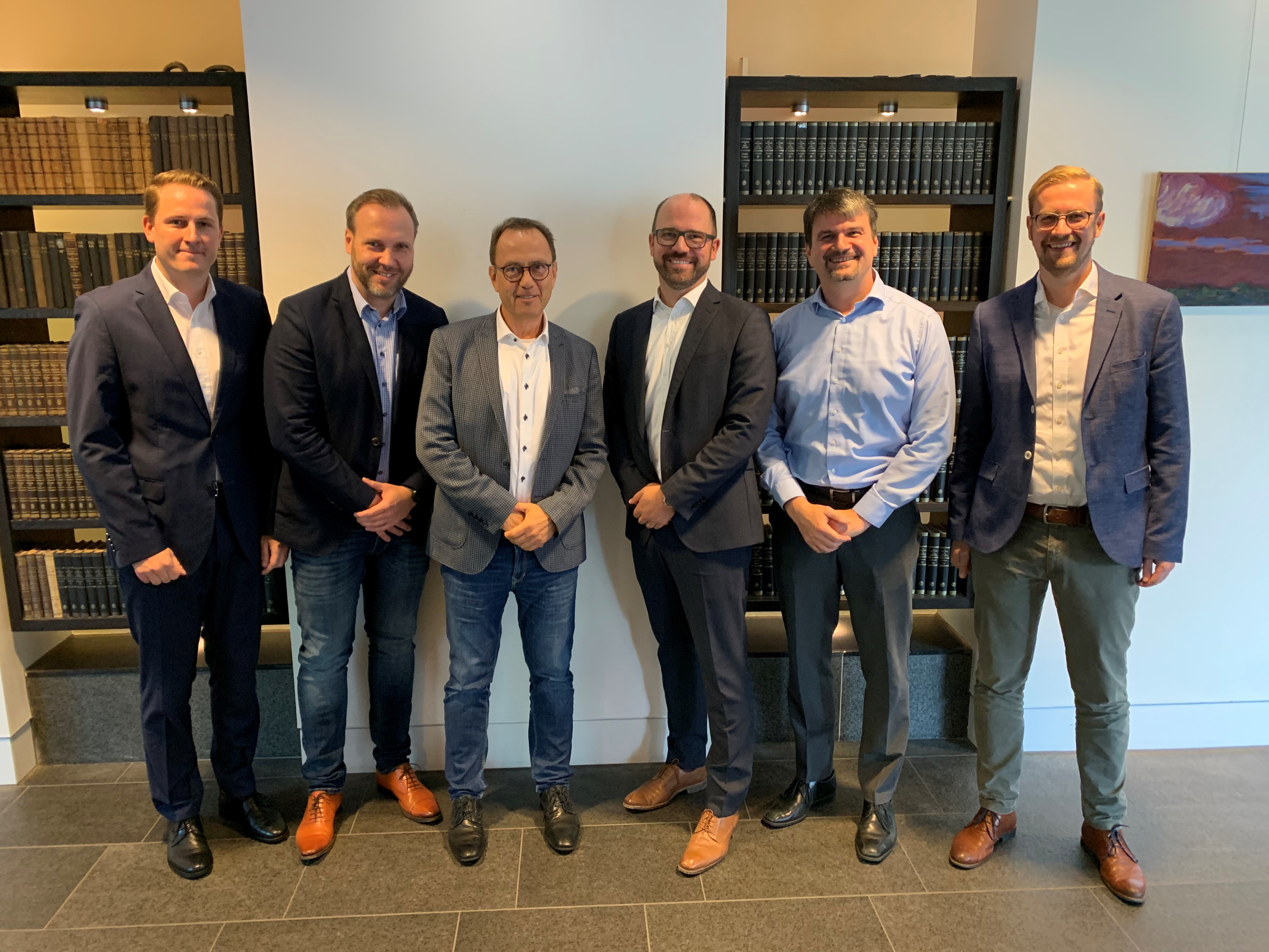 : Freuen sich über die Zusammenarbeit: (v.l.n.r.) Arnd Schepmann, Head of Division Cabinet Products bei Weidmüller, Frank Polley, Head of Cabinet Products Business Development bei Weidmüller, Sebastian Seitz, CEO von Eplan, Volker Bibelhausen, Vorstandssprecher und Technologievorstand von Weidmüller, Dieter Pesch, Bereichsleiter F&E und Produktmanagement bei Eplan, Dr. Sebastian Durst, Vorstand Operations von Weidmüller, Vincent Vossel, Team Leader Business Development Management bei Weidmüller.