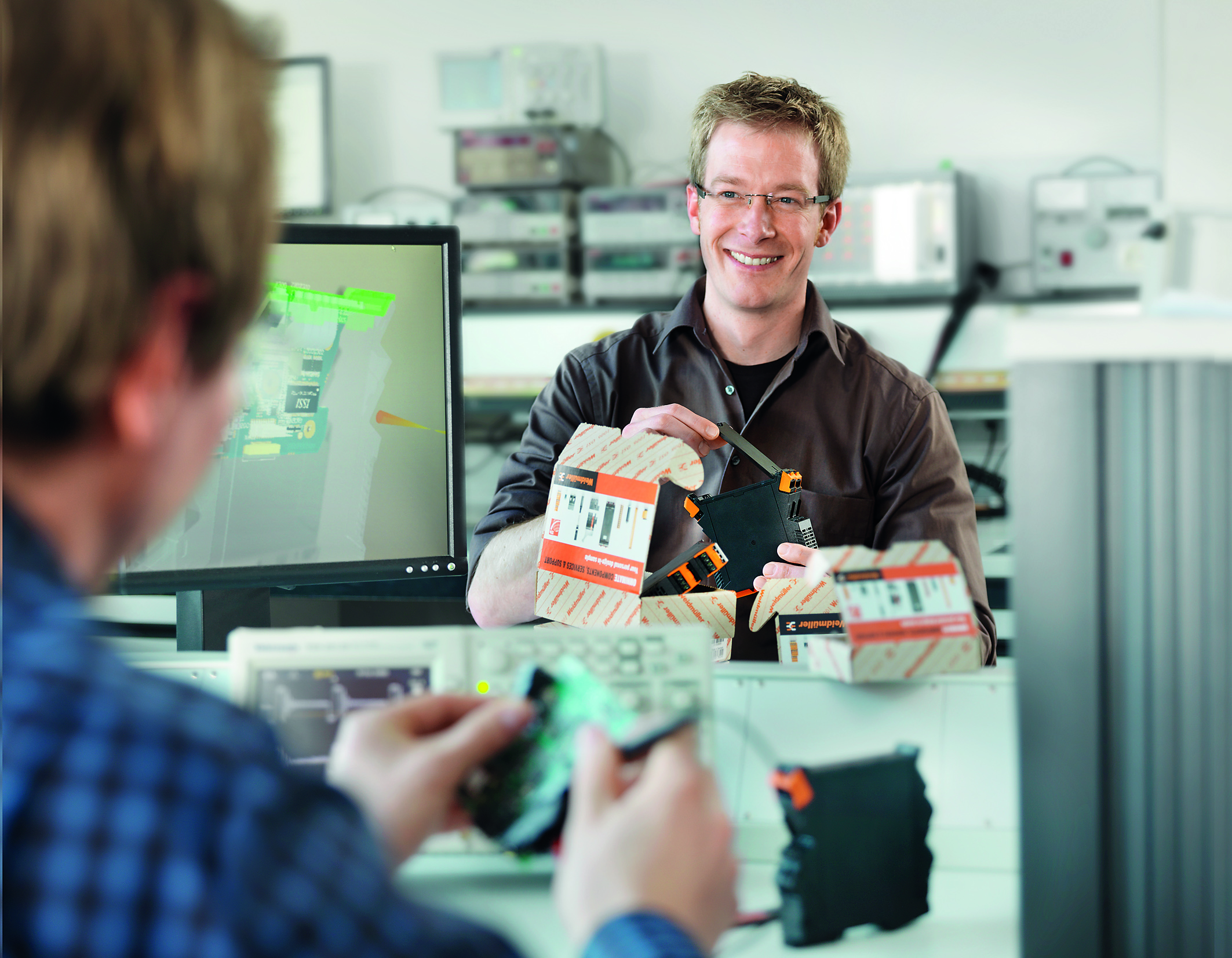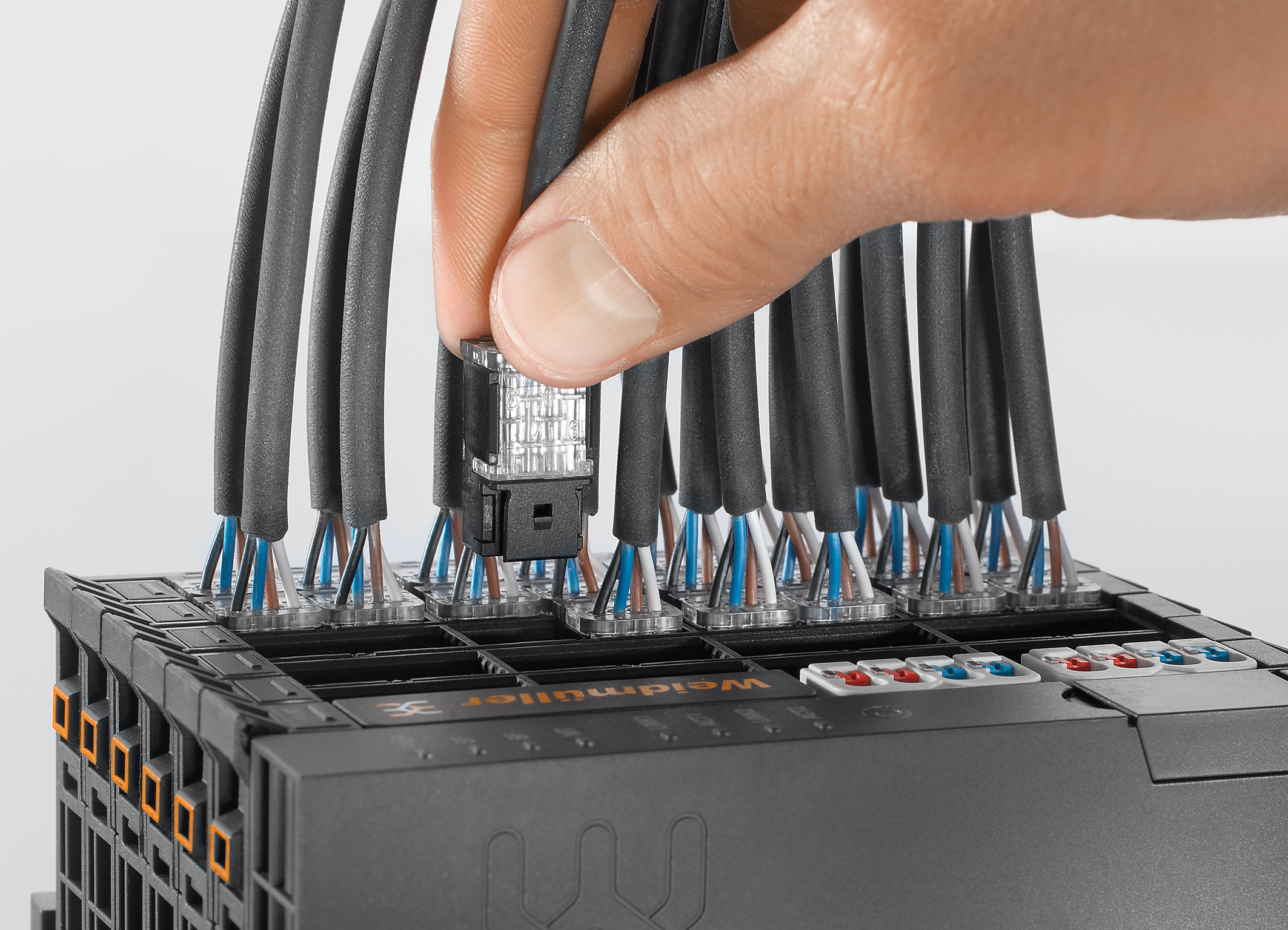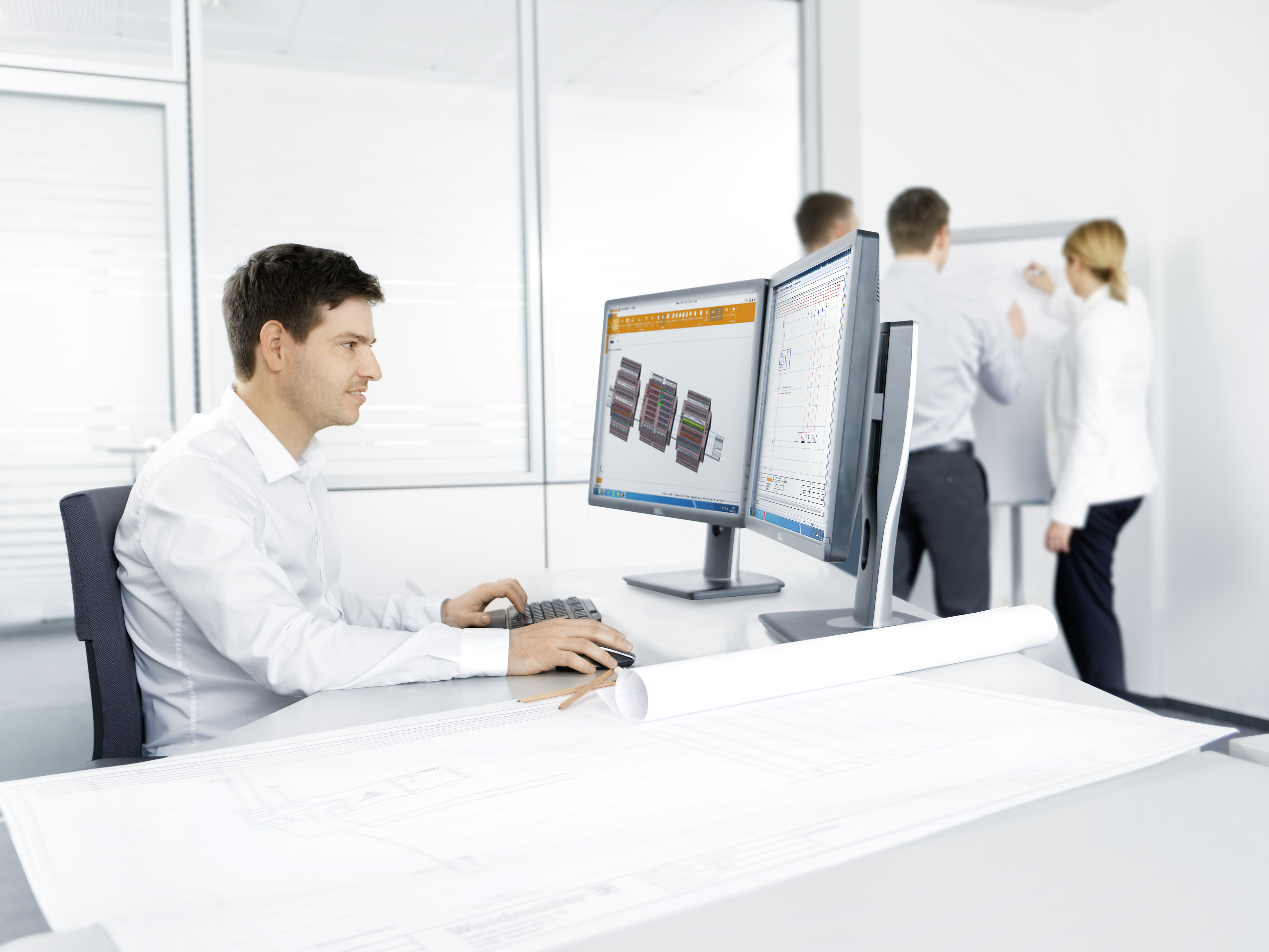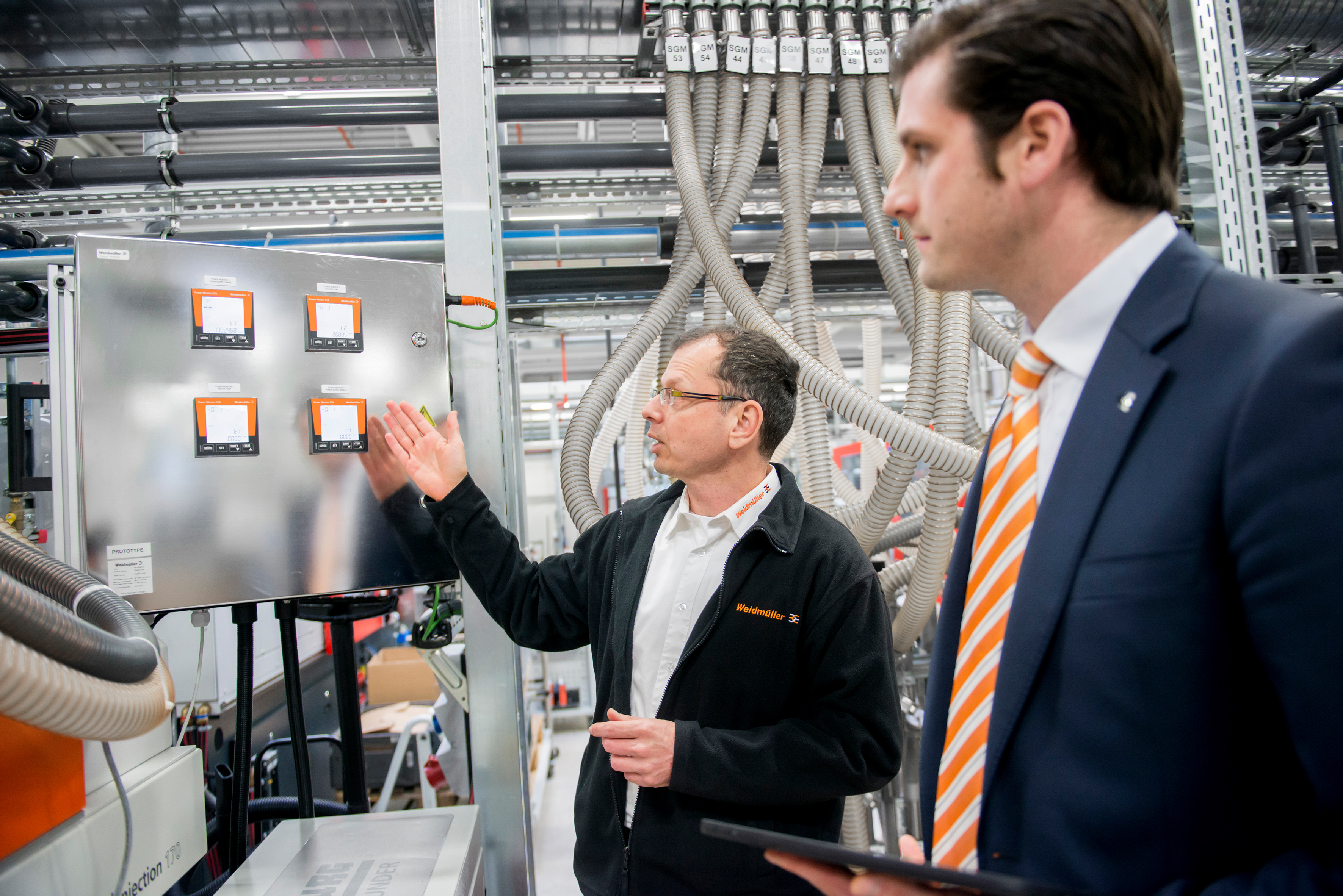: Freuen sich über die Zusammenarbeit: (v.l.n.r.) Arnd Schepmann, Head of Division Cabinet Products bei Weidmüller, Frank Polley, Head of Cabinet Products Business Development bei Weidmüller, Sebastian Seitz, CEO von Eplan, Volker Bibelhausen, Vorstandssprecher und Technologievorstand von Weidmüller, Dieter Pesch, Bereichsleiter F&E und Produktmanagement bei Eplan, Dr. Sebastian Durst, Vorstand Operations von Weidmüller, Vincent Vossel, Team Leader Business Development Management bei Weidmüller.