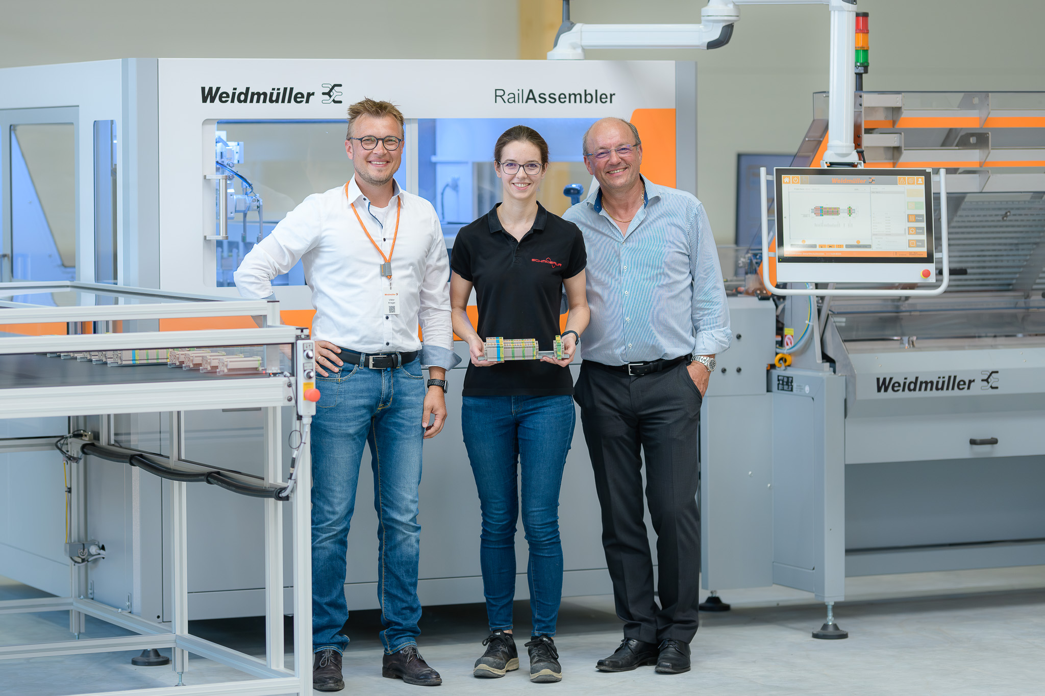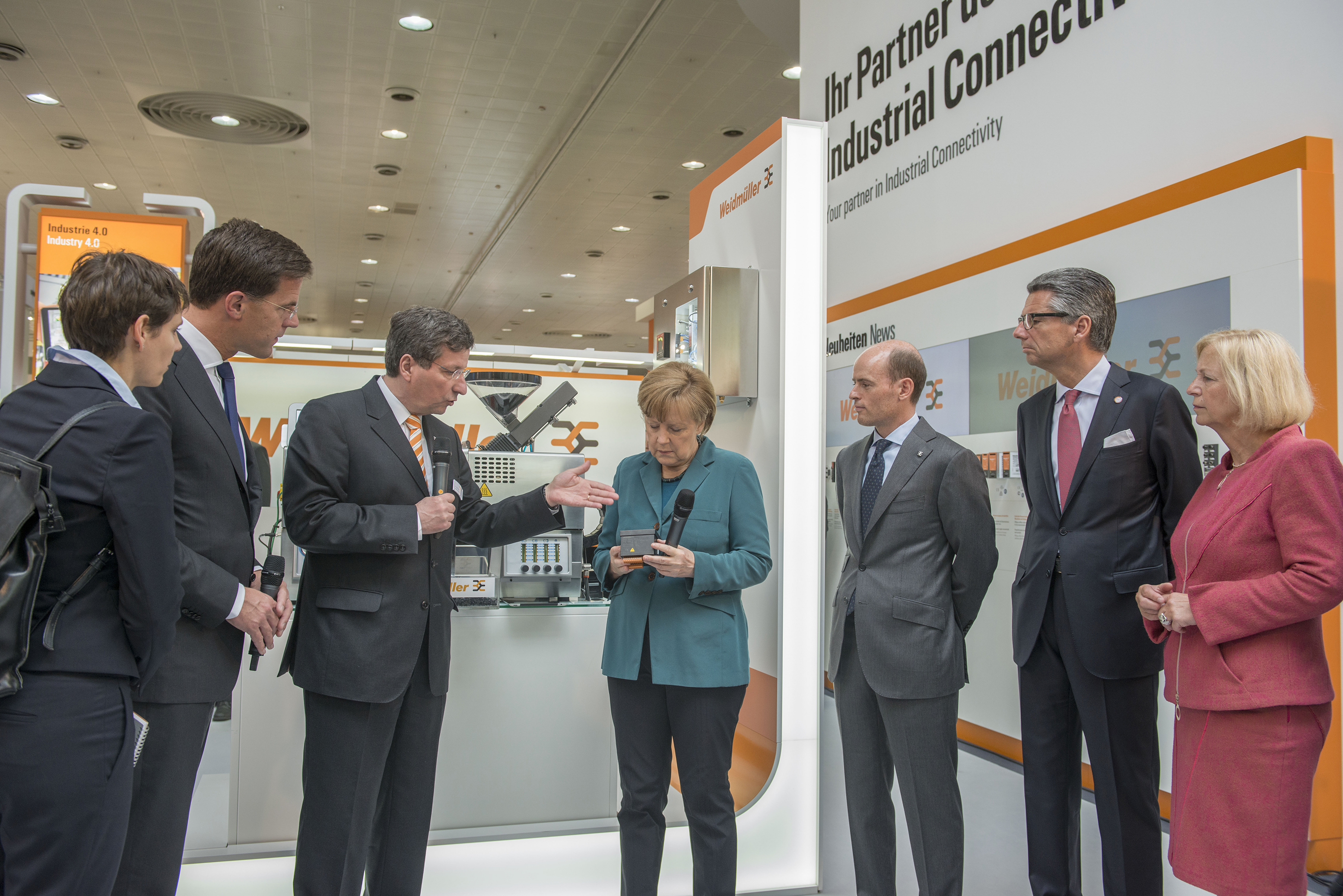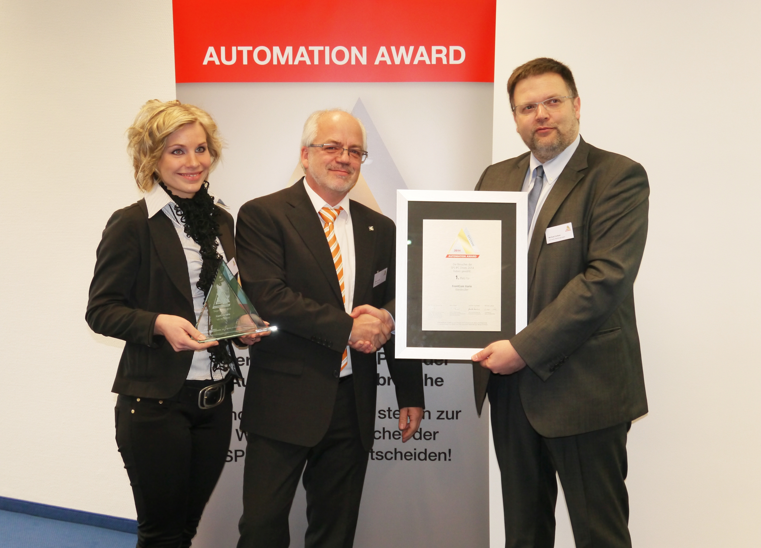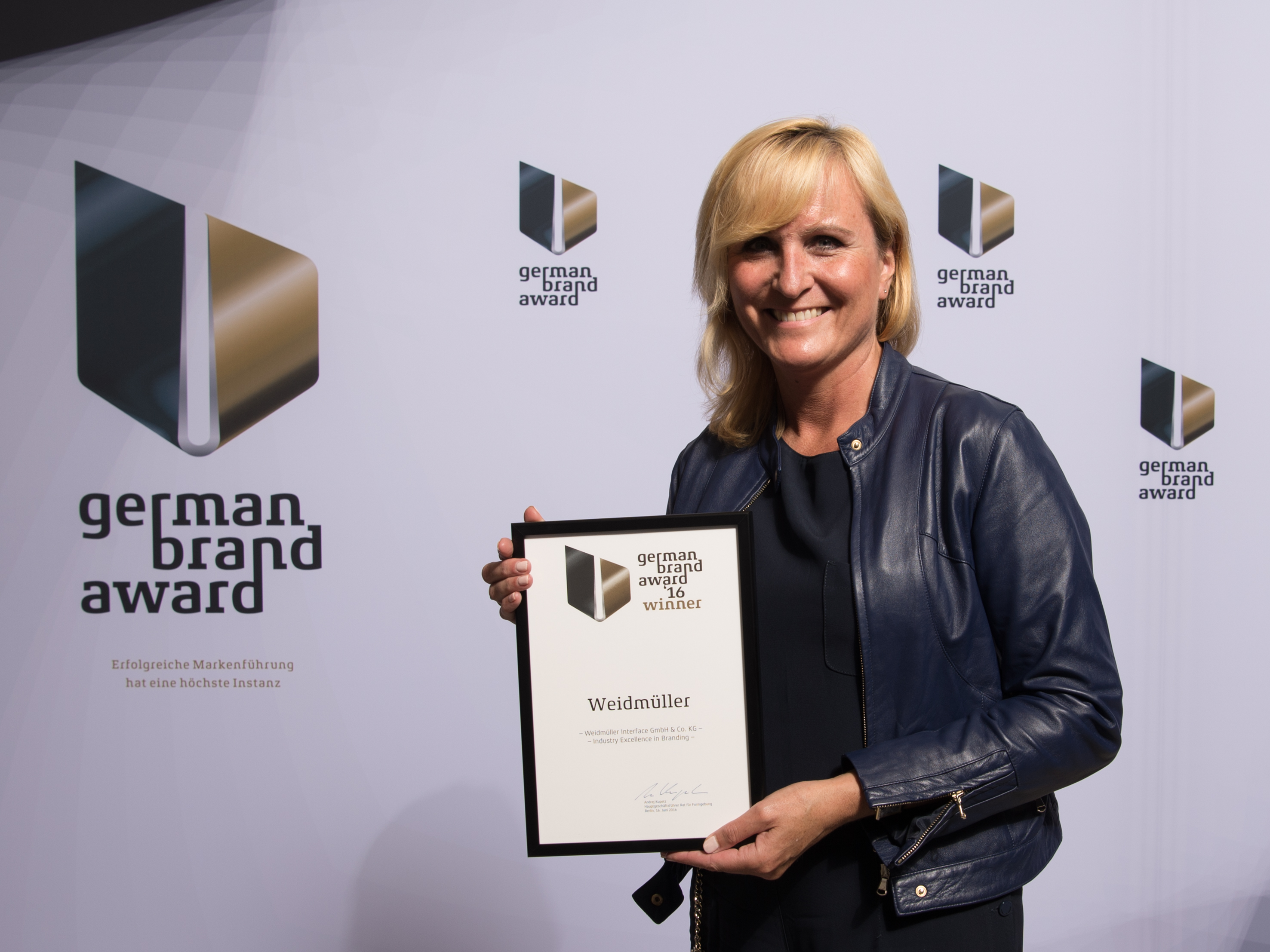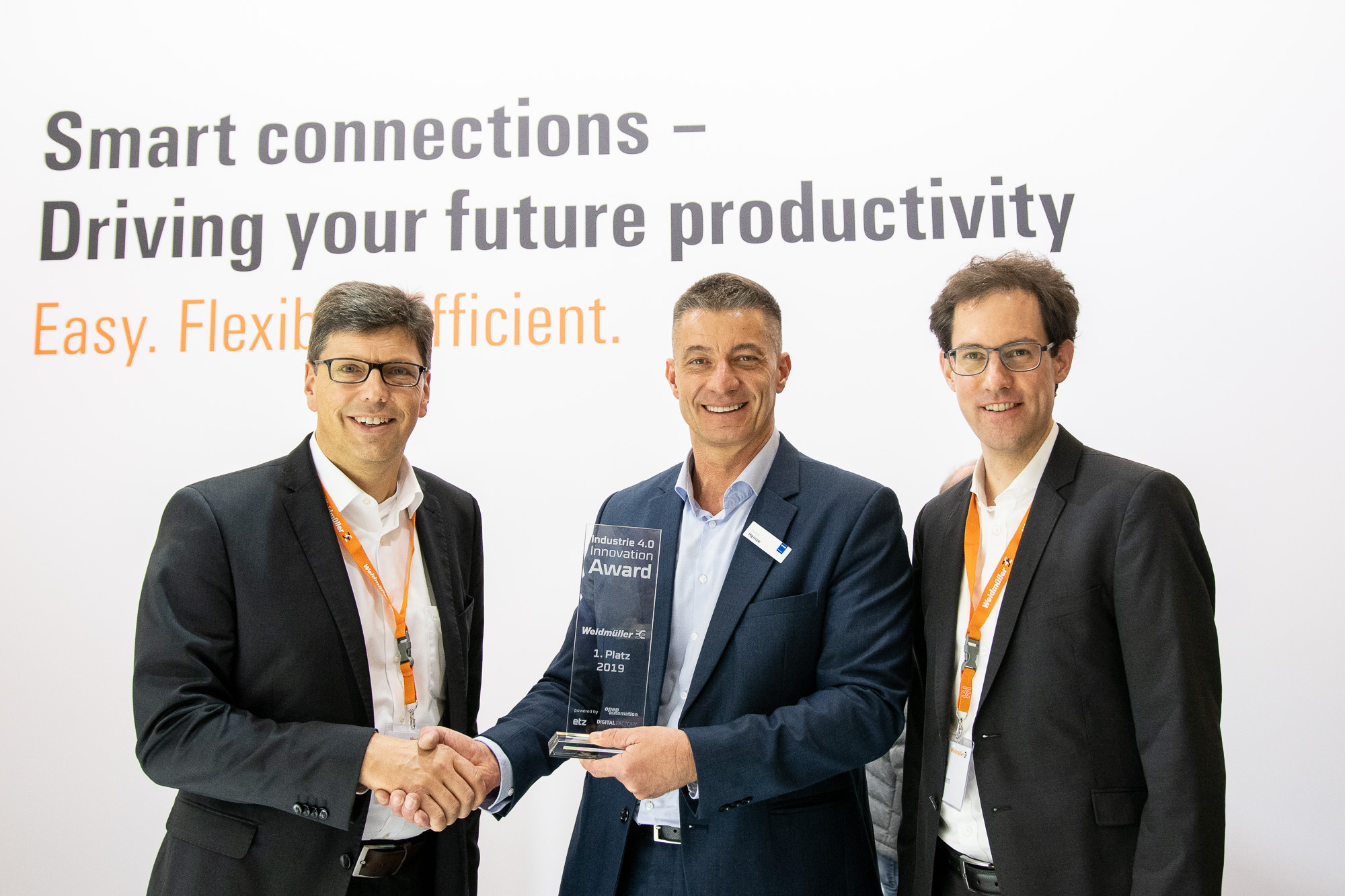 Jose Carlos Alvarez Tobar, Chief Marketing & Sales Officer; Dr. Timo Berger, Managing Director / Executive Vice President Region CE; Franziska Klein, Marketing Distribution; Roger Kroon, Vice President Global Distribution Management; Berndt van Nüss, Manager Catalogue, Online- and Tools Distributors von Weidmüller und Pirjo Niemi, VP Strategic Marketing, B2B Europe, Andreas Lippert, Vice President, B2B DACH; Michael Schlagenhaufer von Conrad Electronic bei der Übergabe des Awards