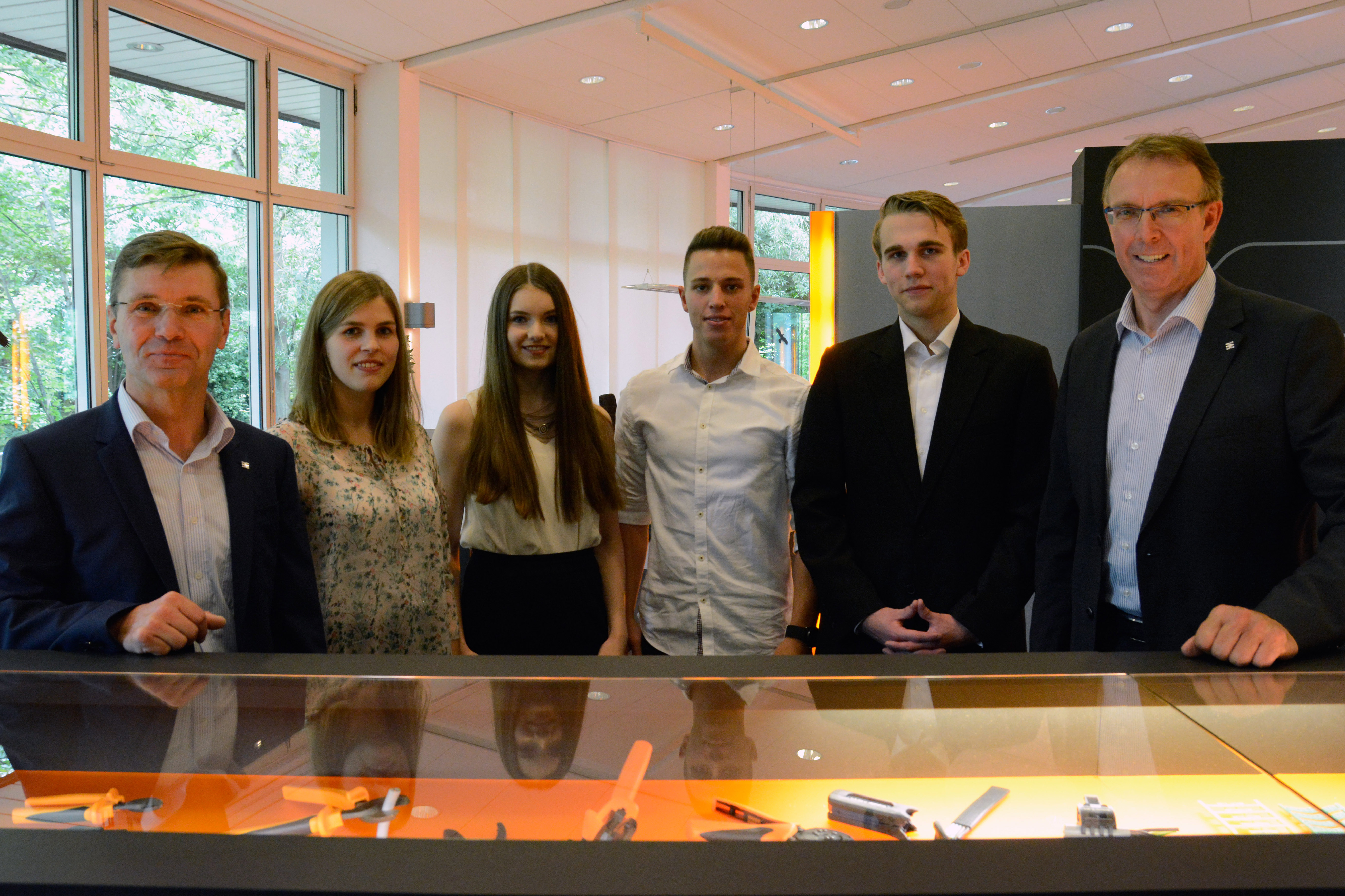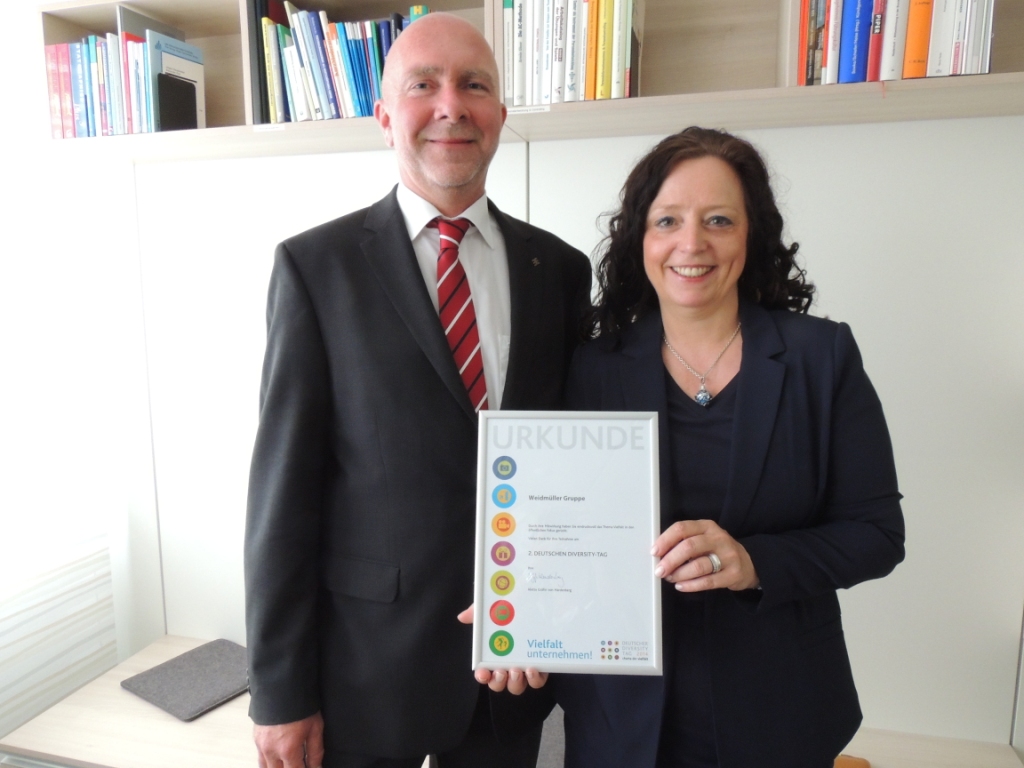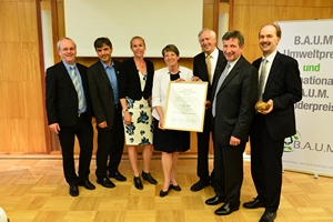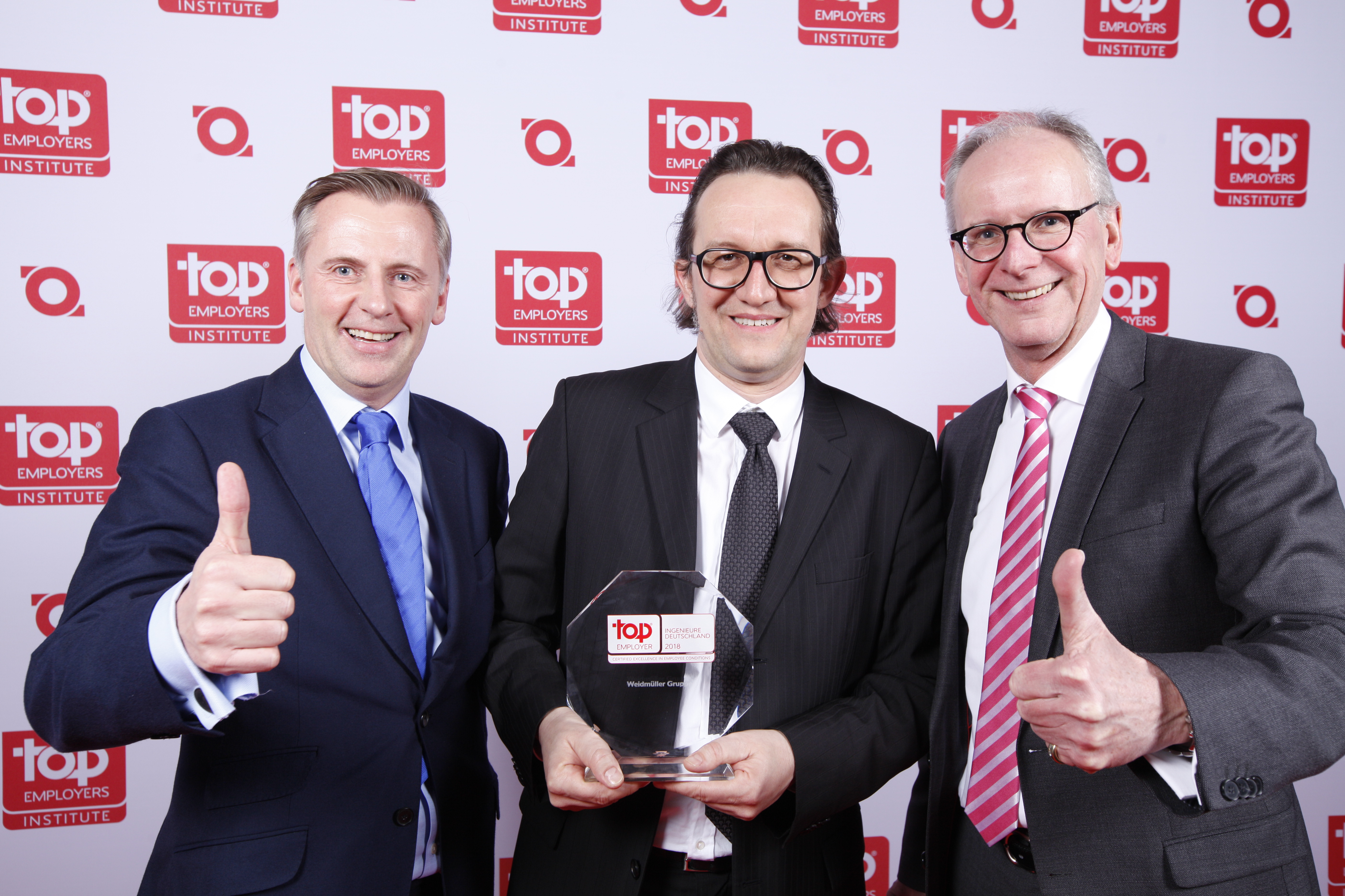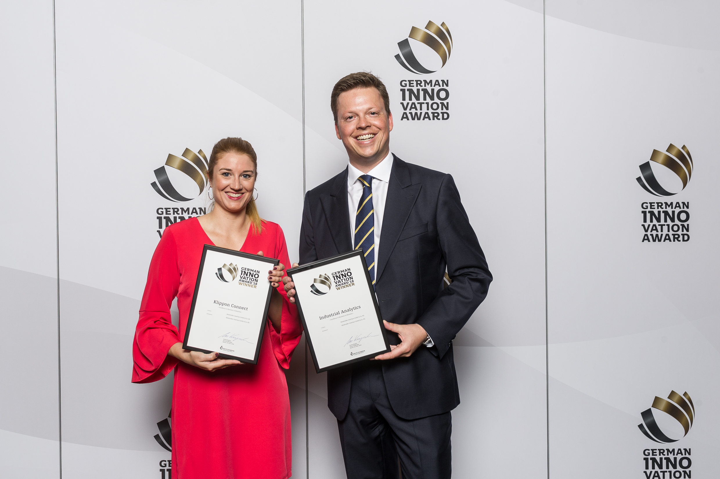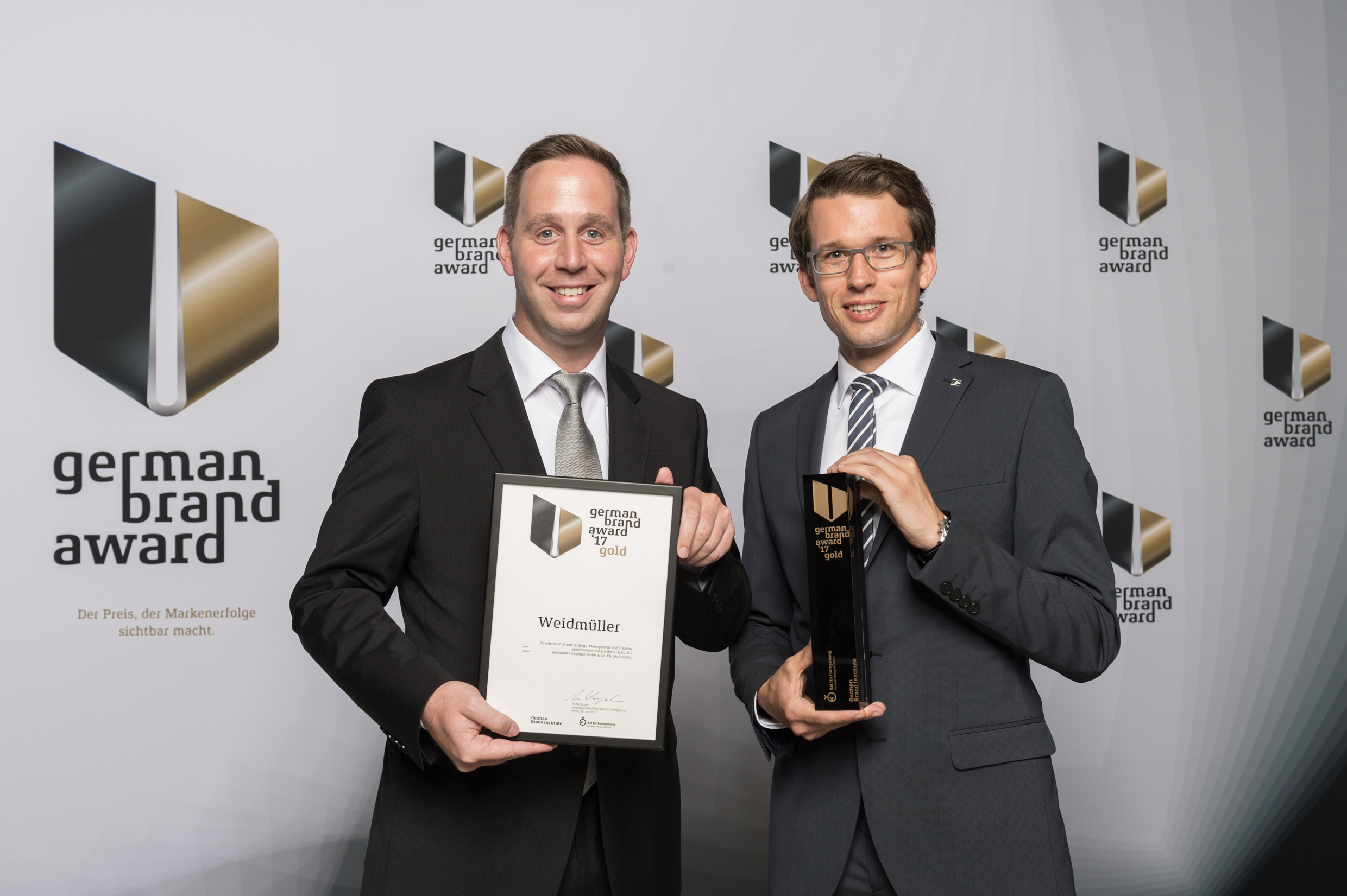 Jose Carlos Alvarez Tobar, Chief Marketing & Sales Officer; Dr. Timo Berger, Managing Director / Executive Vice President Region CE; Franziska Klein, Marketing Distribution; Roger Kroon, Vice President Global Distribution Management; Berndt van Nüss, Manager Catalogue, Online- and Tools Distributors von Weidmüller und Pirjo Niemi, VP Strategic Marketing, B2B Europe, Andreas Lippert, Vice President, B2B DACH; Michael Schlagenhaufer von Conrad Electronic bei der Übergabe des Awards
