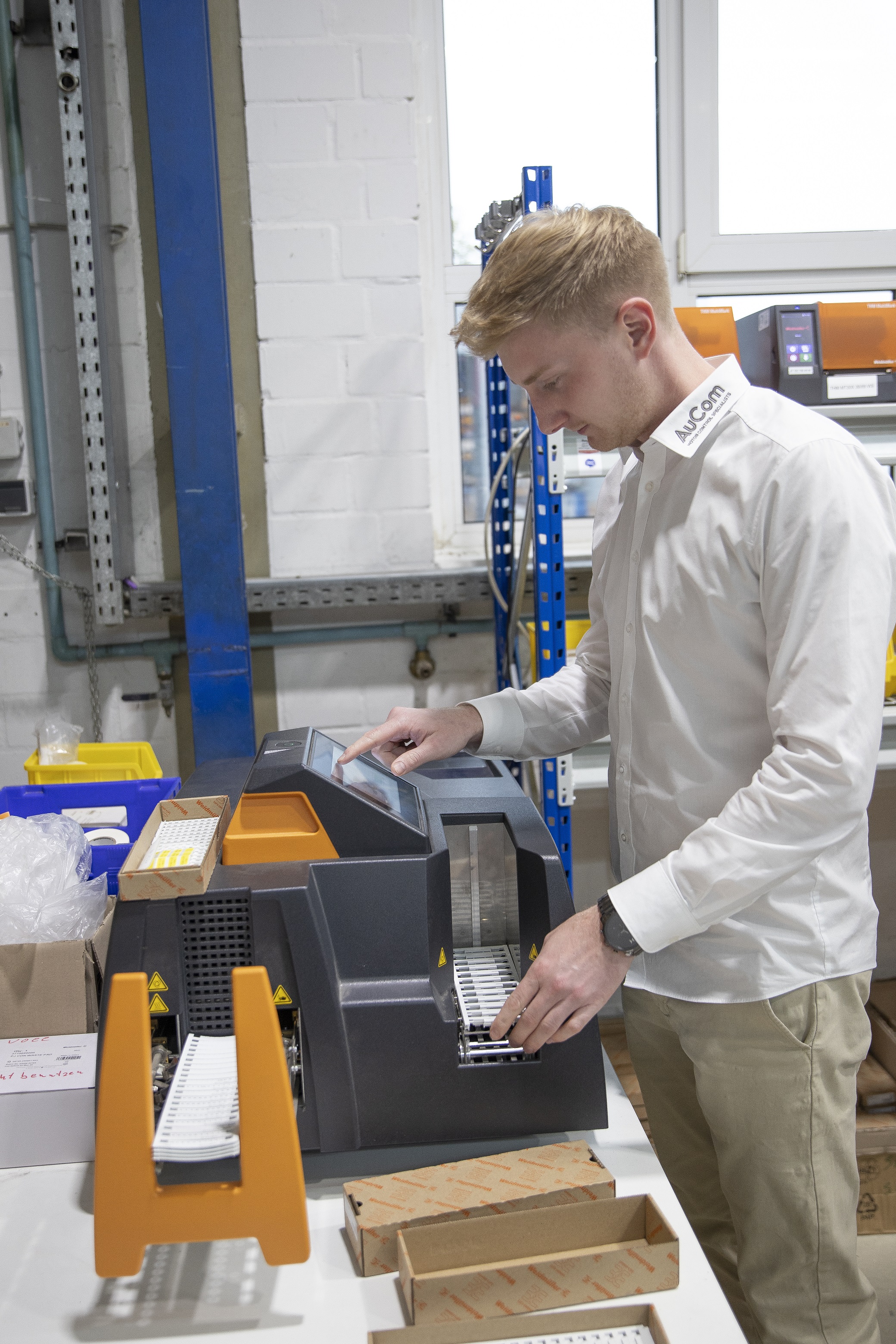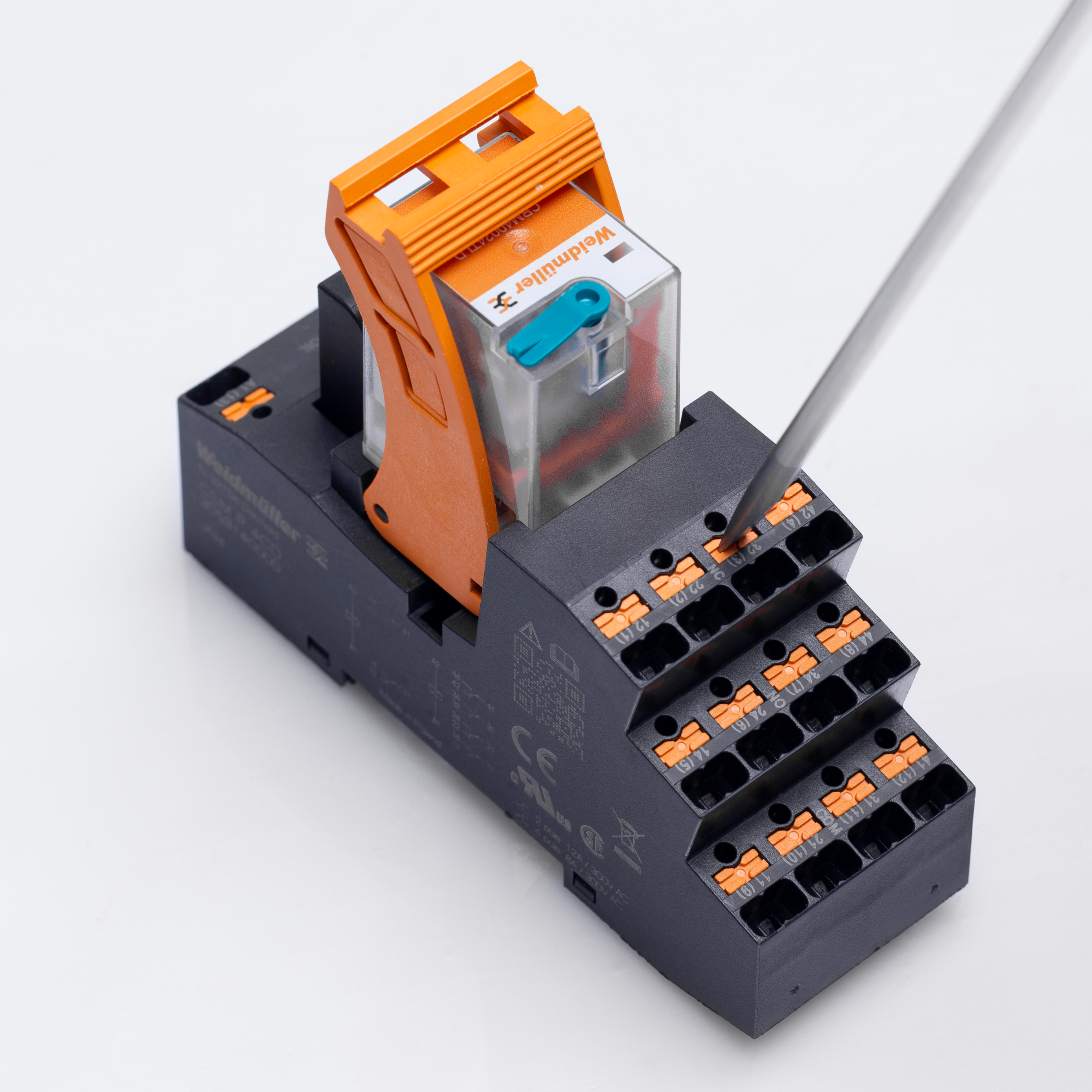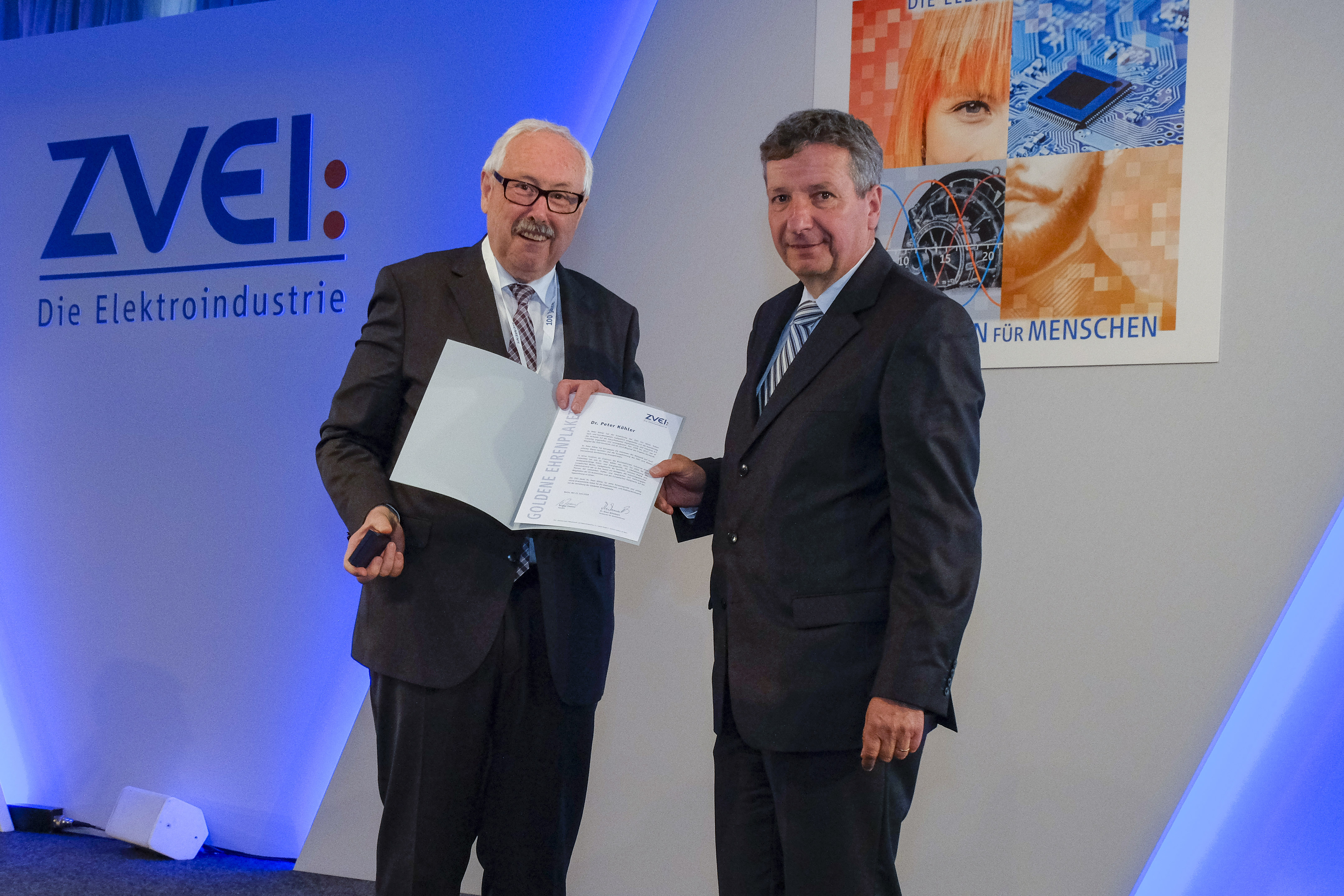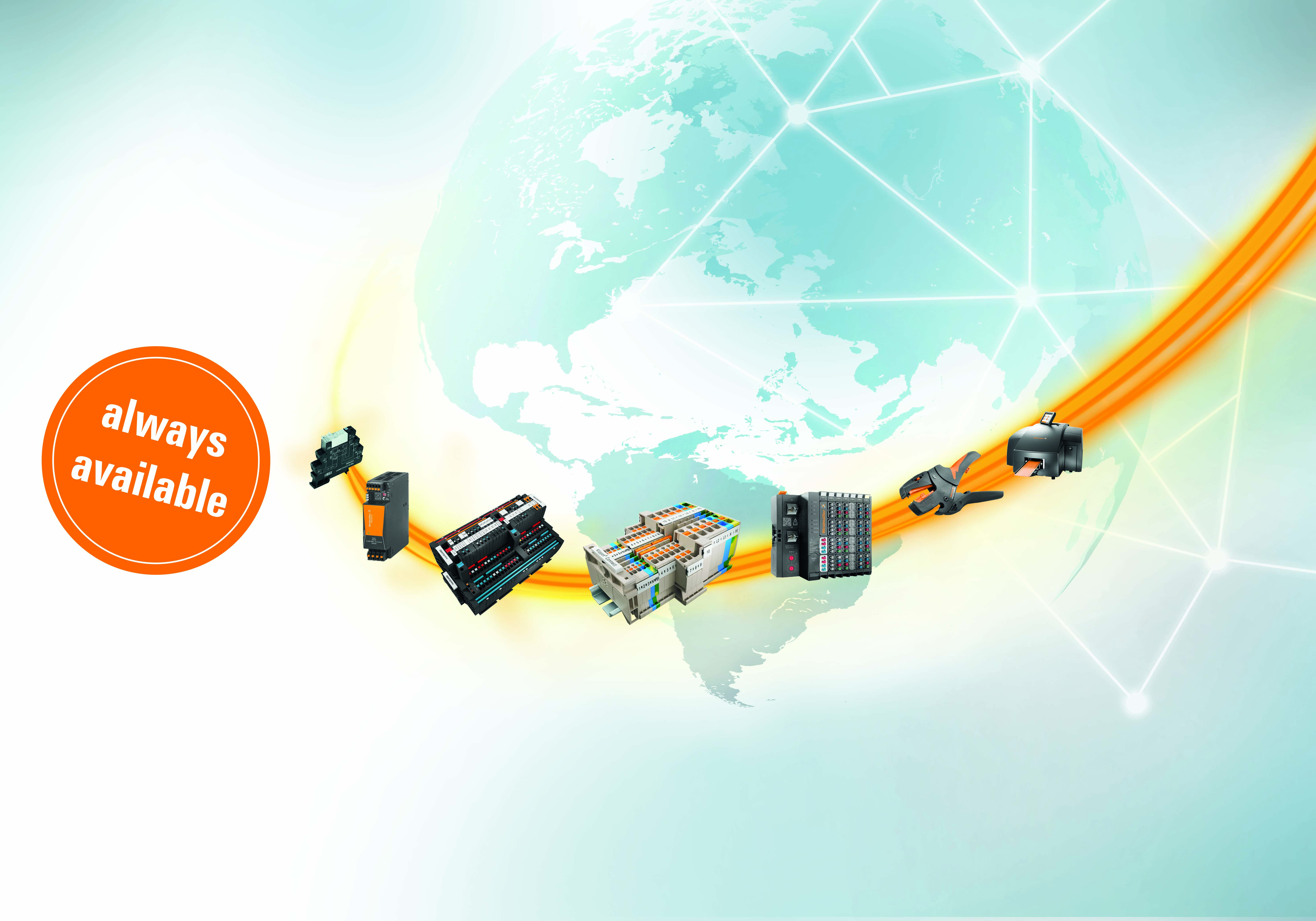 Jose Carlos Alvarez Tobar, Chief Marketing & Sales Officer; Dr. Timo Berger, Managing Director / Executive Vice President Region CE; Franziska Klein, Marketing Distribution; Roger Kroon, Vice President Global Distribution Management; Berndt van Nüss, Manager Catalogue, Online- and Tools Distributors von Weidmüller und Pirjo Niemi, VP Strategic Marketing, B2B Europe, Andreas Lippert, Vice President, B2B DACH; Michael Schlagenhaufer von Conrad Electronic bei der Übergabe des Awards