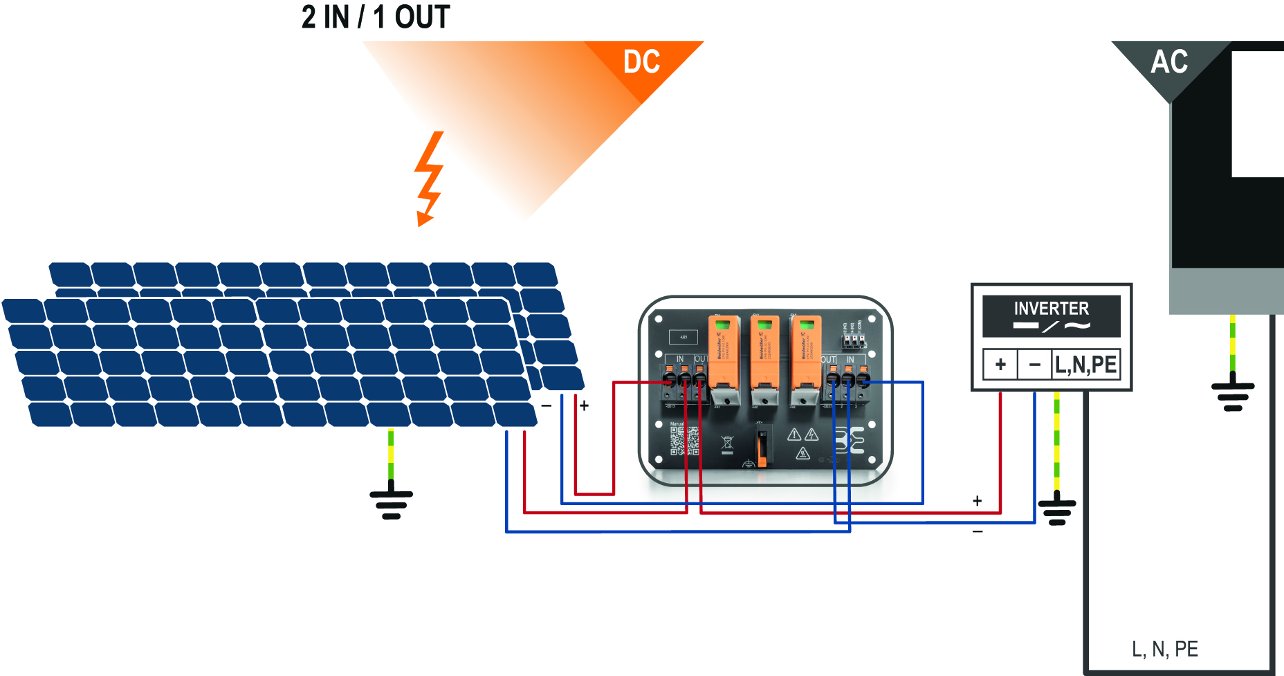 Der Wirkungsgrad einer PV-Anlage hängt von vielen Faktoren ab. In Wechselrichtern integrierte MPP-Tracker sorgen dafür, dass die Leistung der Solarmodule, optimal auf den aktuellen Strahlungs- und Temperaturzustand der Umgebung abgestimmt wird. Der MPP-Tracker finden den Punkt mit dem besten Wirkungsgrad und der optimalen Leistungsausbeute. PV Next „Mini“ steht in der Version mit zwei Eingängen und einem Ausgang pro MPPT zur Verfügung. Dabei haben die Anwender die Wahl zwischen den fertig verdrahteten Boxen mit WM4C Steckverbindern als einfach Plug & Play Lösung oder dem Generatoranschlusskasten mit Kabelverschraubungen zum Selbstverdrahten mit PUSH IN-Anschlusstechnologie. Die Installation ist aufgrund der integrierten PUSH IN-Anschlusstechnik besonders einfach und komfortabel, denn sie erfordert kein spezielles Werkzeug. Das reduziert die Arbeitsschritte, vermeidet Anschlussfehler und verkürzt die Montagezeit erheblich. Generatoranschlusskästen der Serie PV Next „Mini“ wurden speziell für enge Umgebungen konzipiert. Das standardisierte, äußerst kompakte Design der Produktreihe ermöglicht eine optimale thermische und mechanische Funktionalität aller integrierten Komponenten. Die Boxen sind für Umgebungstemperaturen von -40 bis zu 50 °C ausgelegt und entsprechen den Vorgaben gemäß IEC 61439-2 ed2. Sie sind geeignet für den Einsatz von Strings mit bis zu 15A und bis 1100V. PV Next „Mini“ gliedert sich nahtlos in das Gesamtportfolio der Generatoranschlusskästen ein. Basierend auf dem standardisierten Design von PV Next wird eine Vielzahl heutiger Anforderungen an Generatoranschlusskästen abgedeckt. Mehr als 70 Varianten, die sich leicht handhaben und skalieren lassen, schaffen ein neues Maß an Flexibilität. Kurze Transportwege durch zwei Produktionsstandorte in Europa, kostenoptimierte Serienproduktion und die Nutzung hochwertiger Einzelkomponenten garantieren nicht nur maximale Produktqualität, sondern auch kurzfristige Verfügbarkeit und kurze Transportwege.