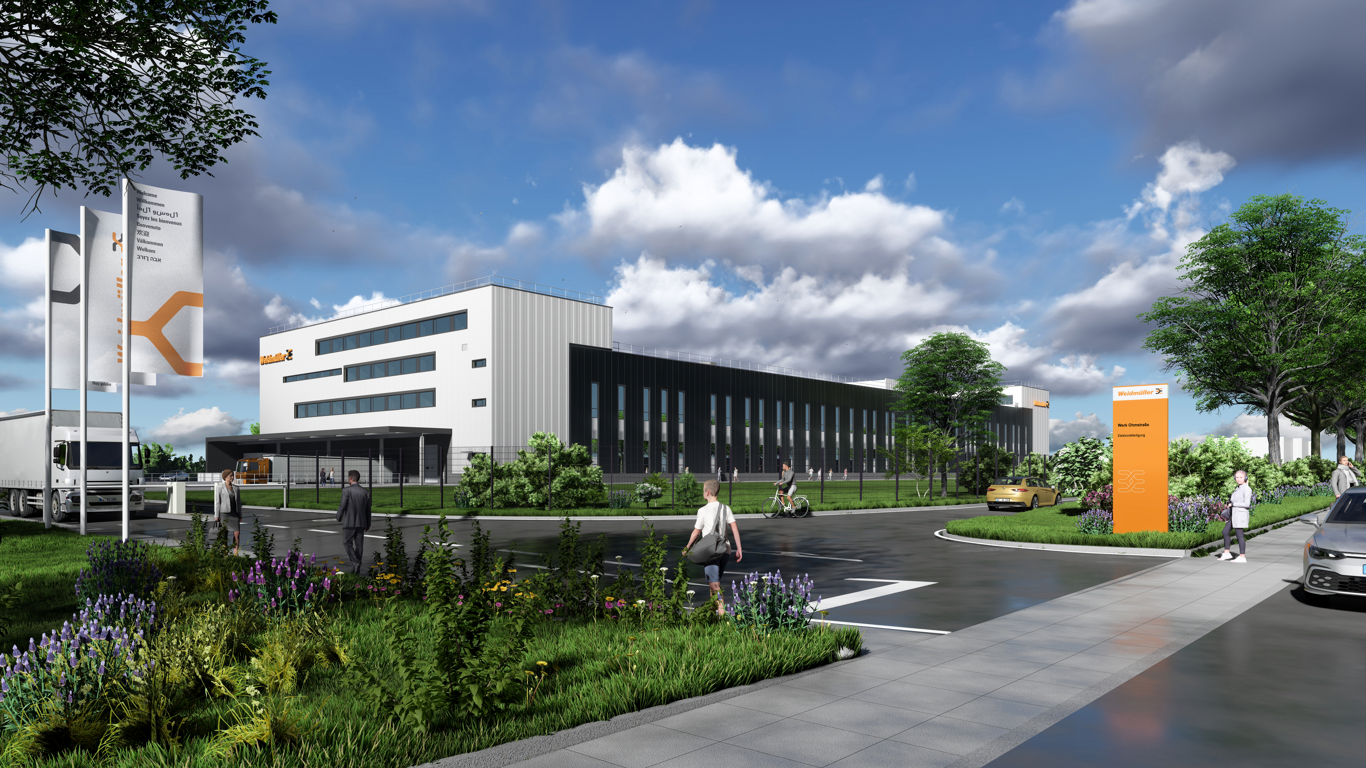 Im neuen Fertigungsgebäude der Firma Weidmüller werden die Leiterplattenbestückung, die Montage, die Kunststofffertigung sowie logistische Prozesse untergebracht. Insgesamt investiert Weidmüller über einen Zeitraum von drei Jahren ca. 60 Millionen Euro in das Projekt.