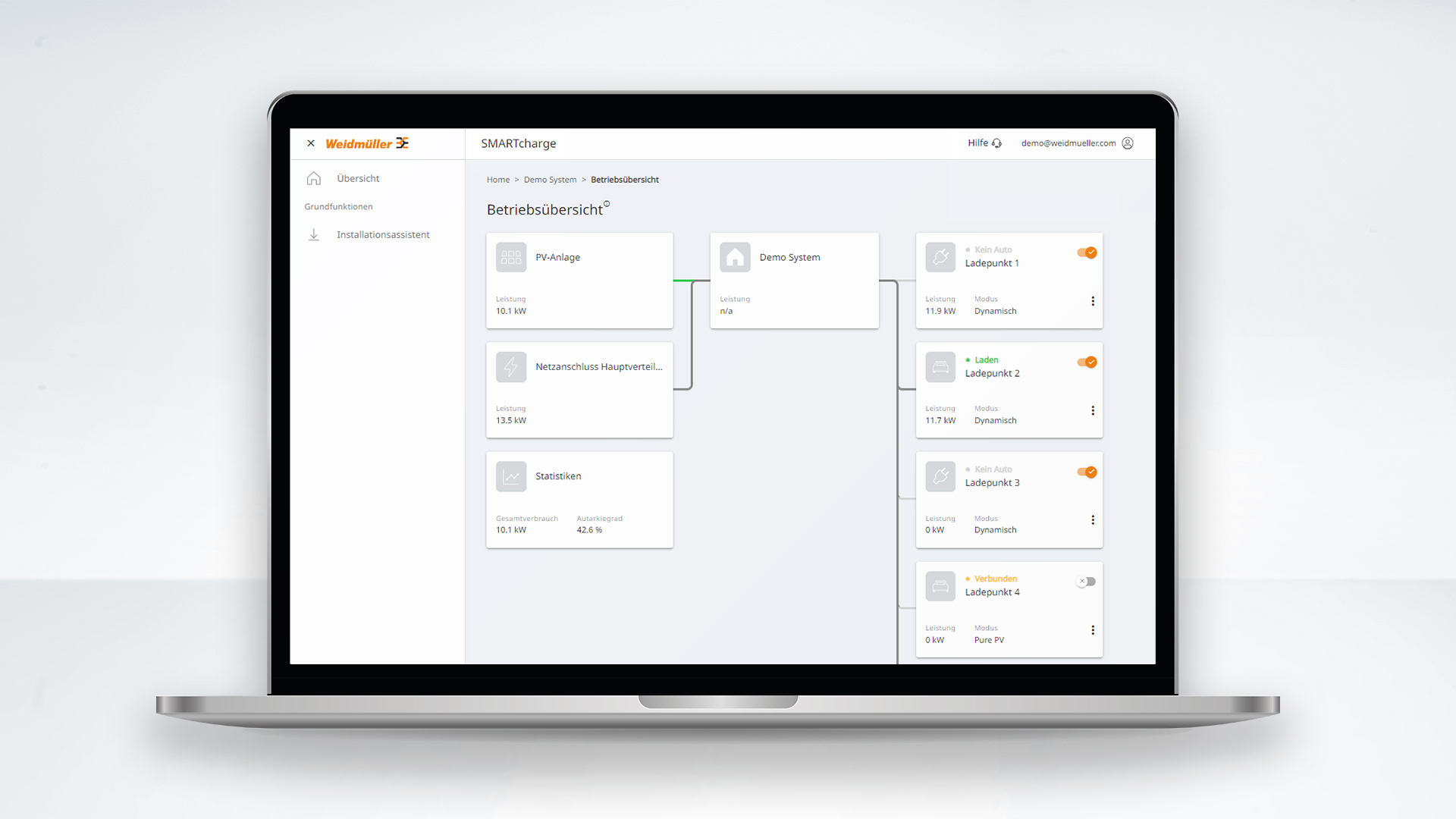 Die effiziente Nutzung und Verteilung von verfügbarem Strom sind das A und O für die Energieversorgung der Zukunft. Der Erfolg der Elektromobilität sowie der schnelle Fortschritt der Energiewende hängen entscheidend davon ab. Mit dem intelligenten Lastmanagementsystem SMARTcharge liefert Weidmüller jetzt einen wichtigen Baustein für moderne Gebäudeinfrastrukturen, der die Bedürfnisse des Marktes und der Kunden von heute optimal erfüllt: leistungsstark, effizient und besonders nutzerfreundlich.