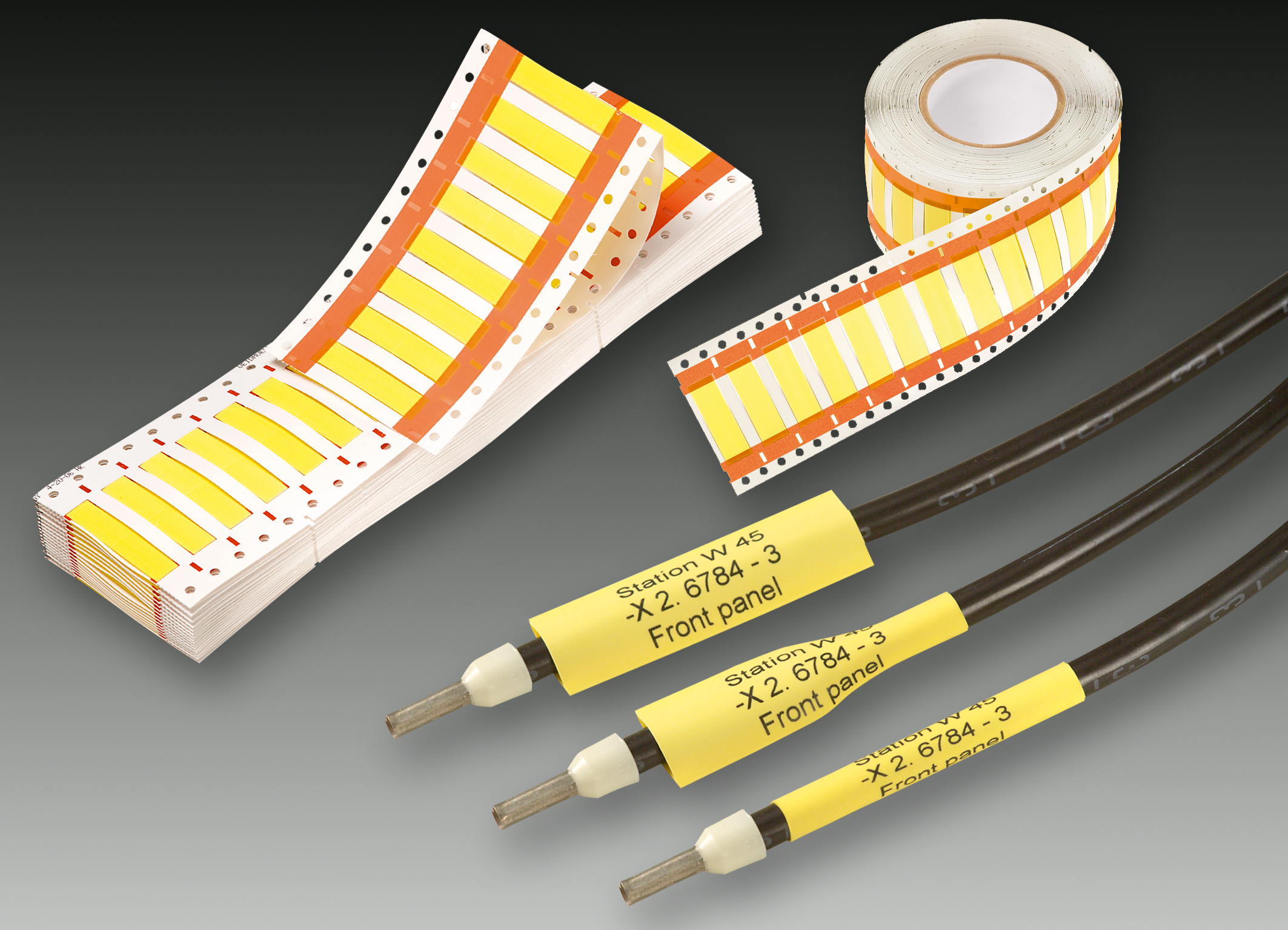 TwinMark nennt Weidmüller seine Wärmeschrumpfenden Schläuche zur Kennzeichnung von Leitern und Kabeln. Die zweiseitig bedruckbaren Schrumpfschläuche HSS (heat shrinkable sleeve) dienen der Kennzeichnung und Isolierung von Leitern und Kabeln von 1,2 bis 24 mm Durchmesser. Zwei Varianten sind verfügbar: Standard und halogenfrei. Die Standard-Varianten sind in gelber und weißer Farbe ausgeführt. Sie zeichnen sich durch ihre Leporello-Faltung aus und sind in kleinen Verpackungseinheiten lieferbar. Bei der Leporello-Faltung lassen sich die bedruckten Markierer wieder zu einem handlichen, kleinen Paket zusammenlegen. Die halogenfreie (nach DIN VDE 0472-815), gelbe Variante steht als Rolle zur Verfügung und wird in größeren Verpackungseinheiten geliefert. Die Standard-Variante kommt vorzugsweise im Steuerungs-, Maschinen- und Anlagenbau zum Einsatz, die halogenfreie Variante ist auf die Anforderungen in der Verkehrstechnik abgestimmt. Nur Schrumpfschläuche lassen sich beidseitig bedrucken. Auf der Vorder- und Rückseite können die gleichen bzw. auch unterschiedliche Daten aufgedruckt werden. Die Informationen sind so aus jeder Richtung leicht ablesbar.