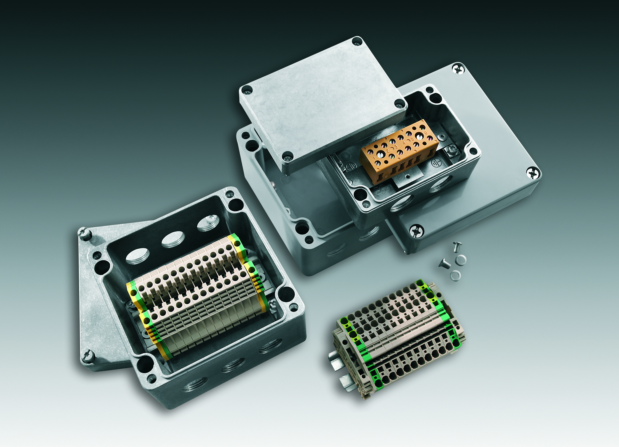 Für explosionsgefährdete Bereiche hingegen bietet Weidmüller geprüfte, mit Klemmenleisten bestückte Verteilergehäuse mit Gewindebohrungen an, die mit einer entsprechenden ATEX-Zertifizierung ausgeliefert werden. Optimale Lösungen via Katalog sparen Zeit und Kosten beim Bestellen gleichwie bei der Projektierung, außerdem verkürzen ab Lager abrufbare Waren die Lieferzeiten und sind insgesamt kosteneffizient ausgelegt.
