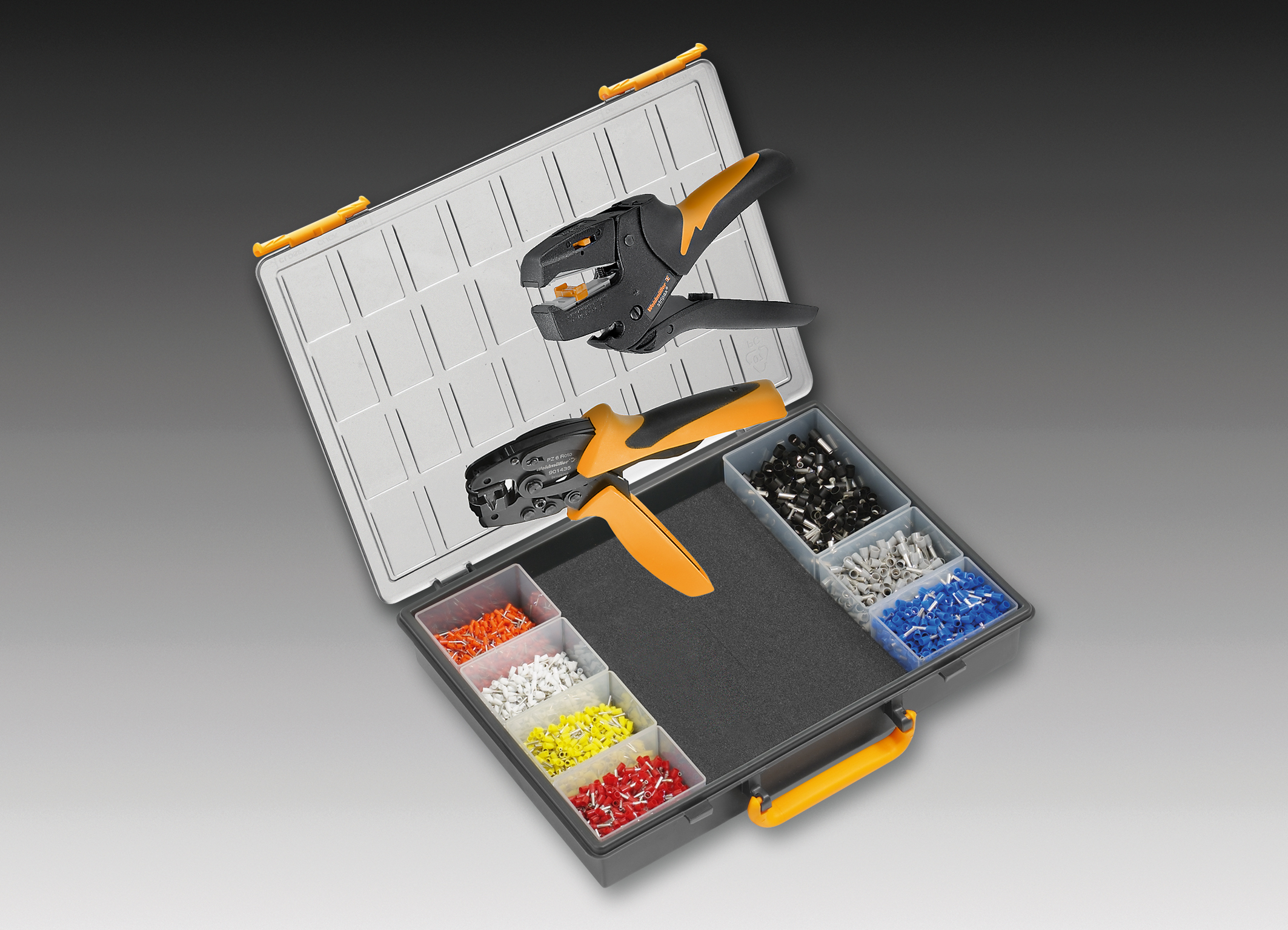 Weidmüller hält ein umfassendes Sortiment bereit: Es reicht von Aderendhülsen (nach DIN 46228 T, 1 und 4) mit und ohne Kunststoffkragen in den Leiter-Nennquerschnitten von 0,14 mm2 bis 50 mm2, Crimp-Sets oder Spezialwerkzeugen, über Abisolier- und Crimpautomaten bis hin zu Aderendhülsen-Boxen sowie farbig markierte Leerboxen.