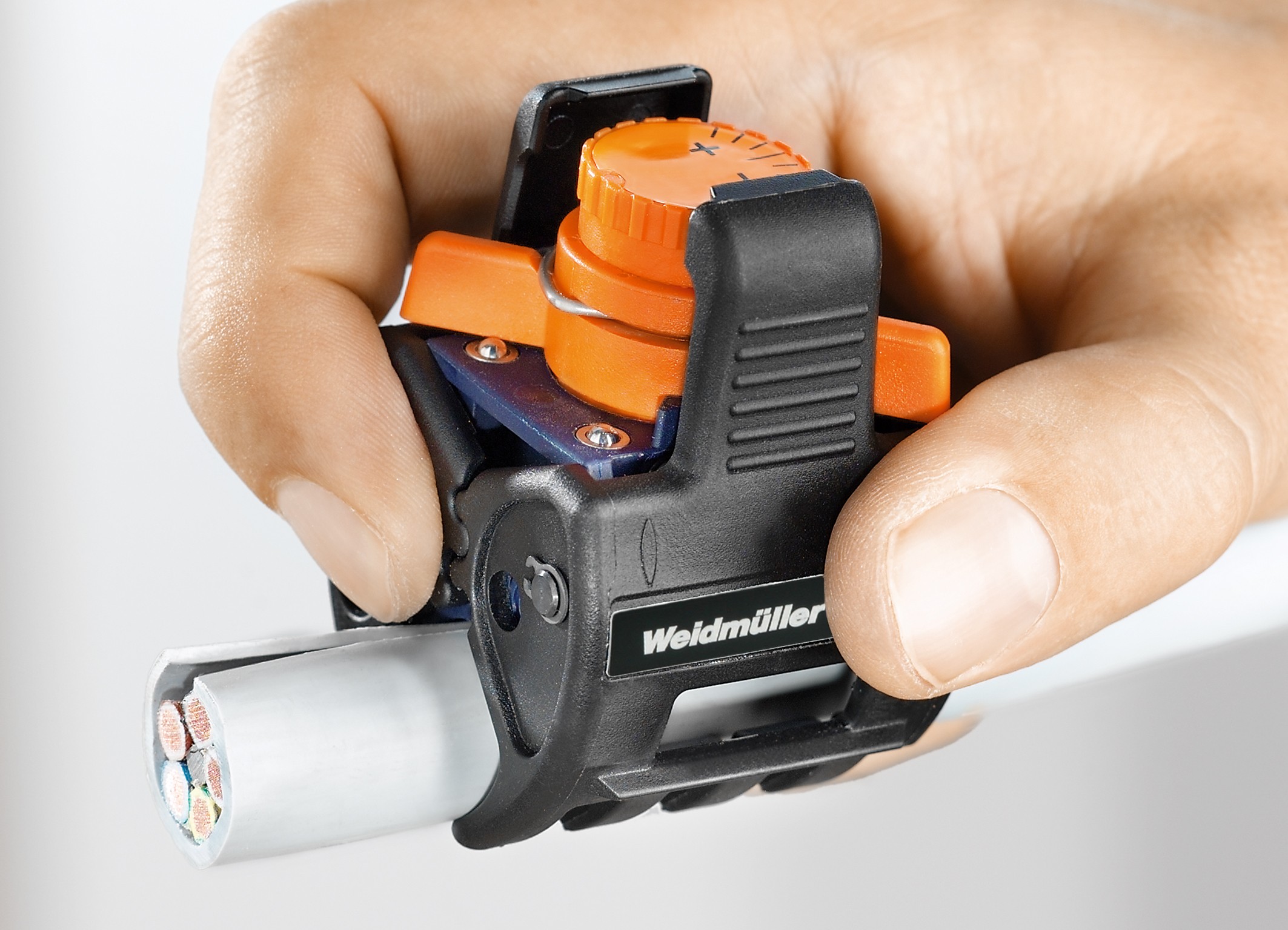 The space available in cable shafts, on cable trays, in cable ducts or in power distribution systems is generally quite cramped with manoeuvrability very restricted; that applies in particular when stripping the sheath from cables. The tools presently available on the market all require quite a large operating radius. That can lead to problems when stripping the cable sheath. For this reason, Weidmüller developed the new sheath stripping tools within its overall FieldPower® development concept - the models AM 16 and AMF 6/10.