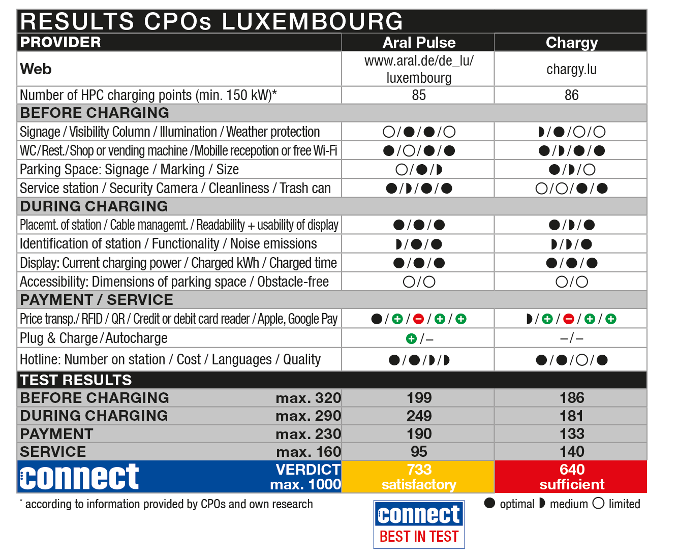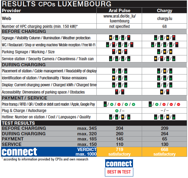 In Luxembourg, Aral Pulse came in first place, followed by Chargy in second place