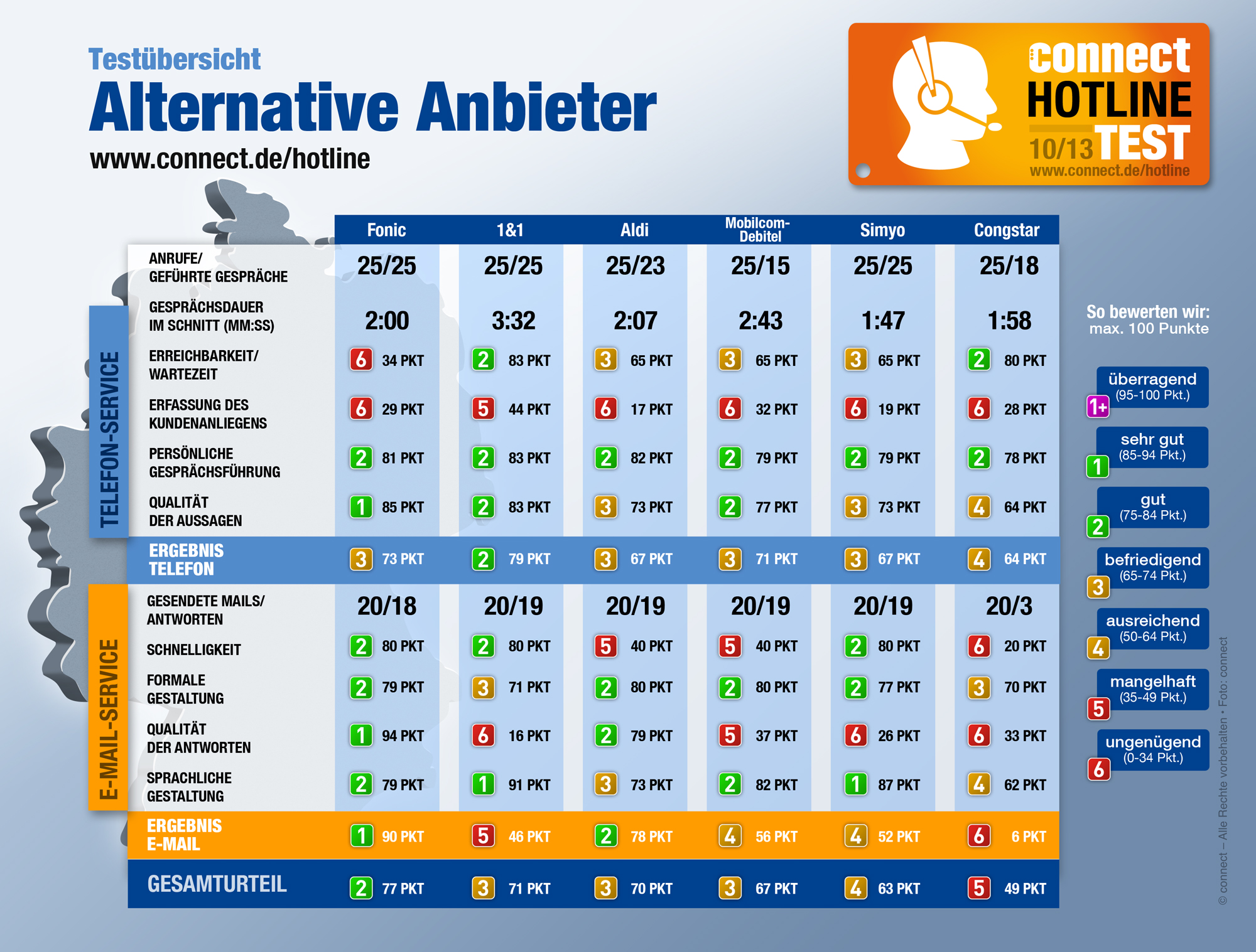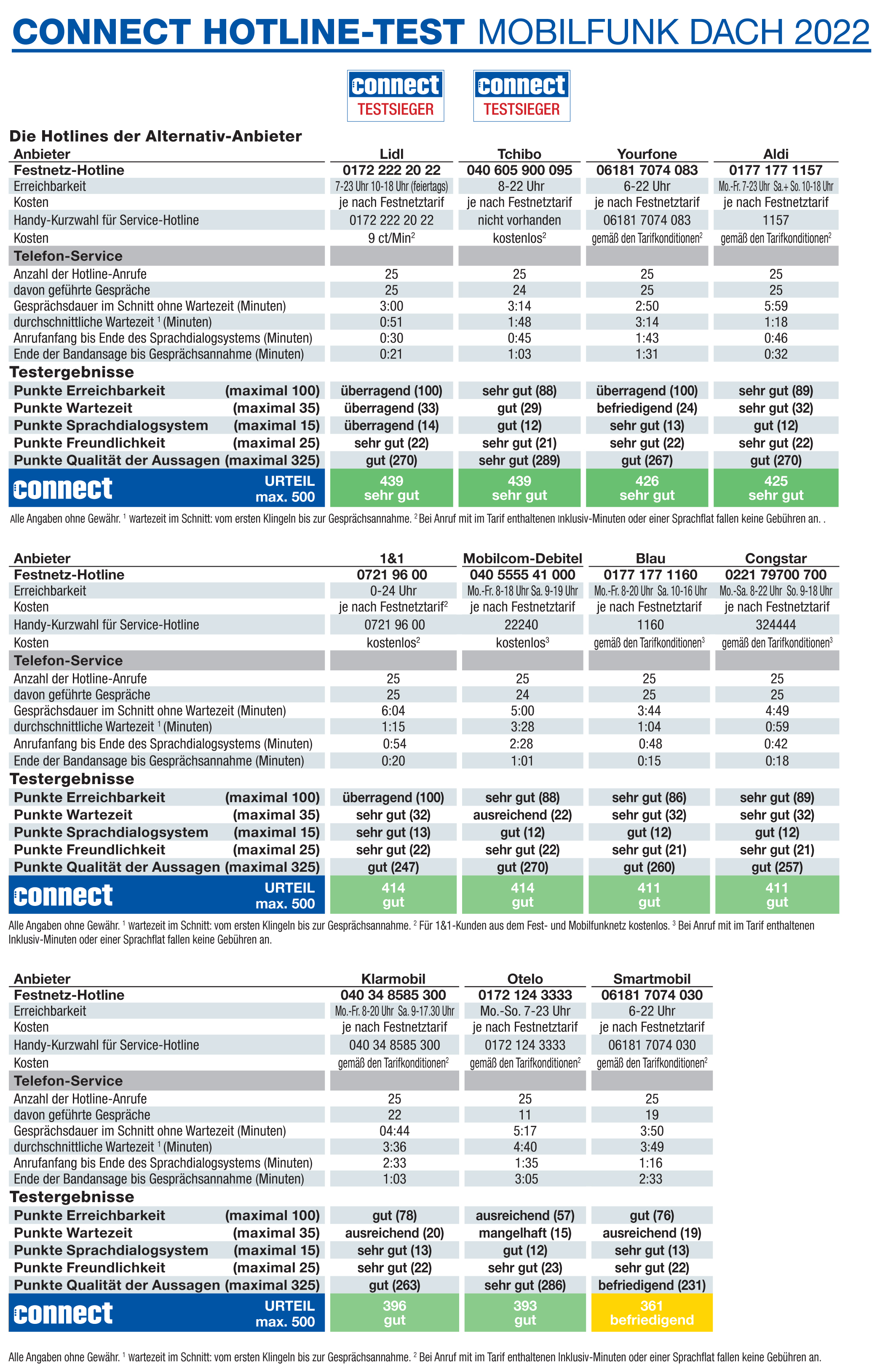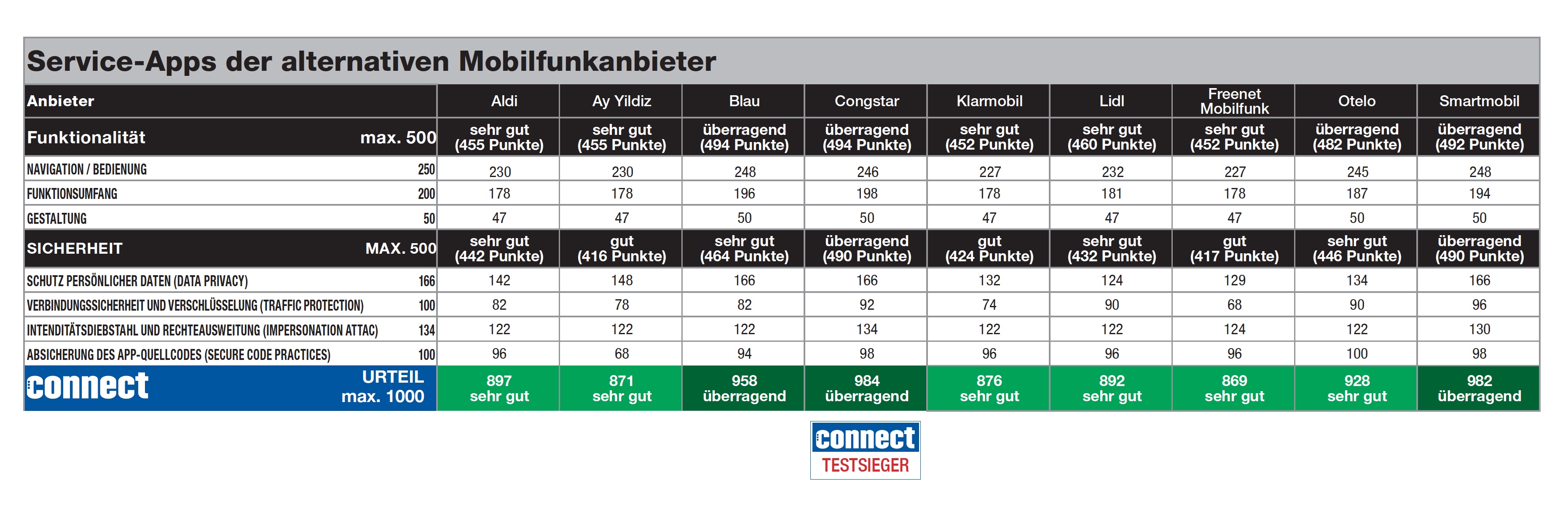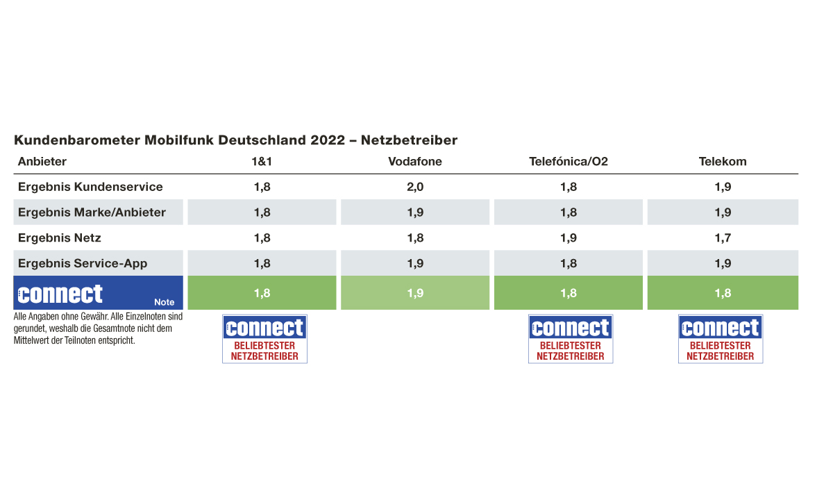 connect Service-Test Mobilfunk-Discounter: Platz 1 für Freenet, Platz 2 geht an Fraenk, Platz 3 an Ja Mobil.
