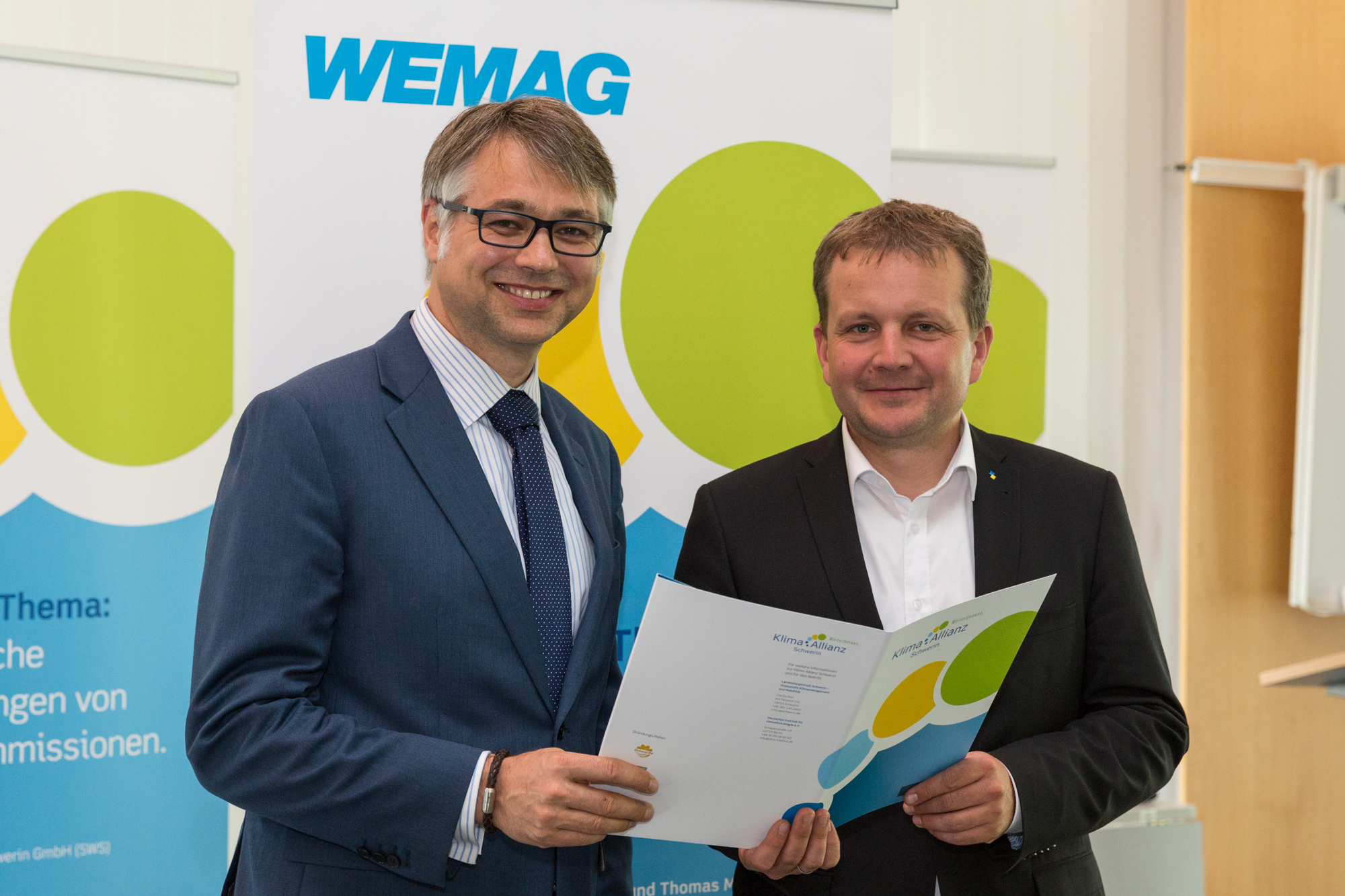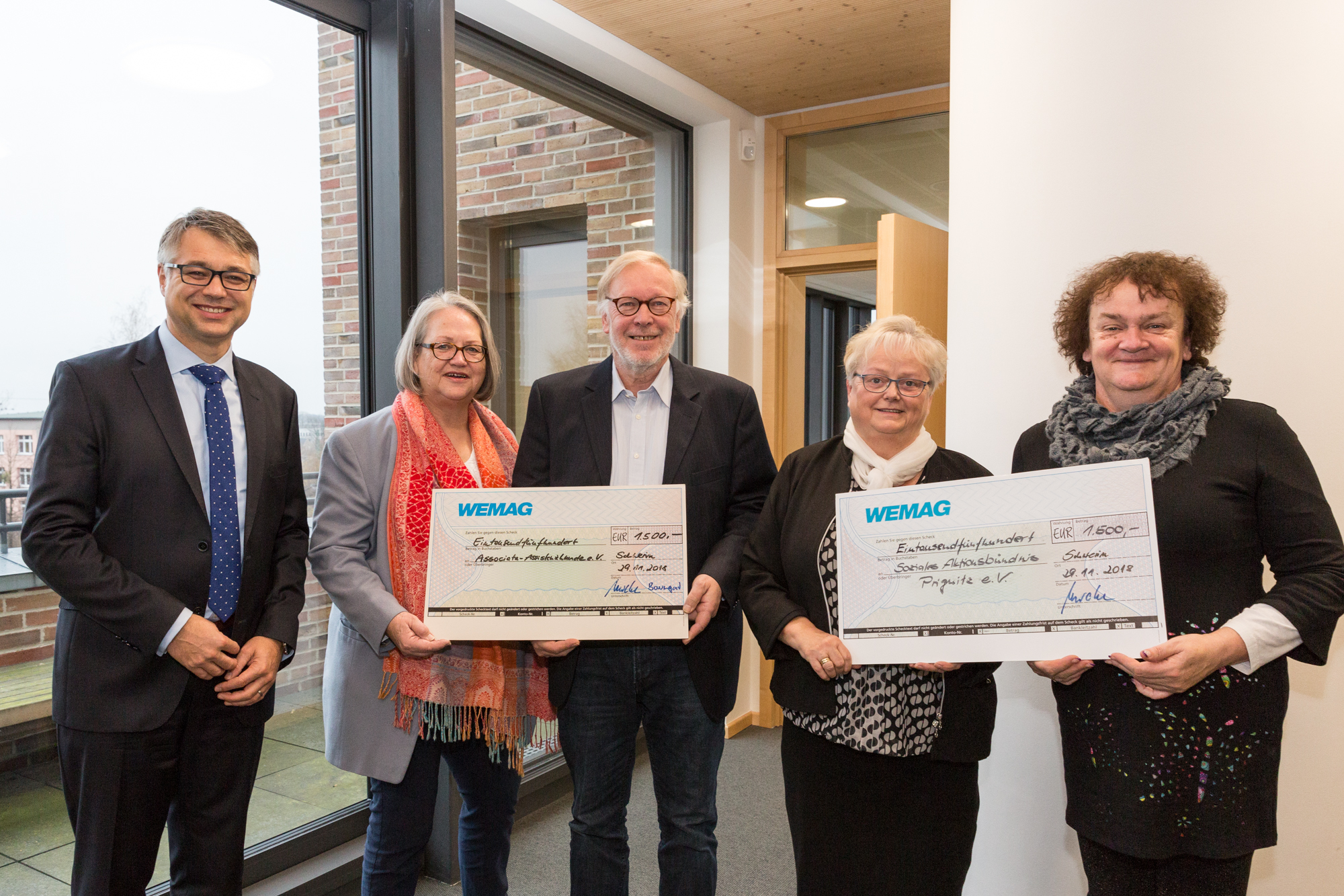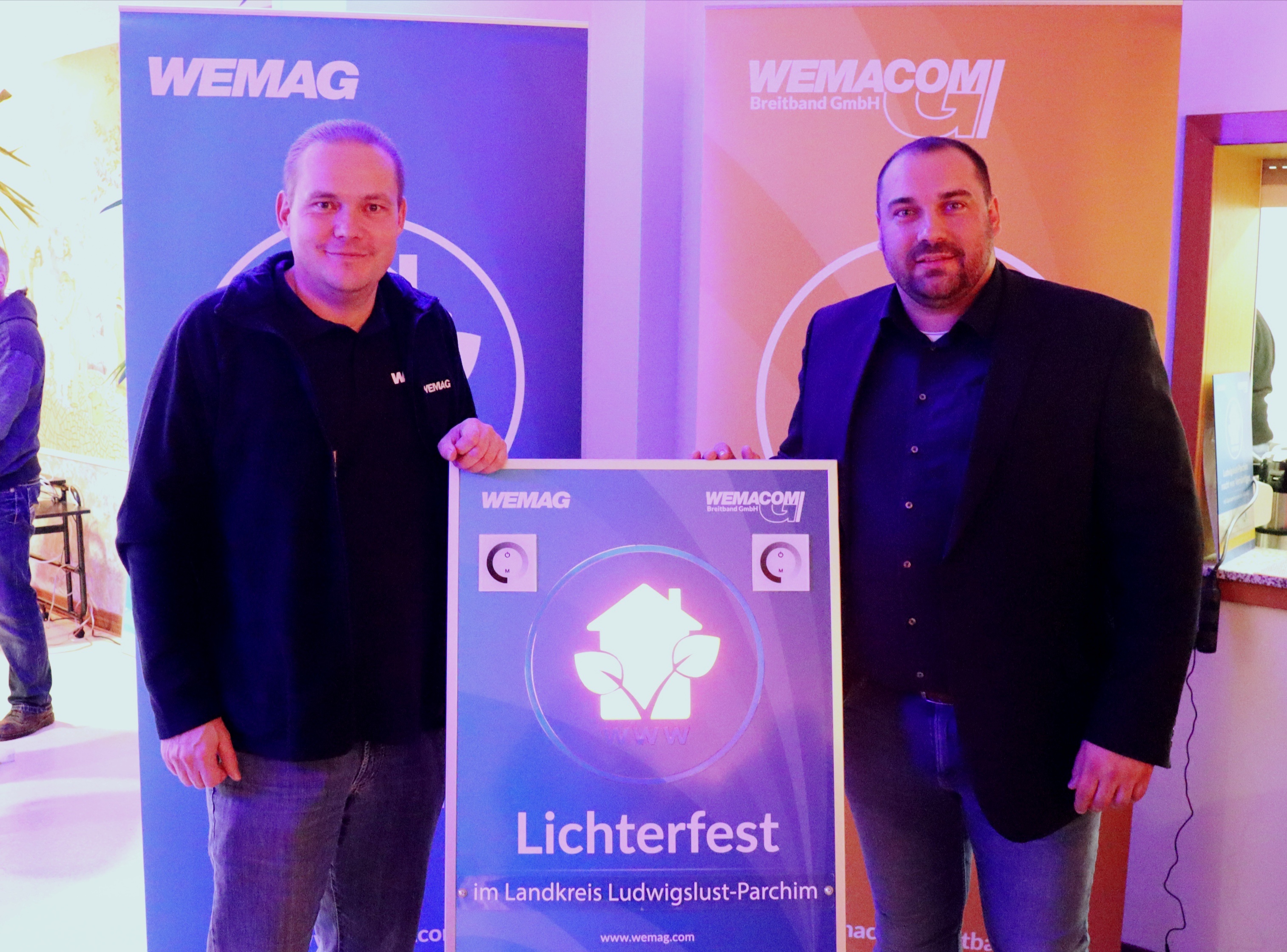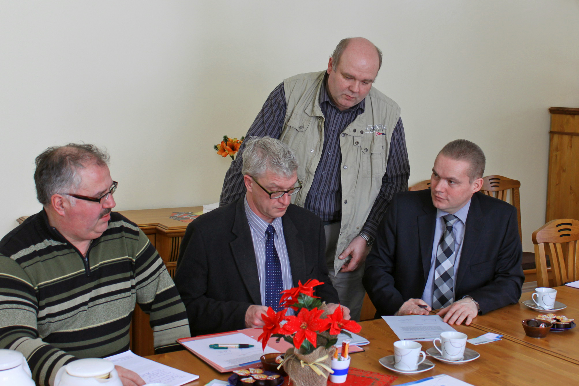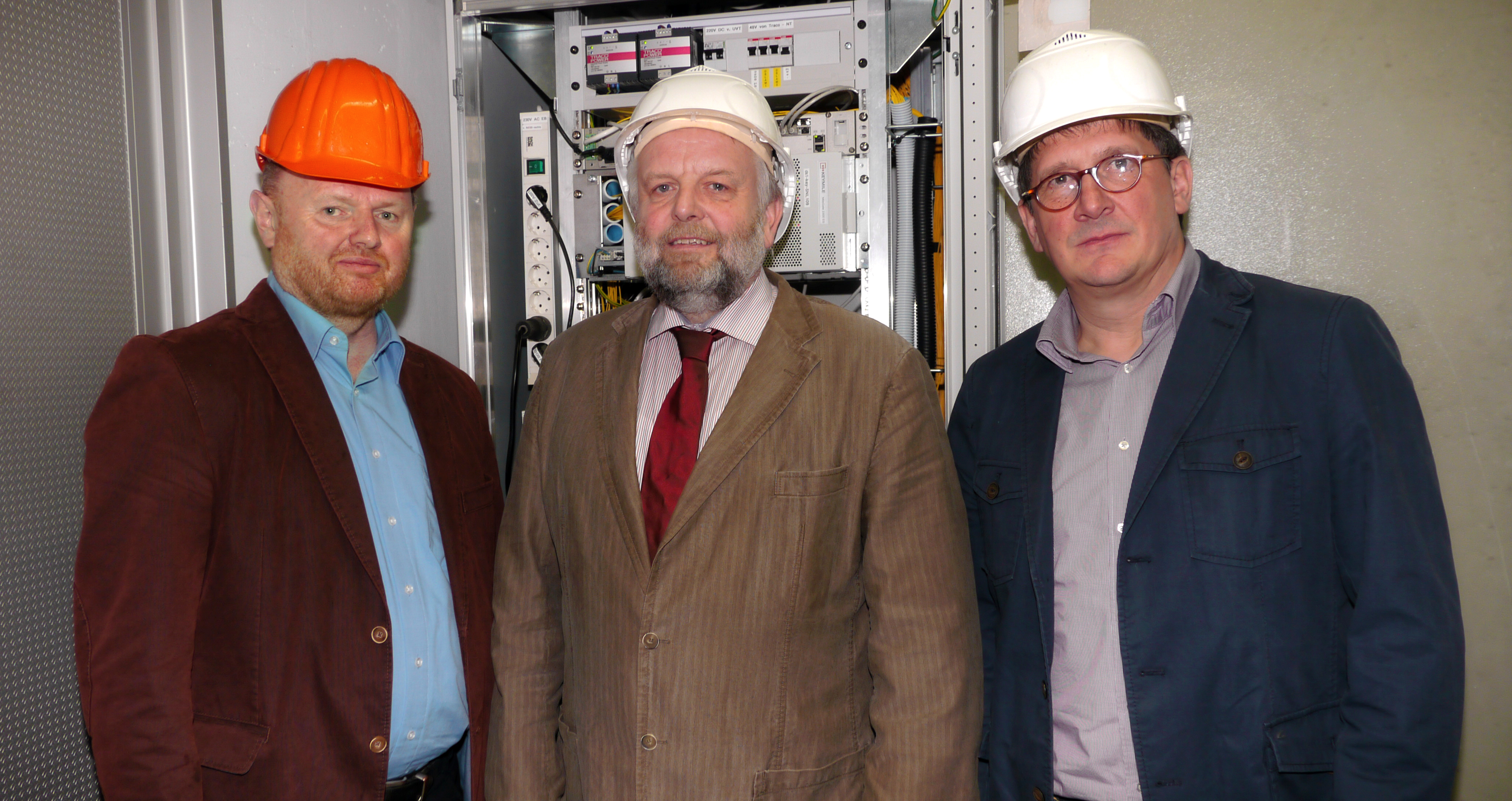 Kerstin Weiss, Landrätin des Landkreises Nordwestmecklenburg, Martin Retzlaff, kaufmännischer Programmleiter des Breitbandausbaus in der WEMAG-Unternehmensgruppe, Dr. Roland Finke, Leiter der Stabsstelle Wirtschaftsförderung, Regionalentwicklung und Planen, Michael Hillmann, Vertriebsleiter der WEMAG, Peter Schimanski, technischer Projektleiter des Breitbandausbaus in der WEMACOM (v.l.n.r.) beim Pressegespräch in Wismar. Foto: Landkreis Nordwestmecklenburg/ Eik Schäfer