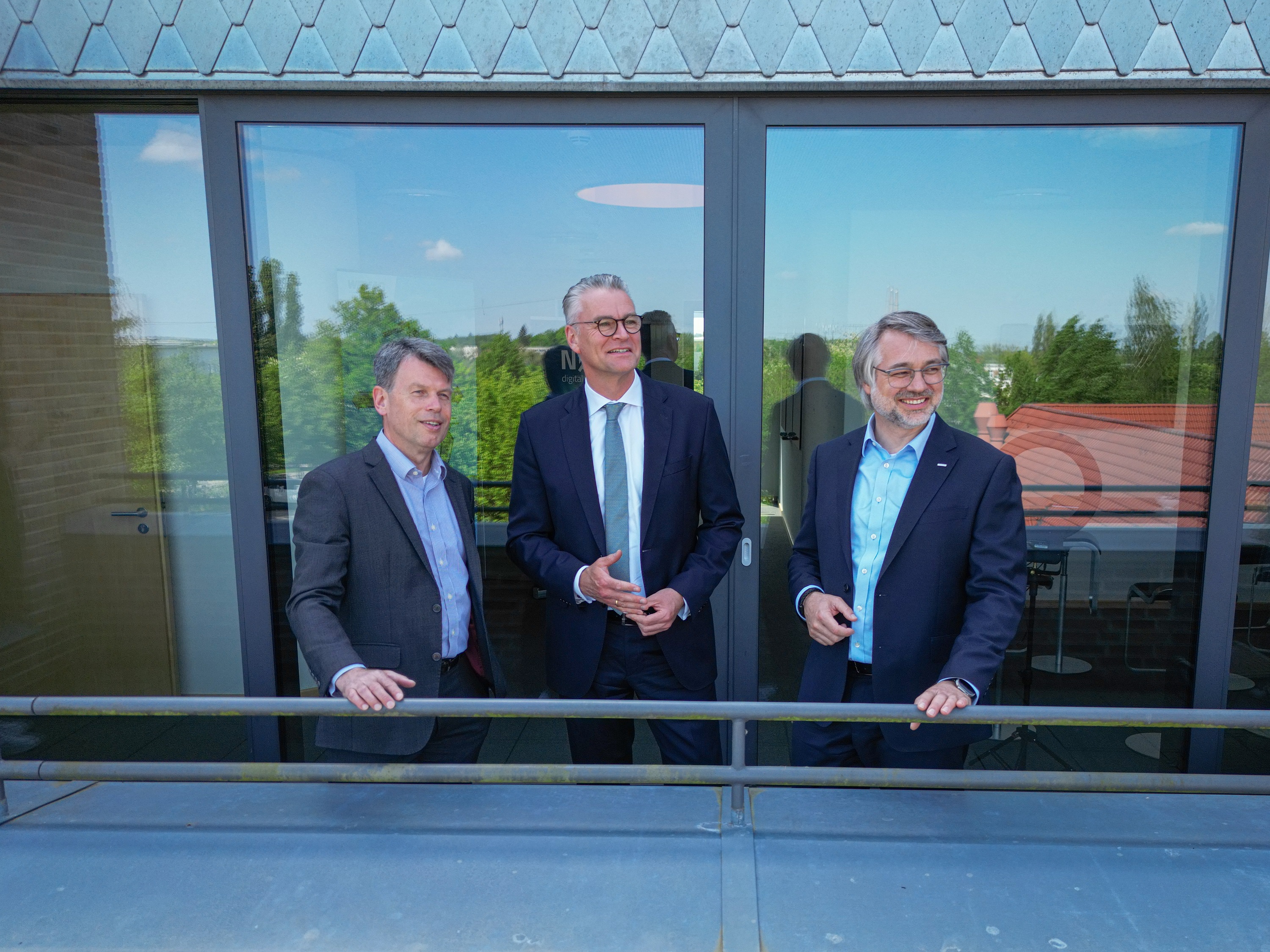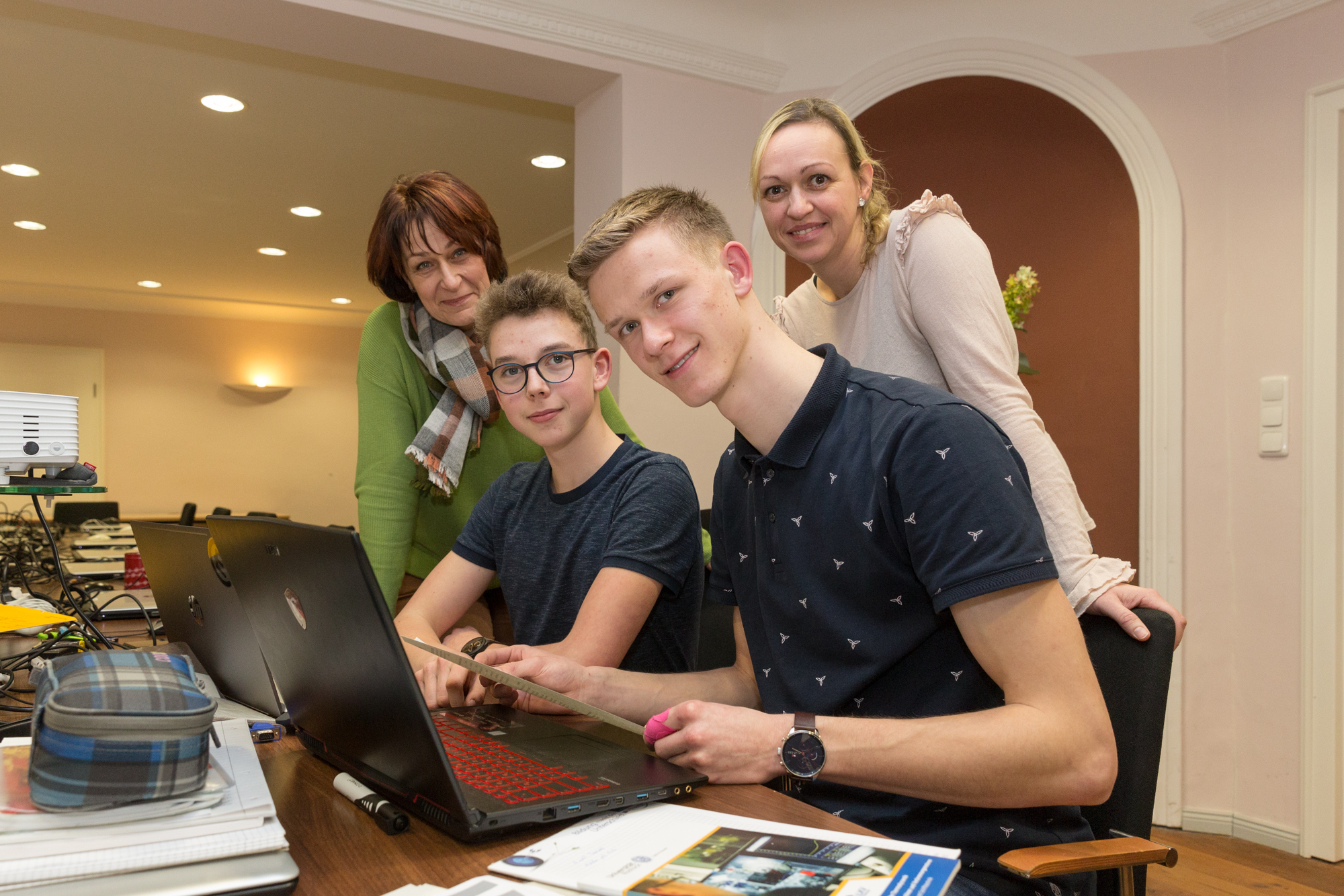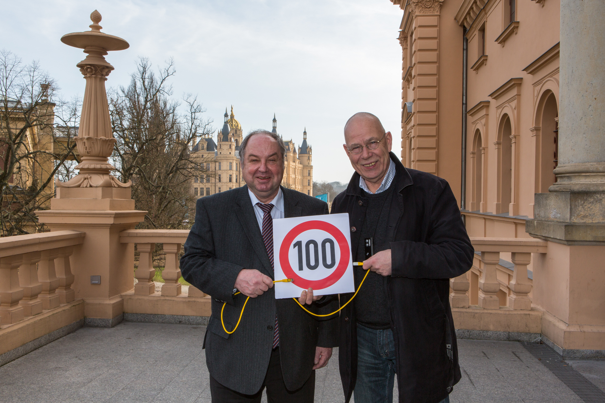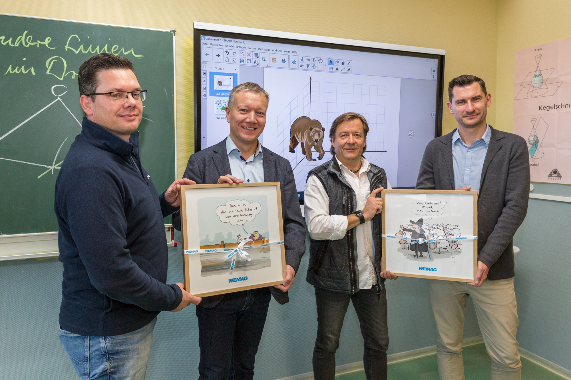Kerstin Weiss, Landrätin des Landkreises Nordwestmecklenburg, Martin Retzlaff, kaufmännischer Programmleiter des Breitbandausbaus in der WEMAG-Unternehmensgruppe, Dr. Roland Finke, Leiter der Stabsstelle Wirtschaftsförderung, Regionalentwicklung und Planen, Michael Hillmann, Vertriebsleiter der WEMAG, Peter Schimanski, technischer Projektleiter des Breitbandausbaus in der WEMACOM (v.l.n.r.) beim Pressegespräch in Wismar. Foto: Landkreis Nordwestmecklenburg/ Eik Schäfer