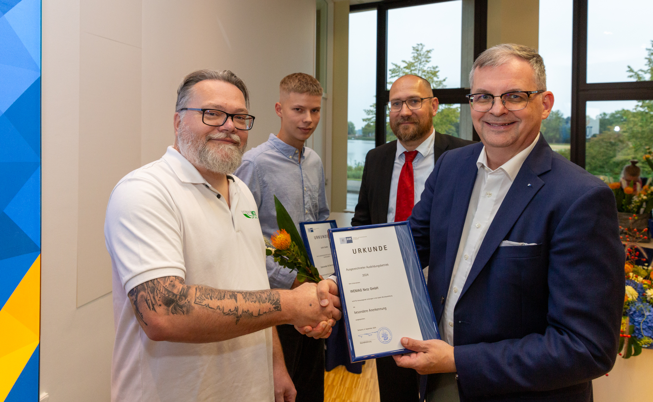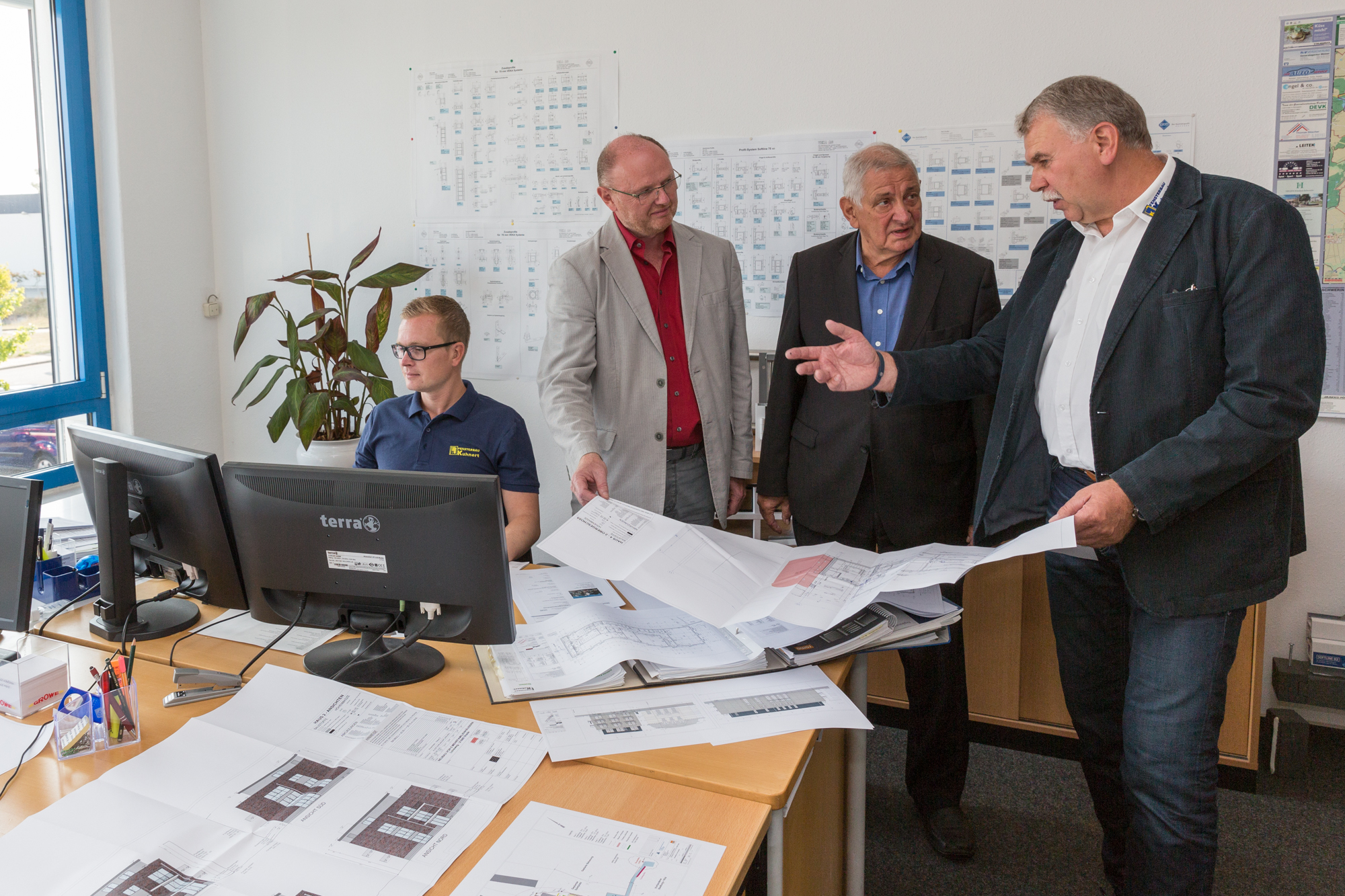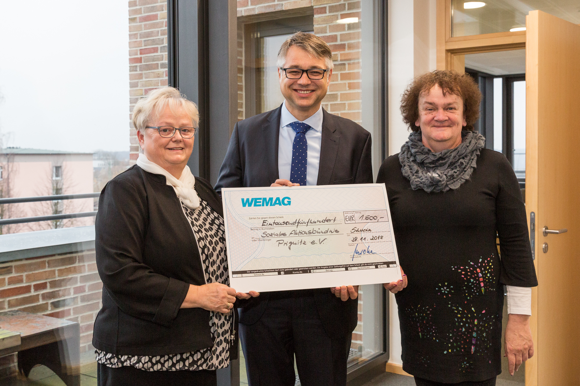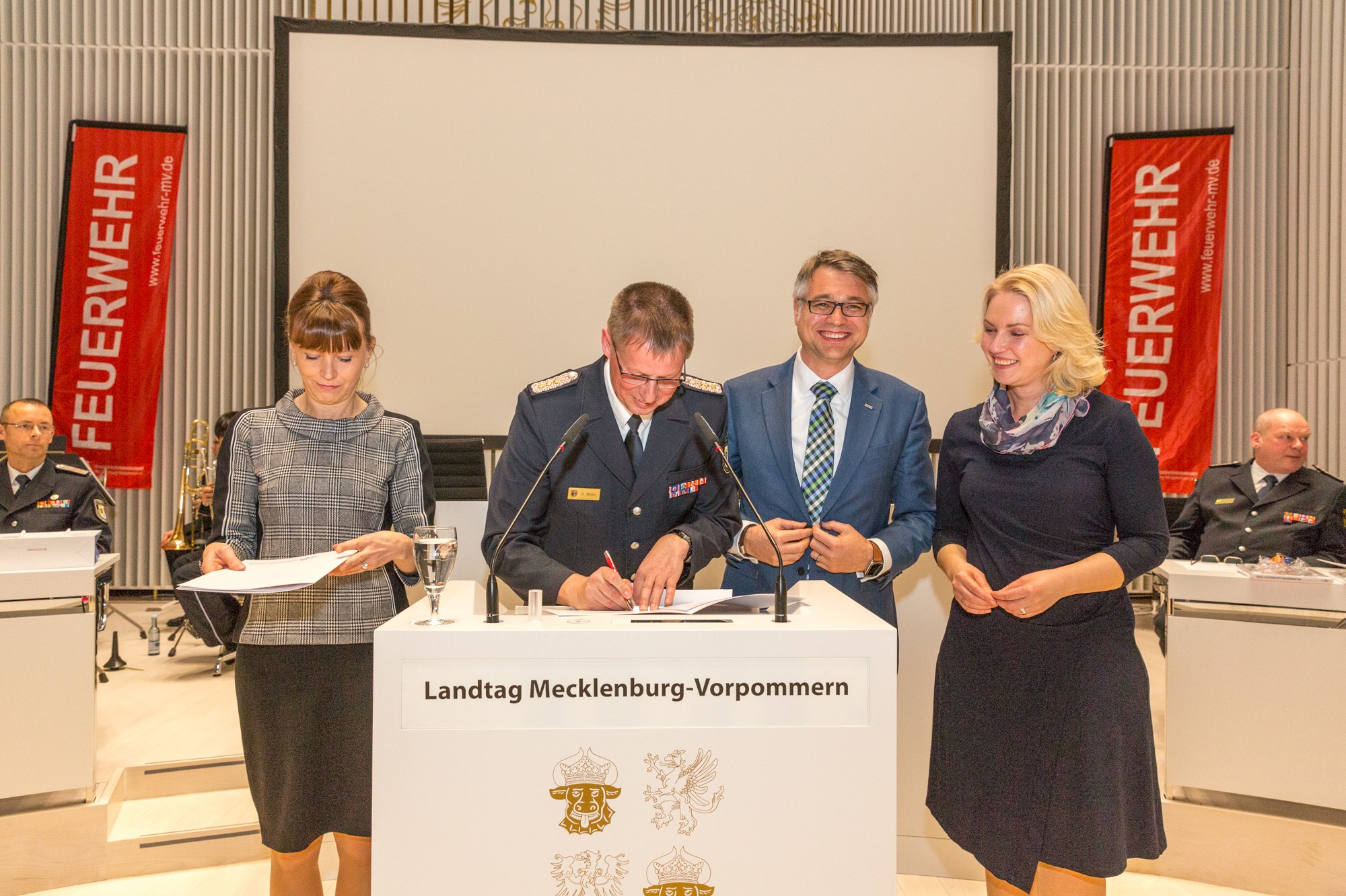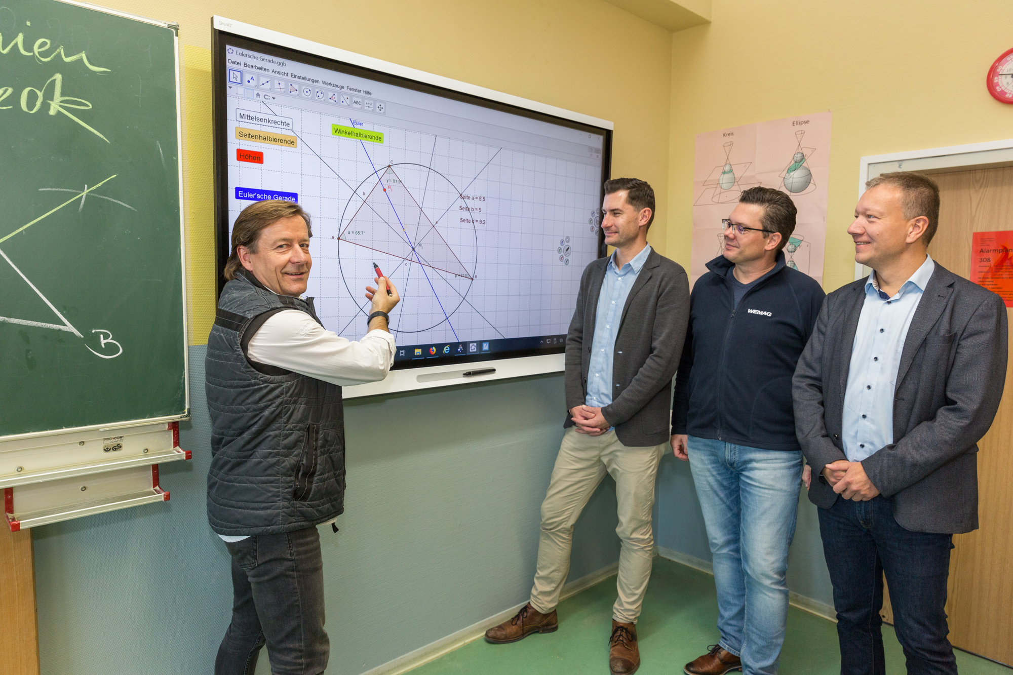 Kerstin Weiss, Landrätin des Landkreises Nordwestmecklenburg, Martin Retzlaff, kaufmännischer Programmleiter des Breitbandausbaus in der WEMAG-Unternehmensgruppe, Dr. Roland Finke, Leiter der Stabsstelle Wirtschaftsförderung, Regionalentwicklung und Planen, Michael Hillmann, Vertriebsleiter der WEMAG, Peter Schimanski, technischer Projektleiter des Breitbandausbaus in der WEMACOM (v.l.n.r.) beim Pressegespräch in Wismar. Foto: Landkreis Nordwestmecklenburg/ Eik Schäfer