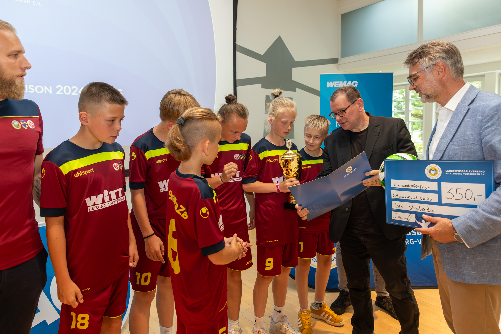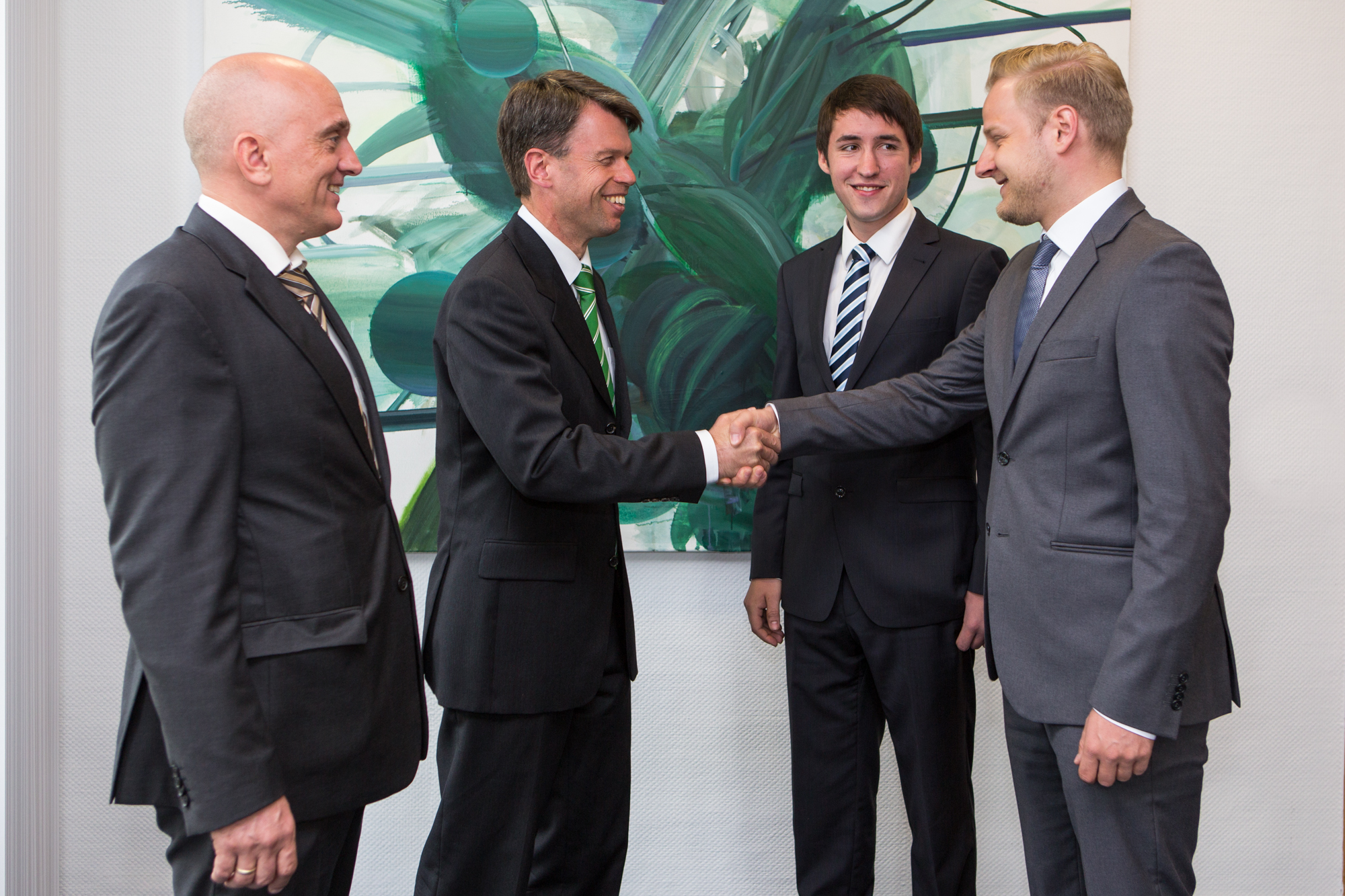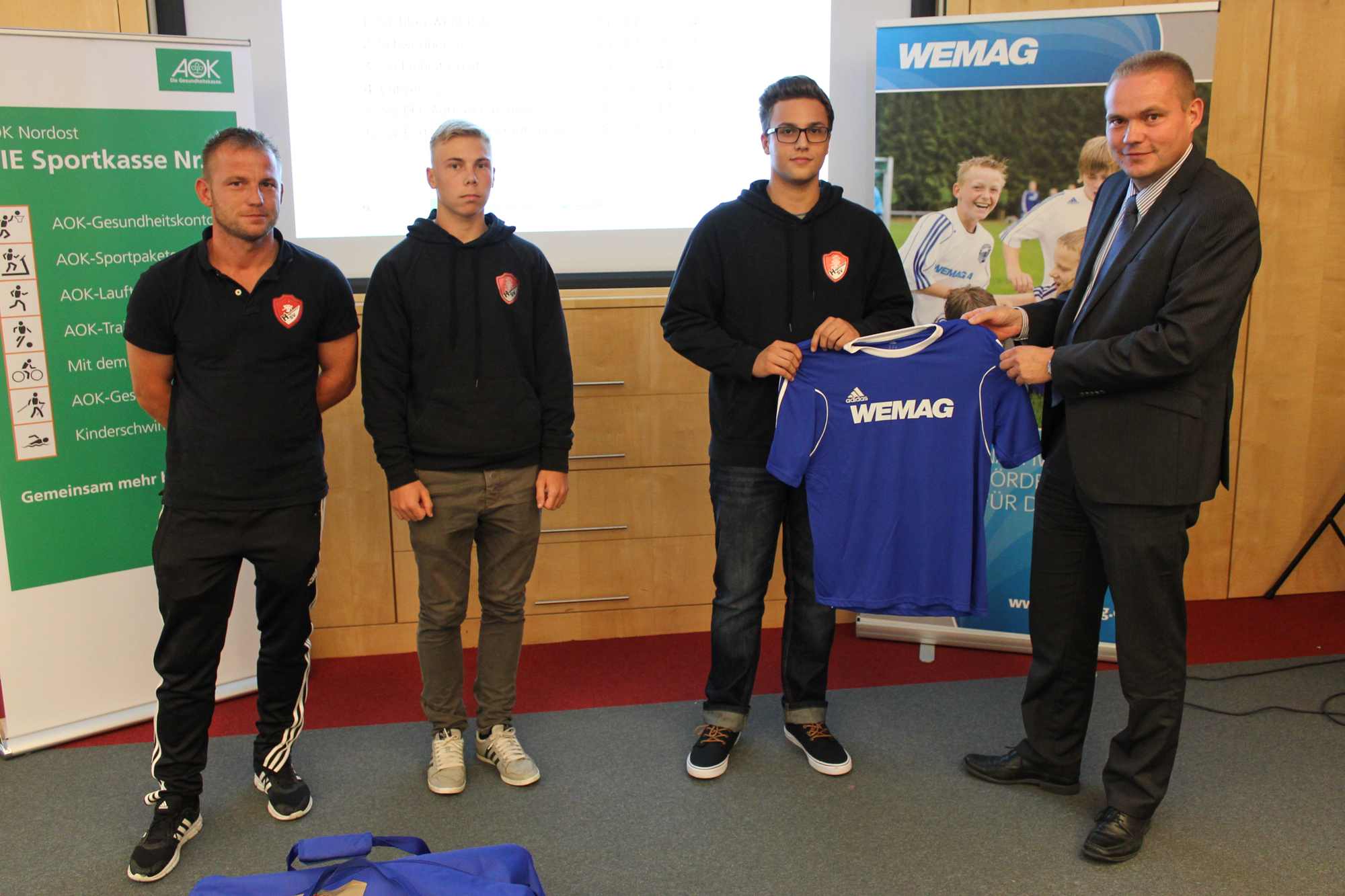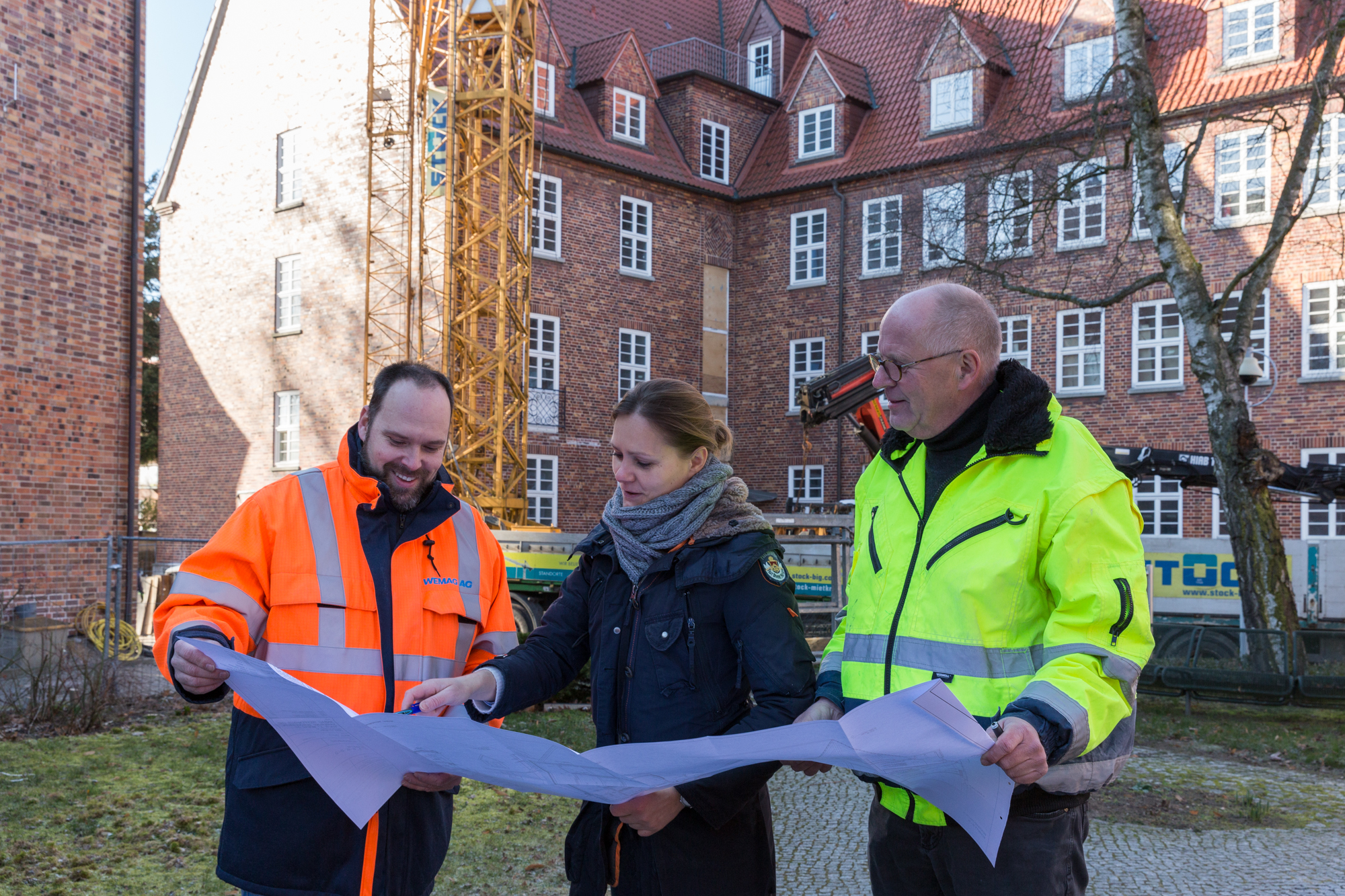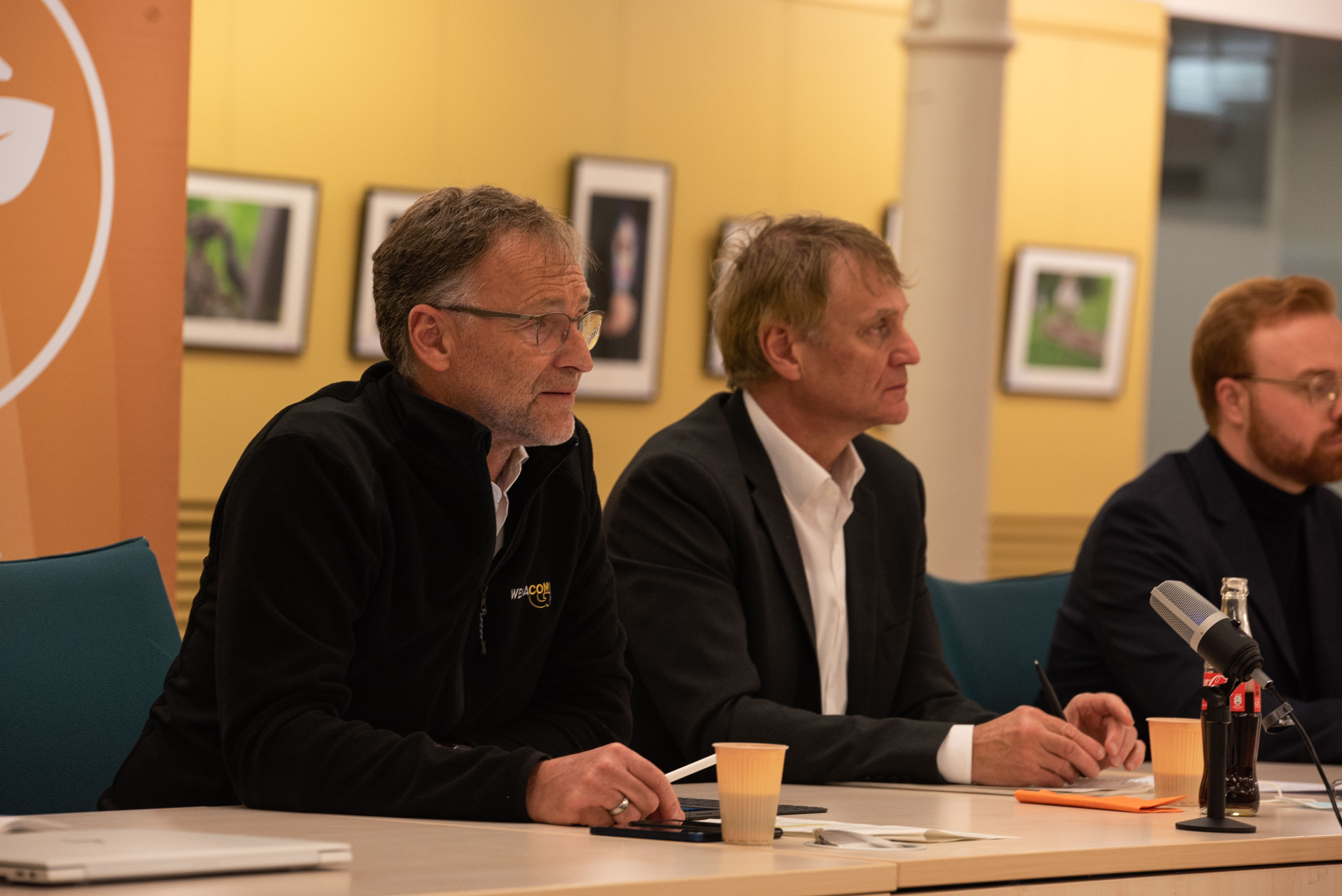 Kerstin Weiss, Landrätin des Landkreises Nordwestmecklenburg, Martin Retzlaff, kaufmännischer Programmleiter des Breitbandausbaus in der WEMAG-Unternehmensgruppe, Dr. Roland Finke, Leiter der Stabsstelle Wirtschaftsförderung, Regionalentwicklung und Planen, Michael Hillmann, Vertriebsleiter der WEMAG, Peter Schimanski, technischer Projektleiter des Breitbandausbaus in der WEMACOM (v.l.n.r.) beim Pressegespräch in Wismar. Foto: Landkreis Nordwestmecklenburg/ Eik Schäfer