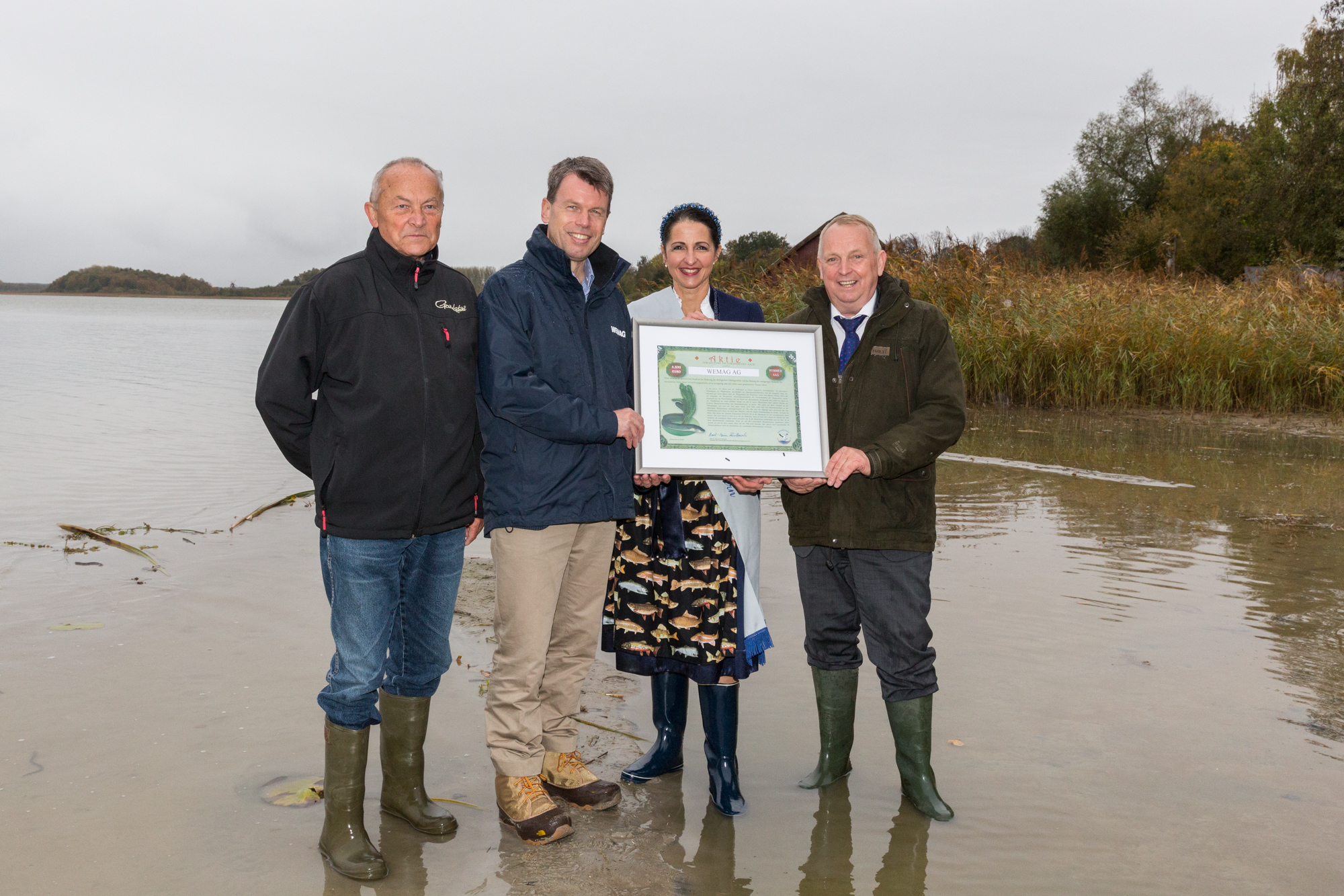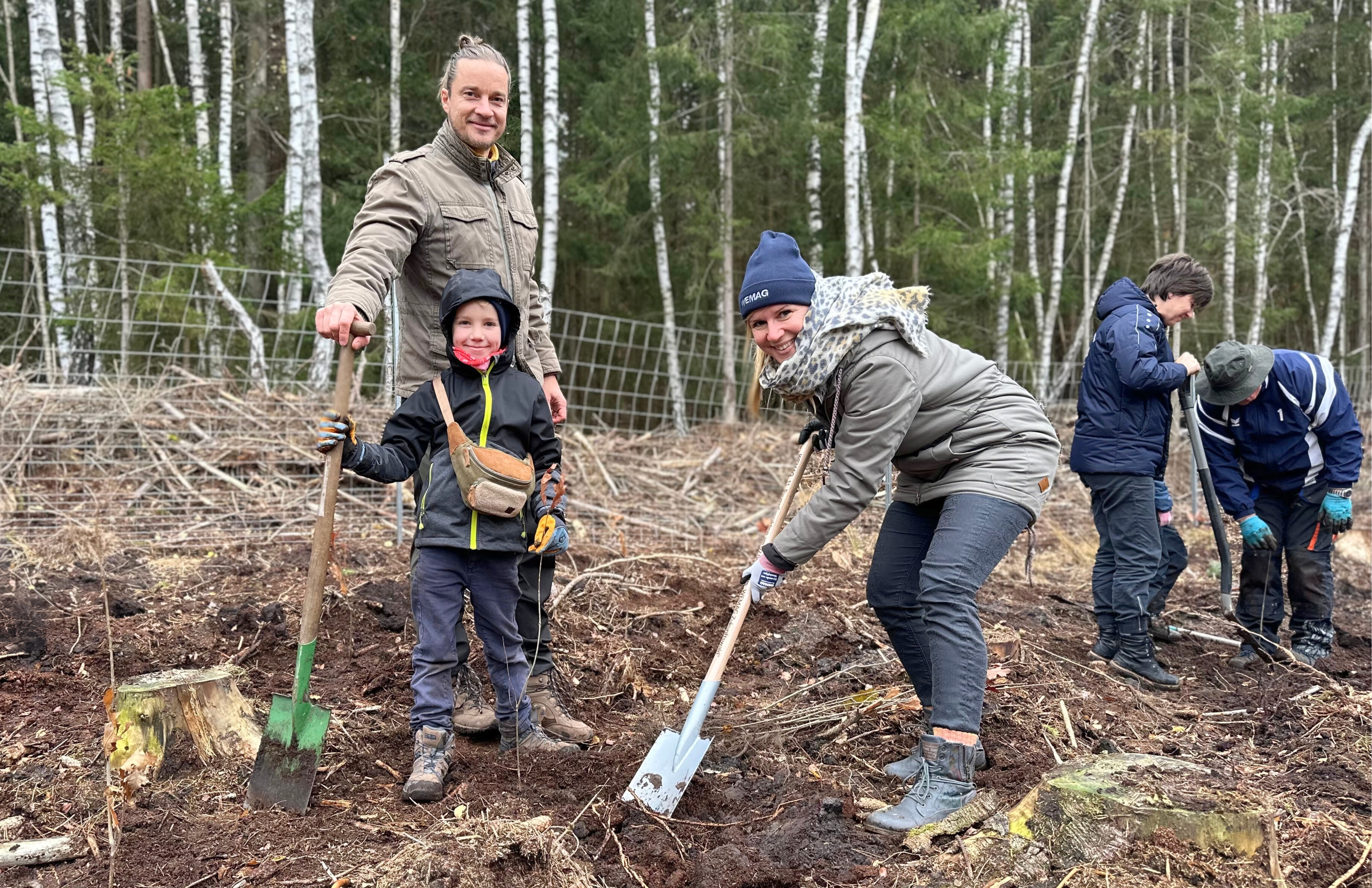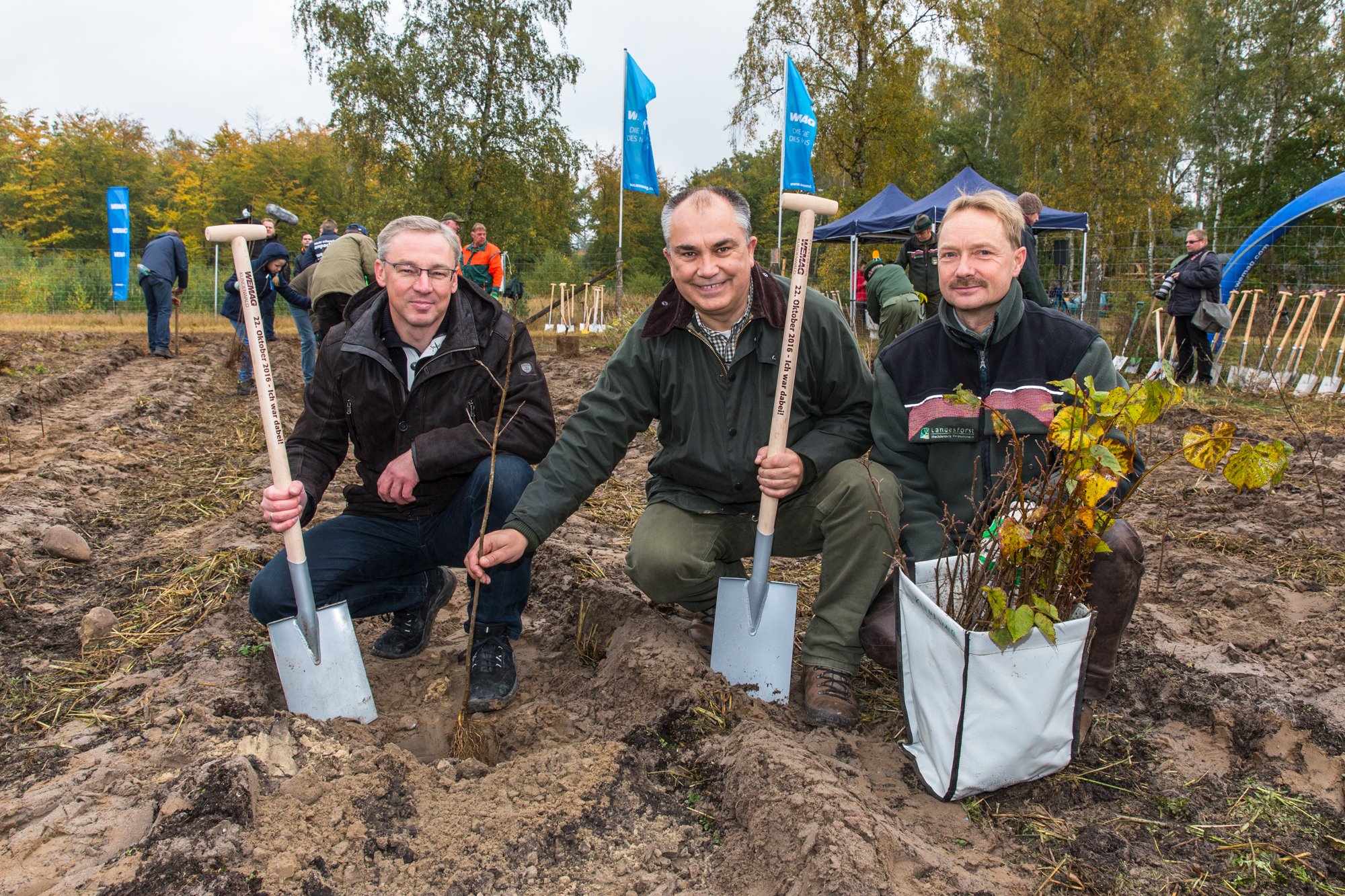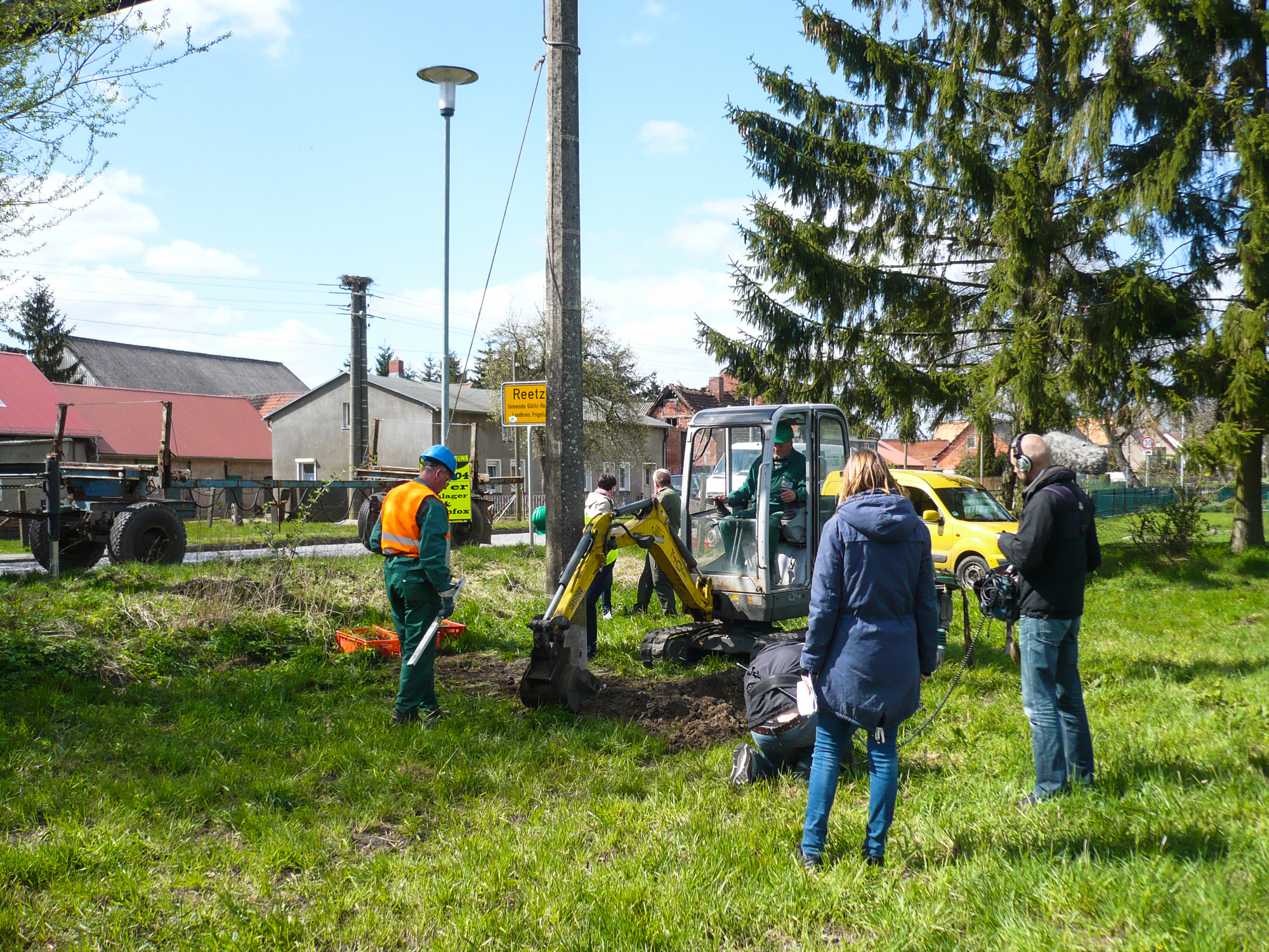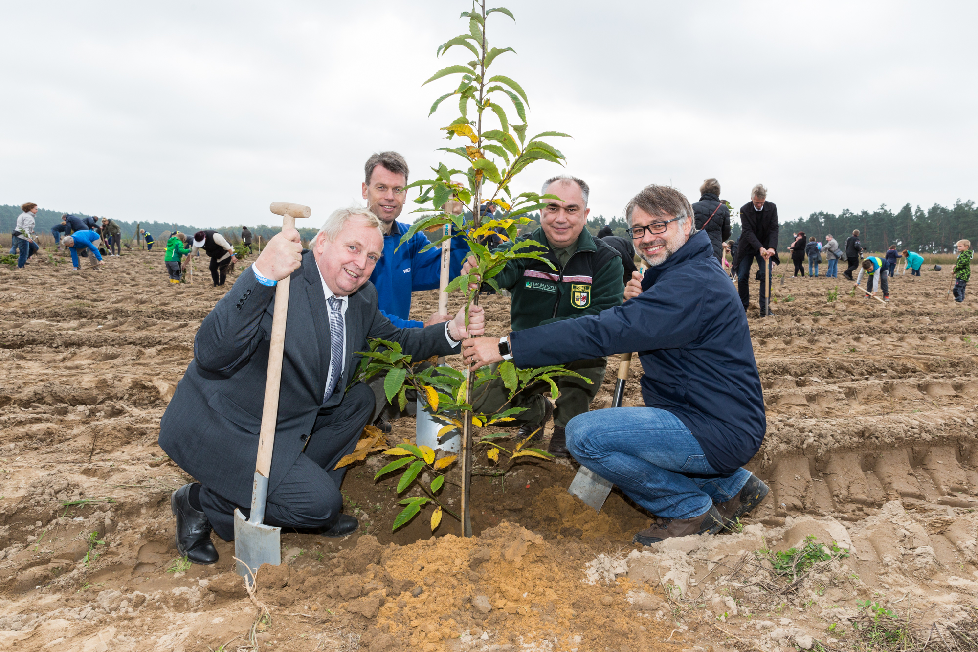 Martin Retzlaff, Geschäftsführer der WEMACOM Breitband GmbH, MdB Frank Junge, Christian Pegel, Minister für Energie, Infrastruktur und Digitalisierung, WEMAG-Vorstand Thomas Murche und Wolfgang Schmülling, 1. Stellvertreter des Landrates des Landkreises Ludwigslust-Parchim (v.l.), haben in Neuburg, Gemeinde Siggelkow, den symbolischen Spatenstich für den Breitbandausbau durchgeführt / Foto: WEMAG/Stephan Rudolph-Kramer