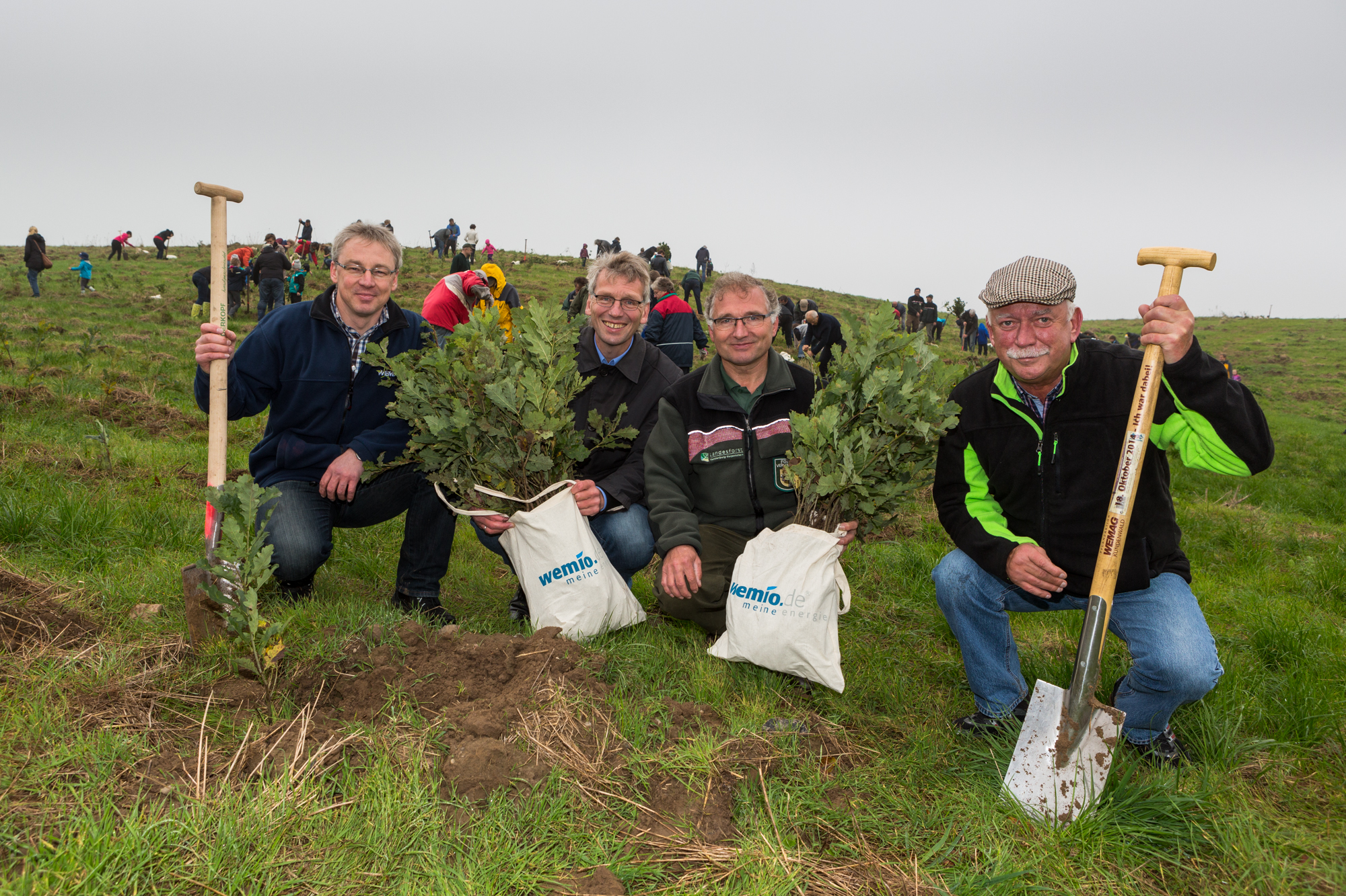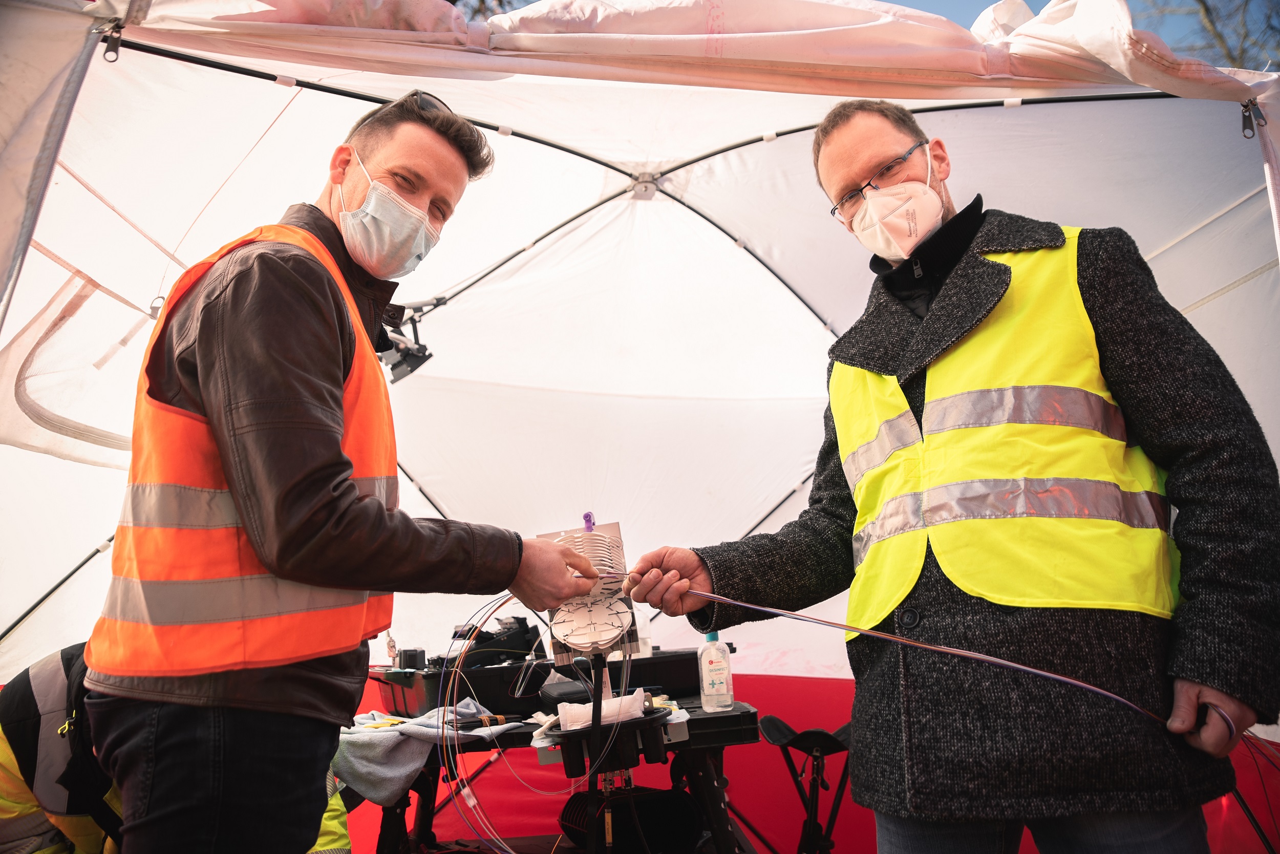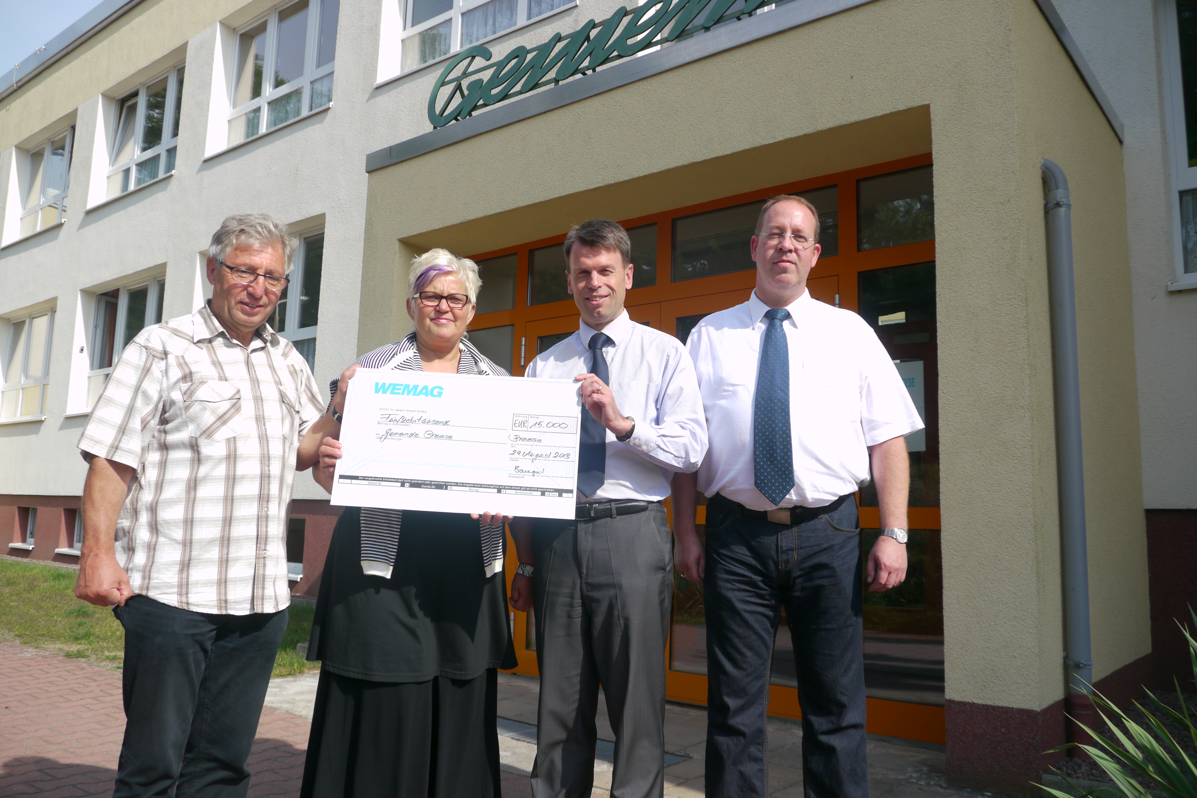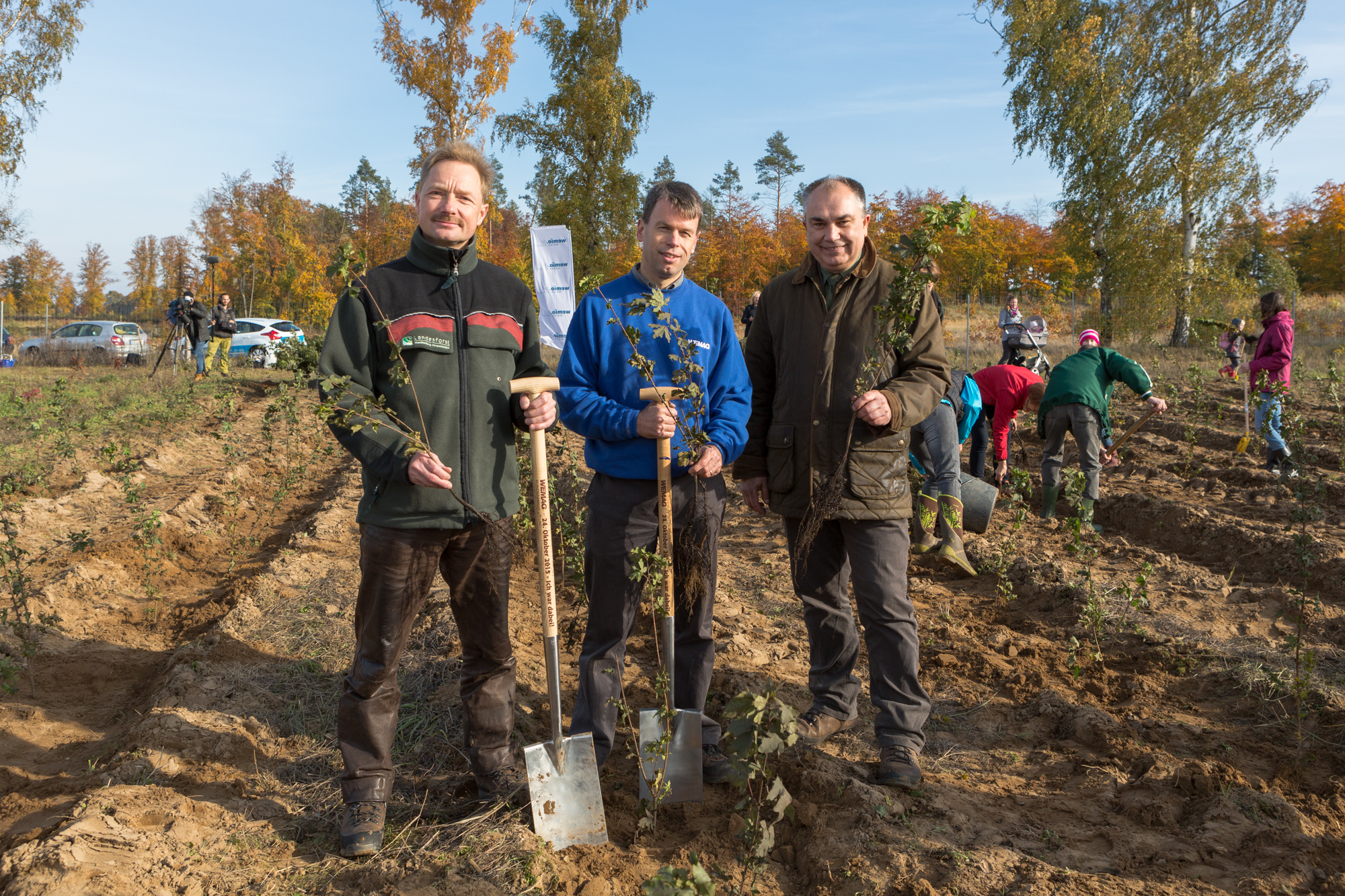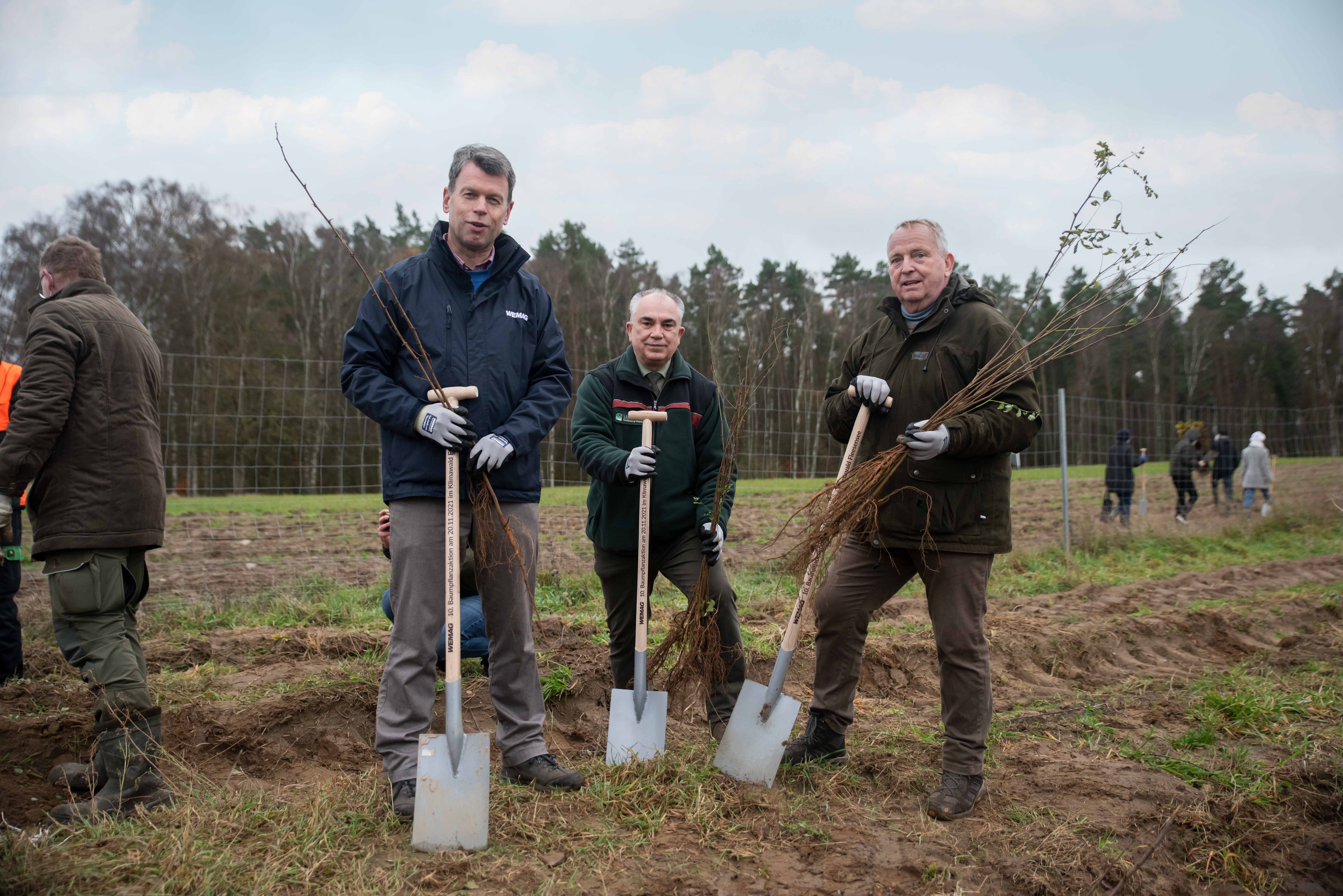Martin Retzlaff, Geschäftsführer der WEMACOM Breitband GmbH, MdB Frank Junge, Christian Pegel, Minister für Energie, Infrastruktur und Digitalisierung, WEMAG-Vorstand Thomas Murche und Wolfgang Schmülling, 1. Stellvertreter des Landrates des Landkreises Ludwigslust-Parchim (v.l.), haben in Neuburg, Gemeinde Siggelkow, den symbolischen Spatenstich für den Breitbandausbau durchgeführt / Foto: WEMAG/Stephan Rudolph-Kramer